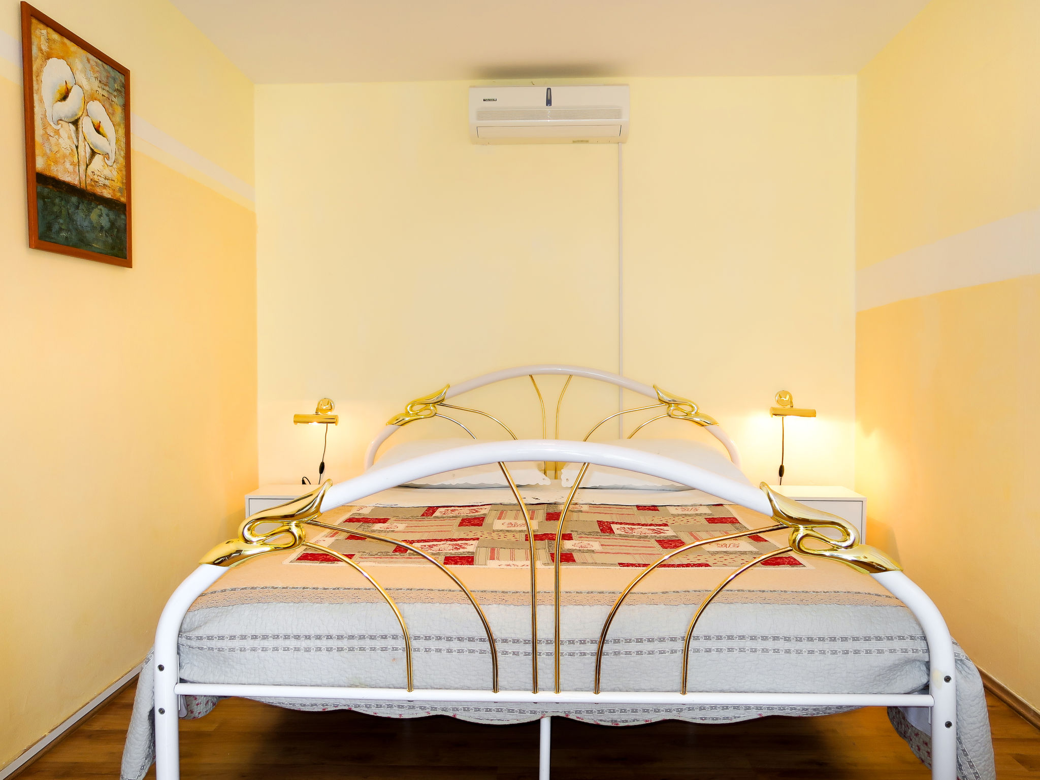 5-Zimmer-Doppelhaushälfte 80 m2 auf 2 Stockwerken. 1 Zimmer mit 1 franz. Bett (160 cm, Länge 200 cm). Esszimmer mit Sat-TV. Offene Küche (1 Kochplatte, Backofen, Geschirrspüler, 3 Flammen, Toaster, Wasserkocher, Mikrowelle, Tiefkühler, elektrische Kaffeemaschine). 2 Duschen/WC. Obergeschoss: 1 Zimmer mit 1 franz. Bett (180 cm, Länge 200 cm), Sat-TV und Klimaanlage. Ausgang zur Terrasse. 1 Zimmer mit 1 franz. Bett (160 cm, Länge 200 cm), Sat-TV und Klimaanlage. Ausgang zur Terrasse. 1 Zimmer mit 1 franz. Bett (140 cm, Länge 200 cm), Sat-TV und Klimaanlage. Ausgang zur Terrasse. Klimaanlage (extra). Terrasse 30 m2, Terrasse 15 m2. Terrassenmöbel, Gartengrill (mobil), Liegestühle. Zur Verfügung: Waschmaschine. Internet (Wireless LAN, gratis). Parkplatz (2 Autos) beim Haus. Bitte beachten: Nichtraucher-Unterkunft. Maximal 3 Haustiere/Hunde erlaubt.