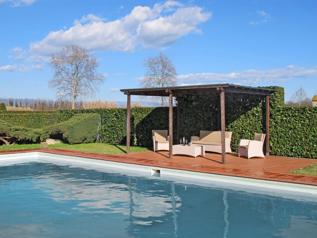 Landsitz "Podere Elga". 17 km vom Zentrum von Lucca, 1.5 km vom Zentrum von Castelvecchio di Compito, 28 km vom Zentrum von Pisa, 30 km vom Meer, im Grünen. Zur Mitbenutzung: Grundstück 2'800 m2 (eingezäunt), Garten mit Pflanzen, Schwimmbad (14 x 8 m, 110 - 150 cm tief, saisonale Verfügbarkeit: 15.Mai.-05.Okt.). Aussendusche. 400 m lange Zufahrt (Naturweg). Parkplatz auf dem Grundstück. Einkaufsgeschäft 800 m, Supermarkt 6.8 km, Sandstrand 30 km. Bitte beachten: In dieser Anlage zusätzlich mietbar: 1 Haus.