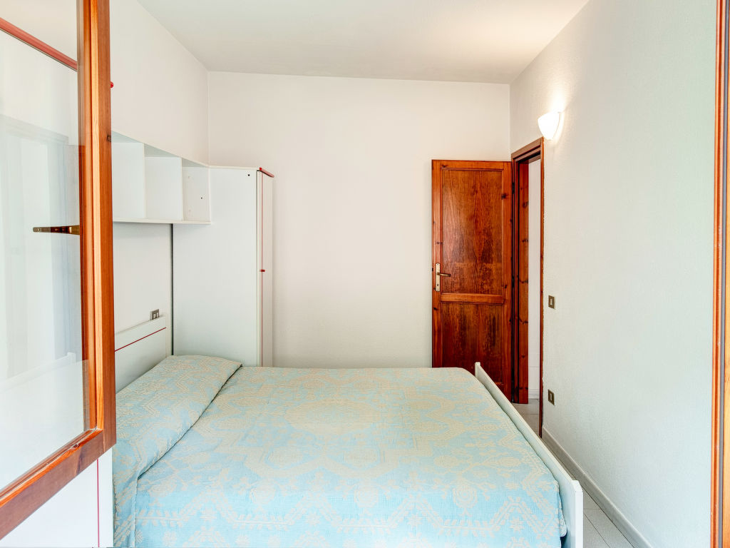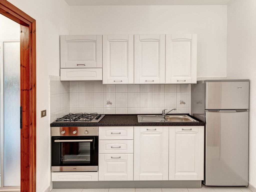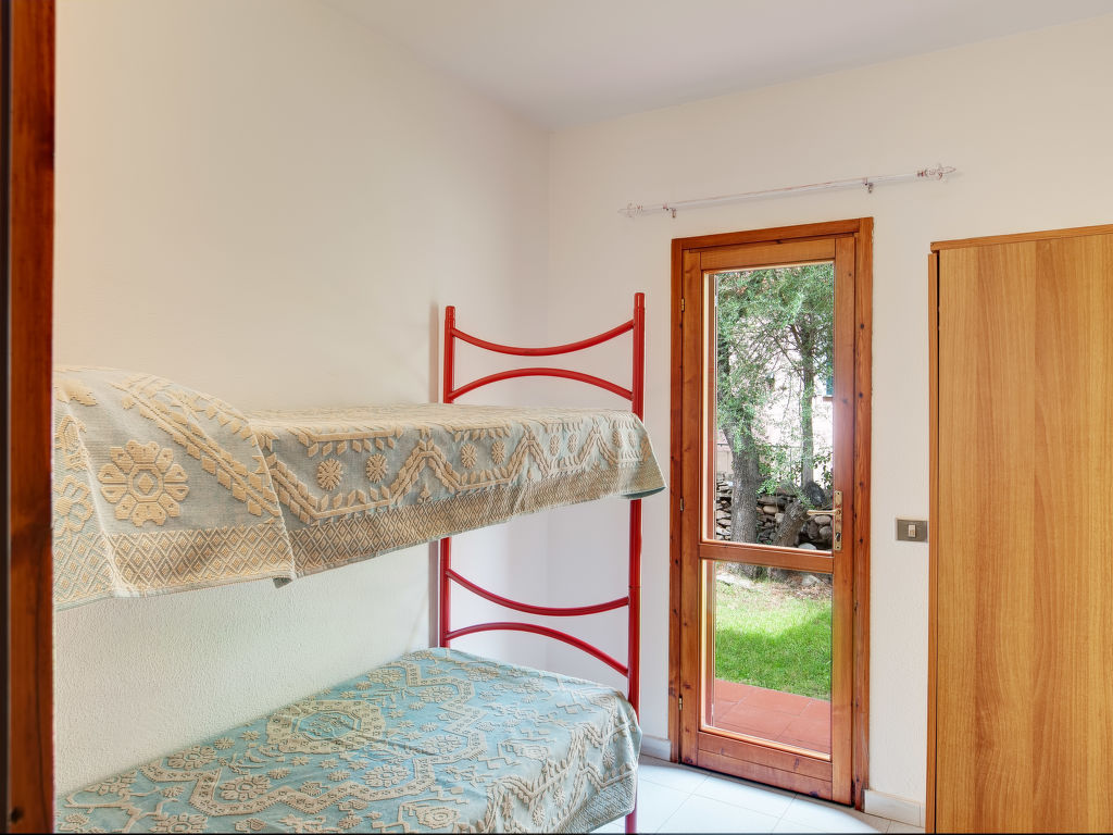 "Gallura (TEO261)", 3-Zimmer-Wohnung 38 m2. Einfach eingerichtet: Wohn-/Schlafzimmer mit 1 Diwanbett, Esstisch, TV, E-Heizung und Klimaanlage. 1 Zimmer mit 1 Doppelbett. 1 Zimmer mit 1 x 2 Etagenbetten. Kochnische (Backofen, 4 Flammen, Mikrowelle). Dusche/WC. Heizung nicht in allen Räumen. Balkon oder Terrasse. Balkonmöbel. Zur Verfügung: Waschmaschine, Bügeleisen, Kinderhochstuhl, Babybett (extra). Maximal 1 kleines Haustier/Hund erlaubt.