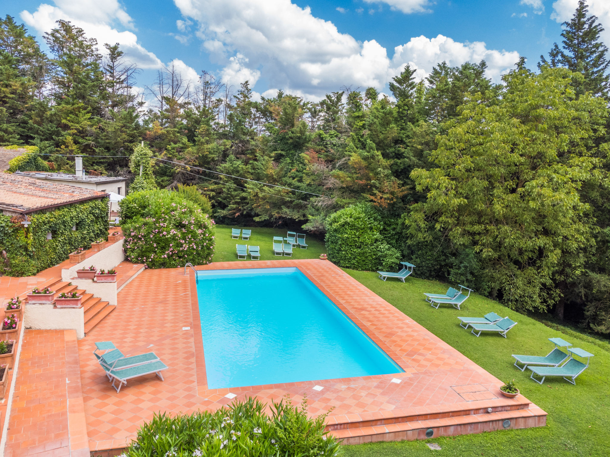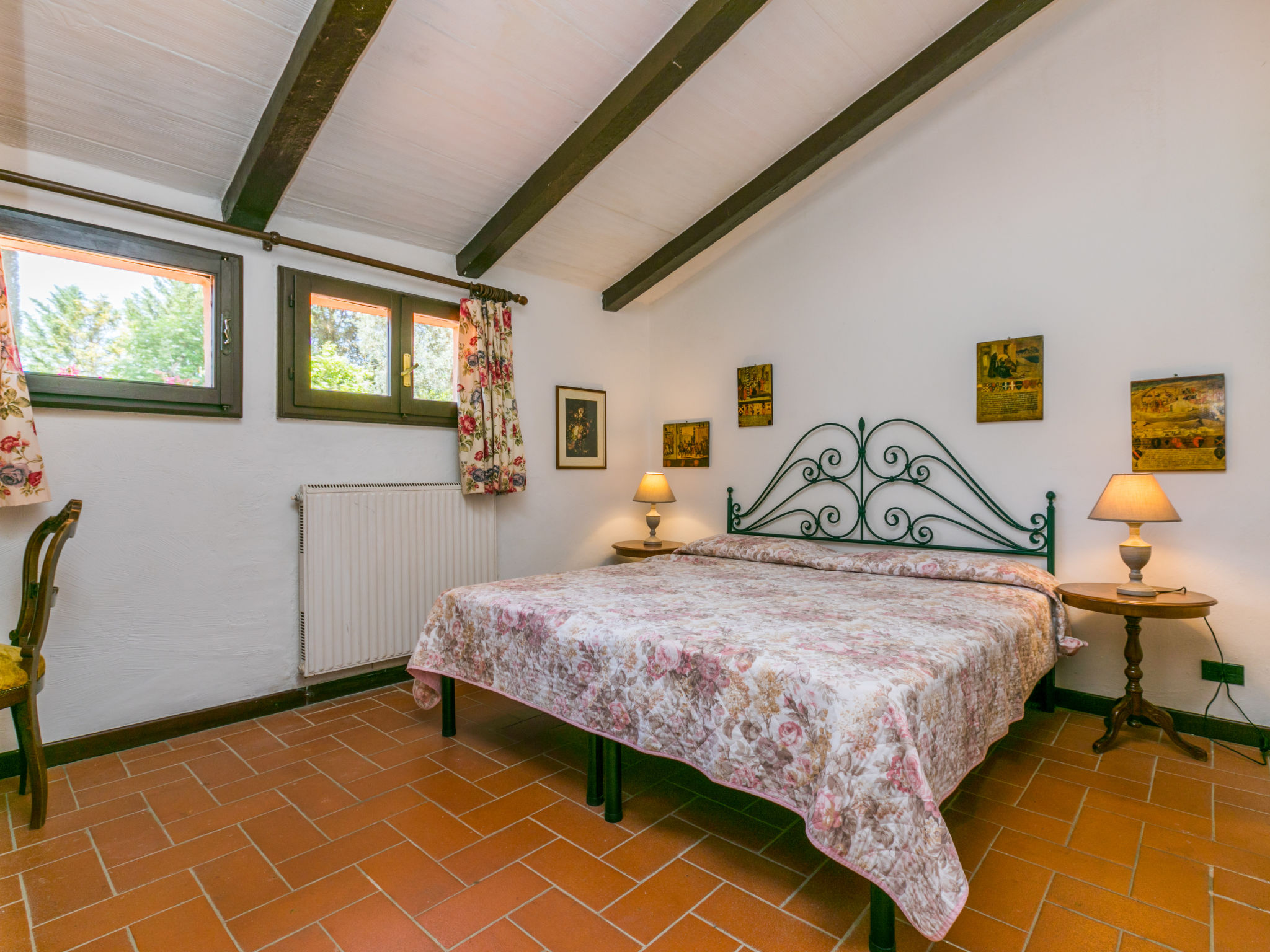 Agriturismo "Bardeggiano", auf 2 Stockwerken, umgeben von Bäumen und Feldern. 5 Häuser in der Residenz. 9 Wohnungen in der Residenz. 4 km vom Zentrum von Colle di Val d'Elsa, 8.5 km vom Zentrum von Monteriggioni, 26 km vom Zentrum von Siena, zentrale, alleinstehende Lage, 70 km vom Meer, im Grünen. Zur Mitbenutzung: gepflegter Garten 12 ha (eingezäunt) mit Pflanzen und Bäumen, Schwimmbad (15 x 6 m, 150 cm tief, saisonale Verfügbarkeit: 02.Mai.-03.Okt.). Aussendusche, Terrasse, Grill, Poolpflege durch den Besitzer/Gärtner. In der Anlage: Waschmaschine (zur Mitbenutzung, extra). Wäschewechsel (zusätzlich extra). Handtuchwechsel (zusätzlich extra). Parkplatz (überdacht) auf dem Grundstück. Lebensmittelgeschäft 1 km, Supermarkt 4 km, Restaurant 4 km, Bäckerei 1 km, Bahnstation "Colle di Val d'Elsa" 4 km, Sandstrand "Follonica" 88 km. Nahe gelegene Sehenswürdigkeiten: San Gimignano 20 km, Firenze 52 km, Volterra 55 km. Bitte beachten: Babyausstattung (inkl.). Die Residenz wird durch elektrische Tore geschlossen. Der Besitzer wohnt auf dem gleichen Grundstück. Alle Häuser/Wohnungen sind individuell eingerichtet.
