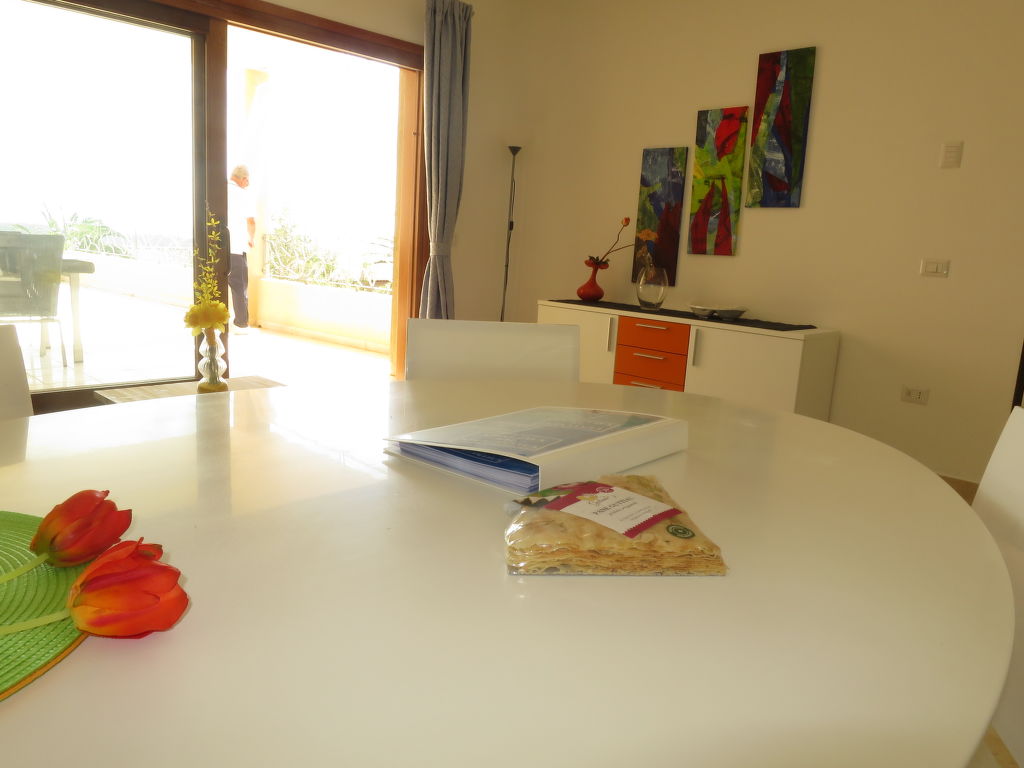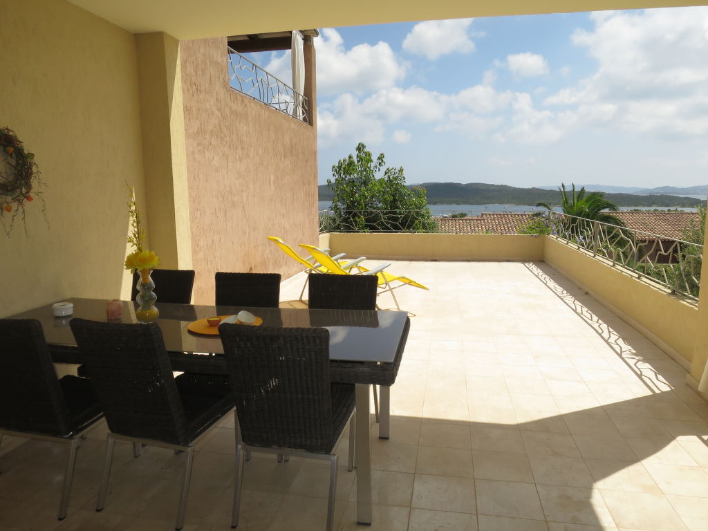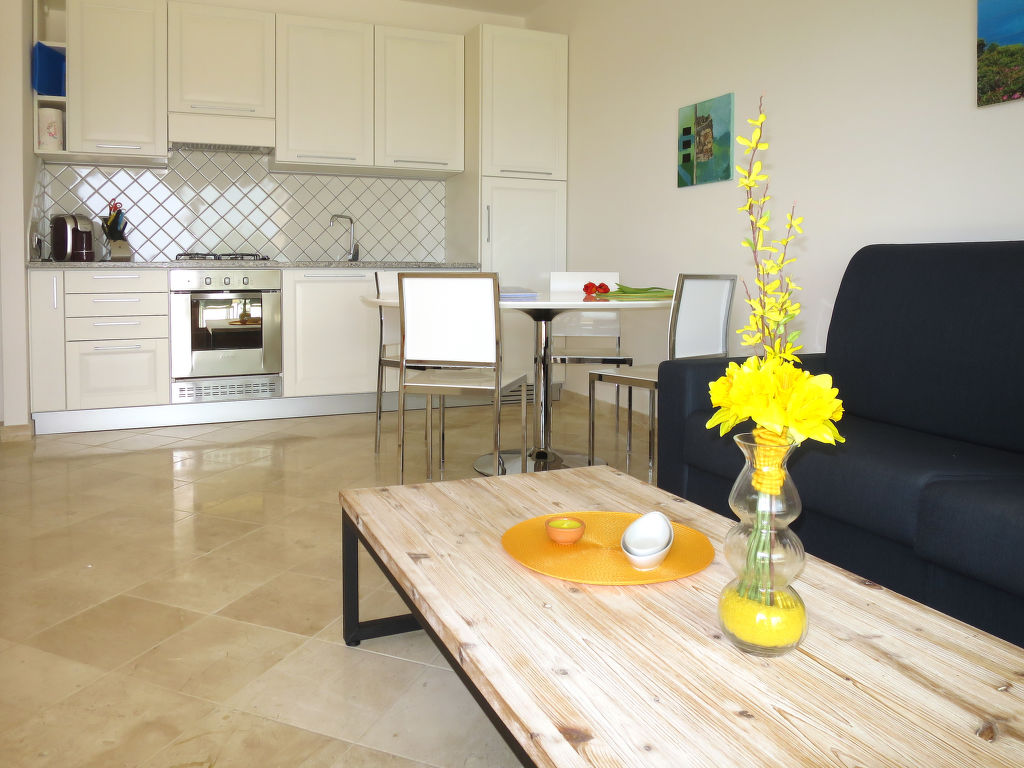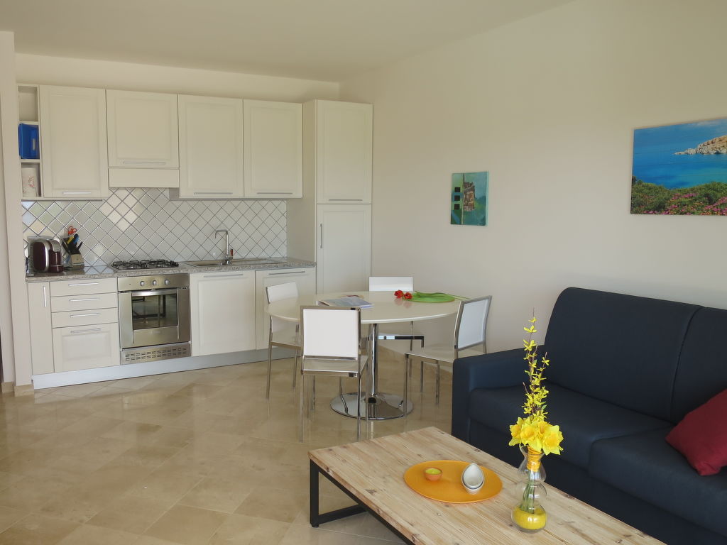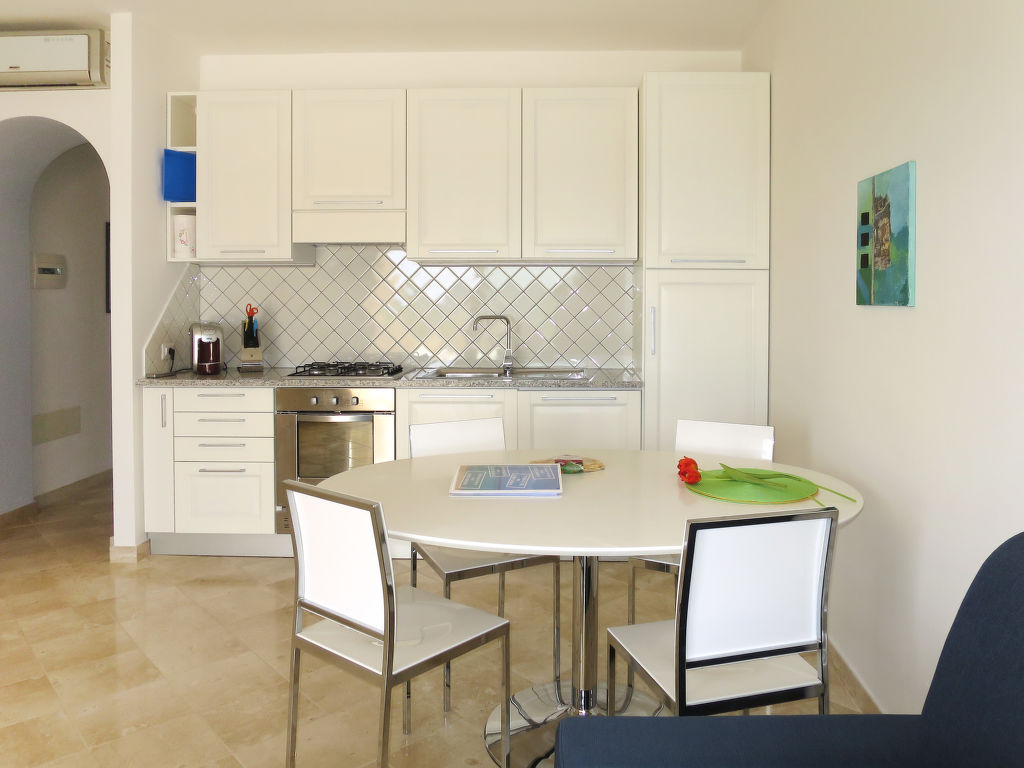 "Il Fjordo bilo terrazzo (PPZ162)", 2-Zimmer-Wohnung 45 m2, im erhöhten Erdgeschoss. Modern eingerichtet: Wohn-/Schlafzimmer mit 1 Doppeldiwanbett, Esstisch und Sat-TV. Ausgang zur Terrasse. 1 Zimmer mit 1 franz. Bett (160 cm). Offene Küche (Backofen, Geschirrspüler, 4 Flammen, Tiefkühler, elektrische Kaffeemaschine). Dusche/WC. E-Heizung, Klimaanlage. Grosse Terrasse 40 m2 teilweise überdacht. Terrassenmöbel, Liegestühle (2). Sicht auf das Meer und das Schwimmbad. Zur Verfügung: Waschmaschine, Kinderhochstuhl, Babybett. Internet (Wireless LAN, gratis). Maximal 1 Haustier/Hund erlaubt.