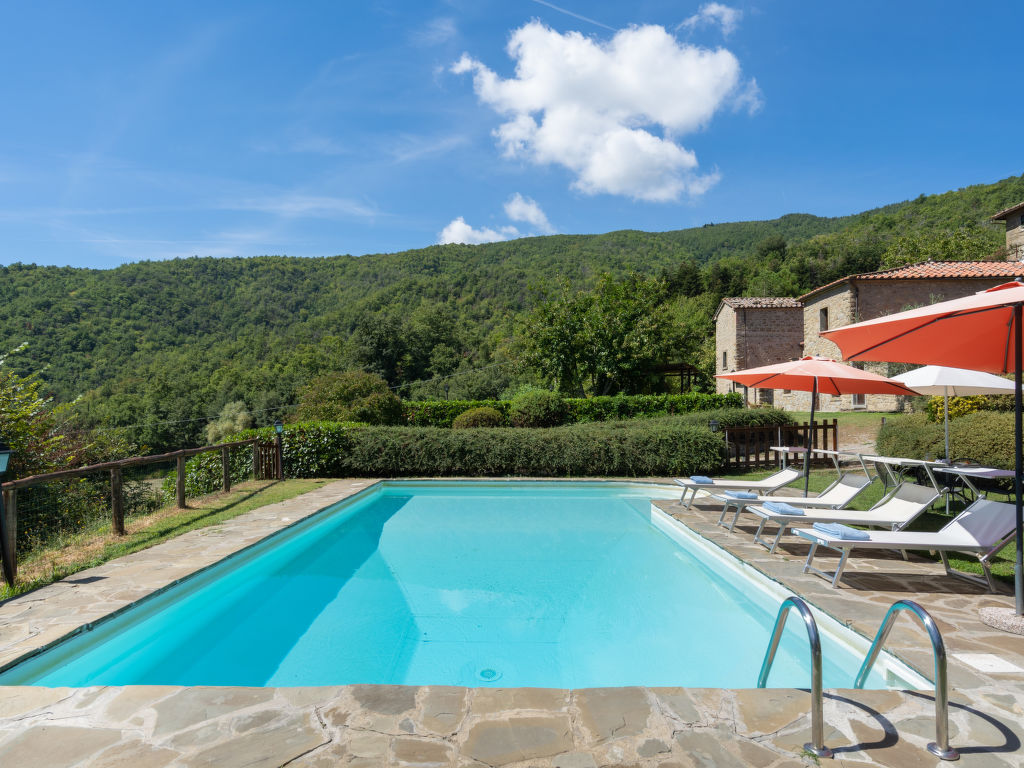 Landwirtschaftlicher Betrieb "La Vittoria". Mietobjekt bestehend aus Haupt- und Nebengebäude, 17 km vom Zentrum von Cortona, 35 km vom Zentrum von Città di Castello, 40 km vom Zentrum von Arezzo. Zur Mitbenutzung: Grundstück 2'000 m2 (eingezäunt), gepflegter Garten (eingezäunt) Bäumen, Wiese, Schwimmbad eingezäunt (10 x 5 m, saisonale Verfügbarkeit: 01.Mai.-25.Sep.). Aussendusche, Terrasse, Gartenmöbel, Grill, Poolpflege durch den Besitzer/Gärtner. Zufahrt (2 km Naturweg). Parkplatz (für 3 Autos) beim Haus in 20 m. Einkaufsgeschäft 10 km, Supermarkt 17 km, Badesee "Trasimeno" 40 km. Auf dem Grundstück Tierhaltung. Bitte beachten: Eigentümer hat einen Hund. Das Leitungswasser hat keine Trinkwasserqualität.