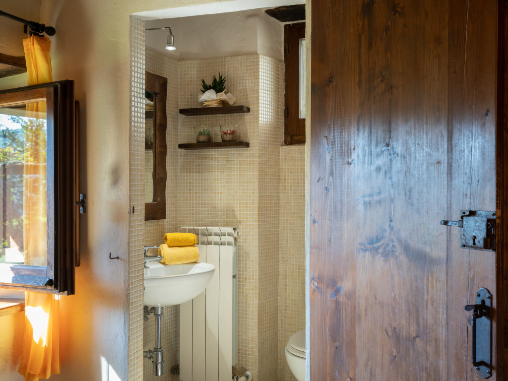 4-Zimmer-Haus 100 m2 auf 2 Stockwerken. Rustikal und gemütlich eingerichtet: Wohn-/Esszimmer mit offenem Kamin, Esstisch und Sat-TV. Ausgang zum Garten. 1 Zimmer mit 1 franz. Bett (160 cm), Dusche/WC. Kleine, offene Küche (Backofen, Geschirrspüler, 5 Flammen, Toaster, Tiefkühler, elektrische Kaffeemaschine). Ausgang zum Garten. Obergeschoss: 1 Zimmer mit 1 franz. Bett (160 cm). 1 Zimmer mit 2 Betten (80 cm). Dusche/WC. G-Heizung. Abstellkammer. Zur Verfügung: Waschmaschine, Babybett. Internet (Wireless LAN, gratis). Bitte beachten: Nichtraucher-Haus. Maximal 2 Haustiere/Hunde erlaubt.