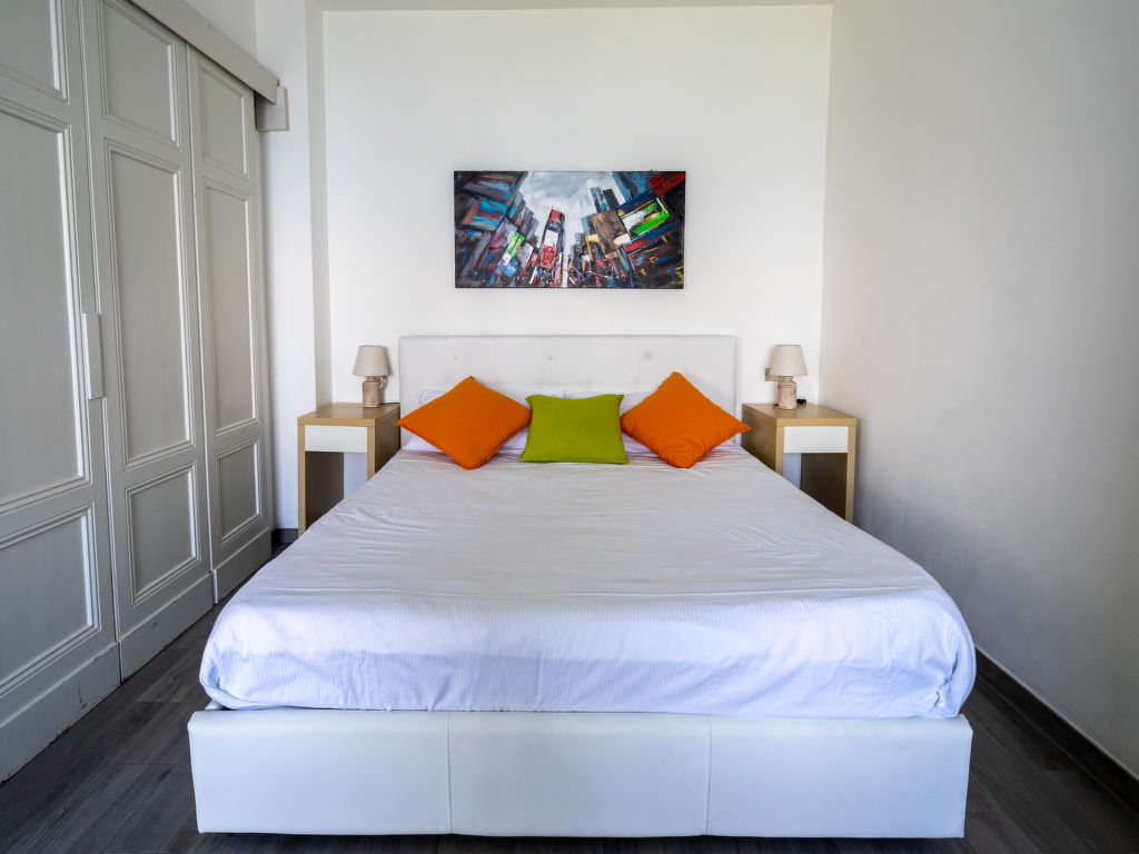 Dieses Angebot setzt sich zusammen aus den Wohnungen SEA 115 und SEA 116. 3-Zimmer-Wohnung, ca. 90 m², 1. Etage, 2 Ebenen. Separater Zugang über ca. 20 Stufen (Hanglage). Untere Ebene: Wohn-/Schlafraum mit Doppelbettcouch (als Zusatzbett, siehe Nebenkosten), Kamin (Einsatz), Essplatz für 6 Personen und Balkonausgang. Zum Wohnraum offene Küche (4 Flammen, Backofen, Geschirrspüler, Kühl-/Gefrierkombination, Toaster). Sep.WC. Vom Wohnraum über 4 Stufen zur oberen Ebene: Schlafzimmer mit franz. Bett (1,80 m breit). Schlafzimmer mit 2 Einzelbetten und Ausziehbett (als Zusatzbett, siehe Nebenkosten). Bad/WC. 2-Zimmer-Wohnung, ca. 45 m², Erdgeschoss. Separater Zugang über ca. 35 Stufen (Hanglage). Wohnraum mit Sitzcouch, Essplatz für 4 Personen, Küchenzeile (4 Platten, Backofen, Kühl-/Gefrierkombination, Wasserkocher) und Ausgang ins Freie. Schlafzimmer mit franz. Bett (1,60 m breit), 2 Einzelbetten und offenem Fenster zum Wohnraum. Dusche/WC. Flexibilität bei der Bettenaufteilung: Es stehen mehr Schlafmöglichkeiten zur Verfügung als die maximal zugelassene Personenzahl, diese darf dennoch nicht überschritten werden. CIR: 10306400211, 10306400212