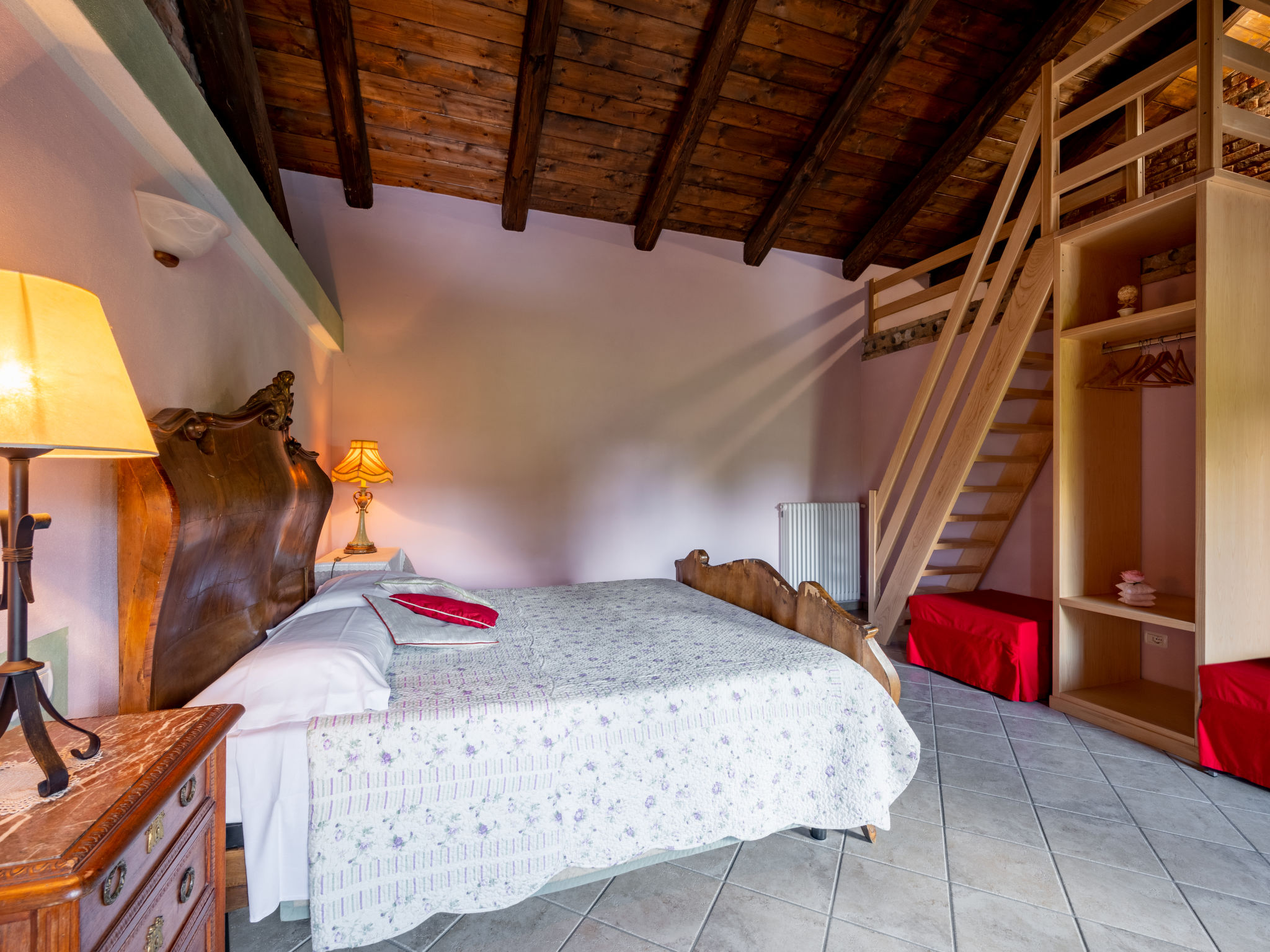 "Antica Cascina (CTZ200)", 2-Zimmer-Doppelhaushälfte 90 m2 im 1. Stock. Objekt geeignet für 2 Erwachsene + 2 Kinder. Hell, geschmackvoll eingerichtet: Obergeschoss: Wohn-/Esszimmer mit Esstisch und TV. Ausgang zur Terrasse. 1 Zimmer, auf 2 Ebenen mit 1 franz. Bett (160 cm). (steile Treppe) abgeschrägte, offene Galerie, Deckenhöhe 100 - 150 cm mit 2 Schlafmöglichkeiten. Offene Küche (4 Flammen, Toaster, Wasserkocher, Tiefkühler, elektrische Kaffeemaschine). Dusche/WC. G-Heizung. Terrasse 25 m2, überdacht. Terrassenmöbel, Gartengrill. Panoramasicht. Zur Verfügung: Internet (Wireless LAN, gratis). Bitte beachten: Nichtraucher-Haus. Eigener Eingang. CIR: 00502200004