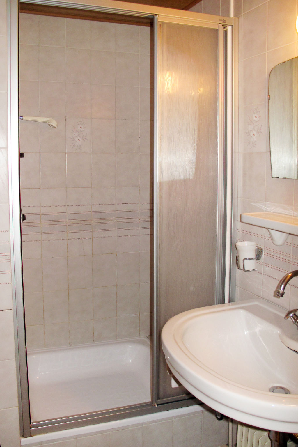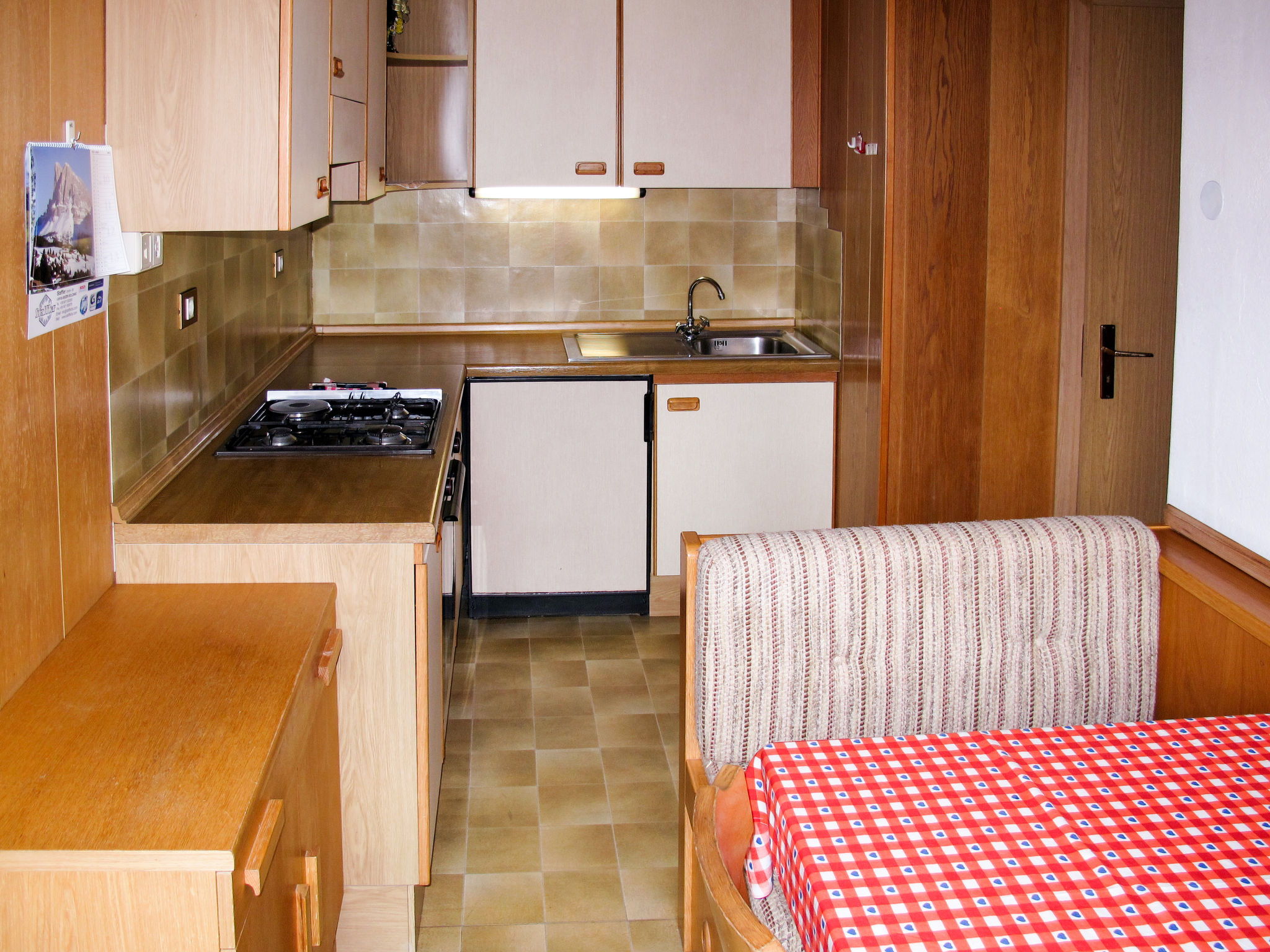 1½-Zimmer-Wohnung, 1. Etage, ca. 25 m². Küche (3 Flammen, 1 Platte, Backofen, Kühlschrank) mit Essplatz (Eckbank). Doppelzimmer. Dusche/WC.