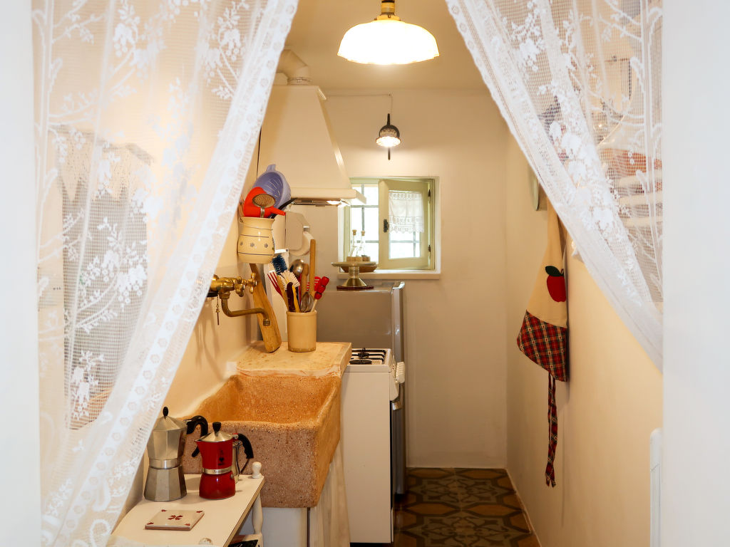 "Trullo Fior di Capperi (MFR101)", 3-Zimmer-Doppelhaushälfte 55 m2. Rustikal und antik eingerichtet: 2 Doppelzimmer. Esszimmer mit Esstisch. Ausgang zum Garten. Kleine, offene Küche (Backofen, 4 Flammen, Toaster, Wasserkocher, elektrische Kaffeemaschine). Dusche/WC. G-Heizung. Terrasse. Terrassenmöbel, Liegestühle (2). Zur Verfügung: Kinderhochstuhl, Babybett. Internet (Wireless LAN, extra). Parkplatz (2 Autos). Bitte beachten: Nichtraucher-Unterkunft. 1 kleines Haustier/Hund erlaubt.