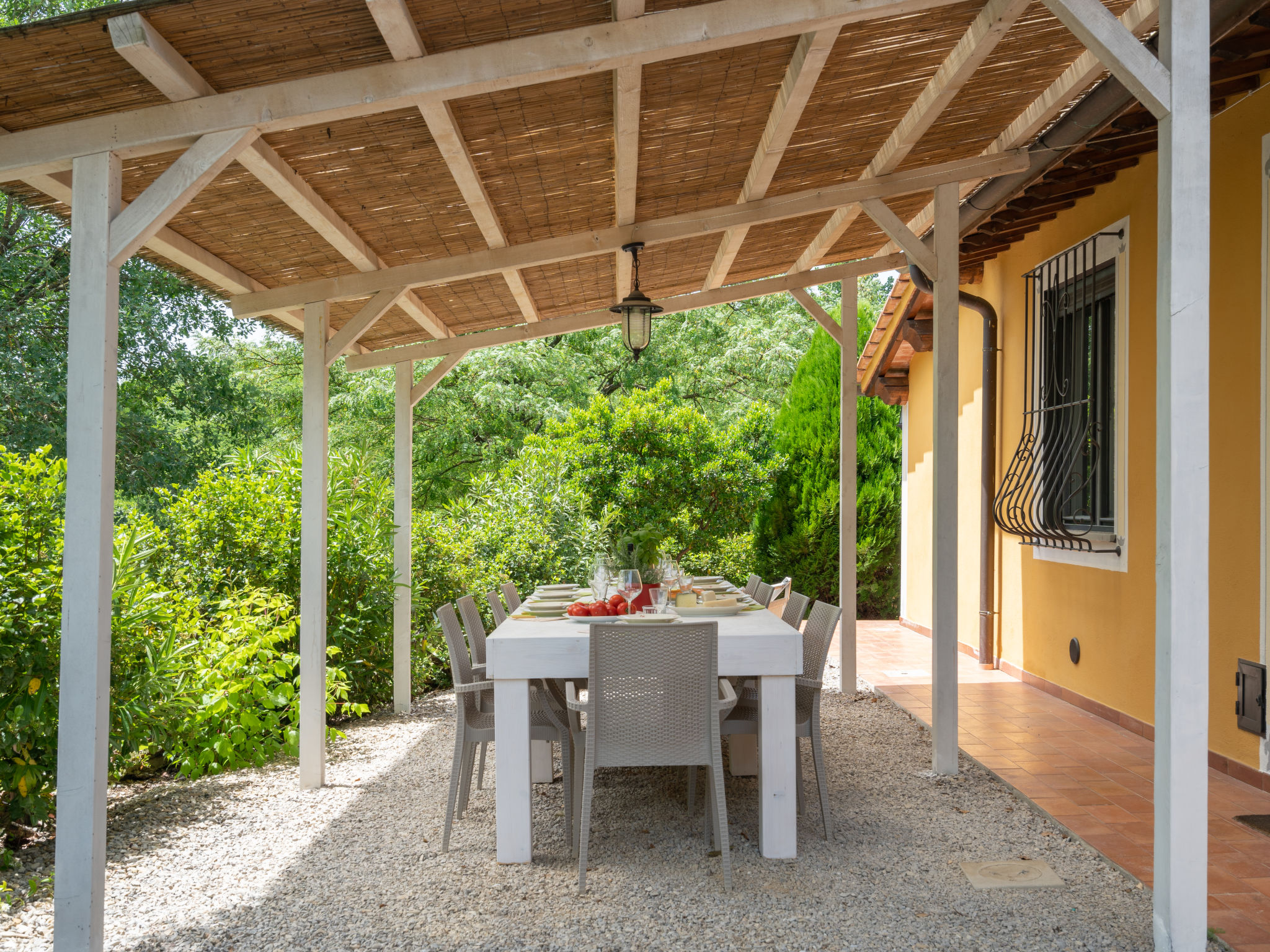 7-Zimmer-Haus 240 m2, im Erdgeschoss. Renoviert im Jahre 2019, zweckmässig und geschmackvoll eingerichtet: Wohn-/Esszimmer mit Sat-TV und Klimaanlage. 2 Doppelzimmer, jedes Zimmer mit Klimaanlage. 2 Zimmer, jedes Zimmer mit 2 Betten und Klimaanlage. Wohn-/Esszimmer mit 1 Doppeldiwanbett, Sat-TV und Klimaanlage. 1 Doppelzimmer mit Klimaanlage. Kochnische (4 Kochplatten, Backofen, Geschirrspüler, Tiefkühler). Bad/Bidet/WC, 2 Duschen/Bidet/WC. Terrassenmöbel, Gartengrill. Panoramasicht auf das Schwimmbad und den Garten. Zur Verfügung: Waschmaschine, Fliegengitter, Kinderhochstuhl, Babybett bis 3 Jahre. Internet (Wireless LAN, gratis). Geeignet für Familien.