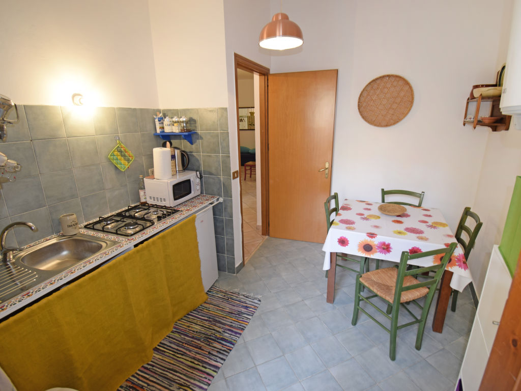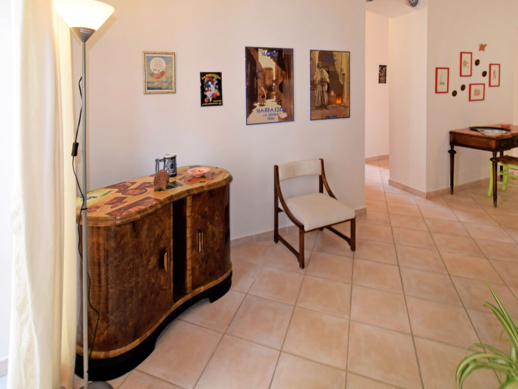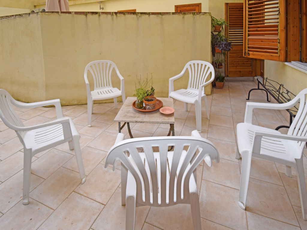 2-Zimmer-Wohnung 60 m2 im 1. Stock. Zweckmässig und komfortabel eingerichtet: Wohnzimmer mit 1 Diwanbett, 1 Ausziehbett und TV (Flachbildschirm). Ausgang zum Balkon. 1 Doppelzimmer, ohne Schrank. Kleine Küche (4 Kochplatten, Mikrowelle, Tiefkühler) mit Esstisch. Ausgang zur Terrasse. Dusche/Bidet/WC. Boiler (80 Liter). Kleiner Balkon 1 m2, grosse Terrasse 25 m2. Terrassenmöbel. Zur Verfügung: Haartrockner. Internet (Wireless LAN, gratis).