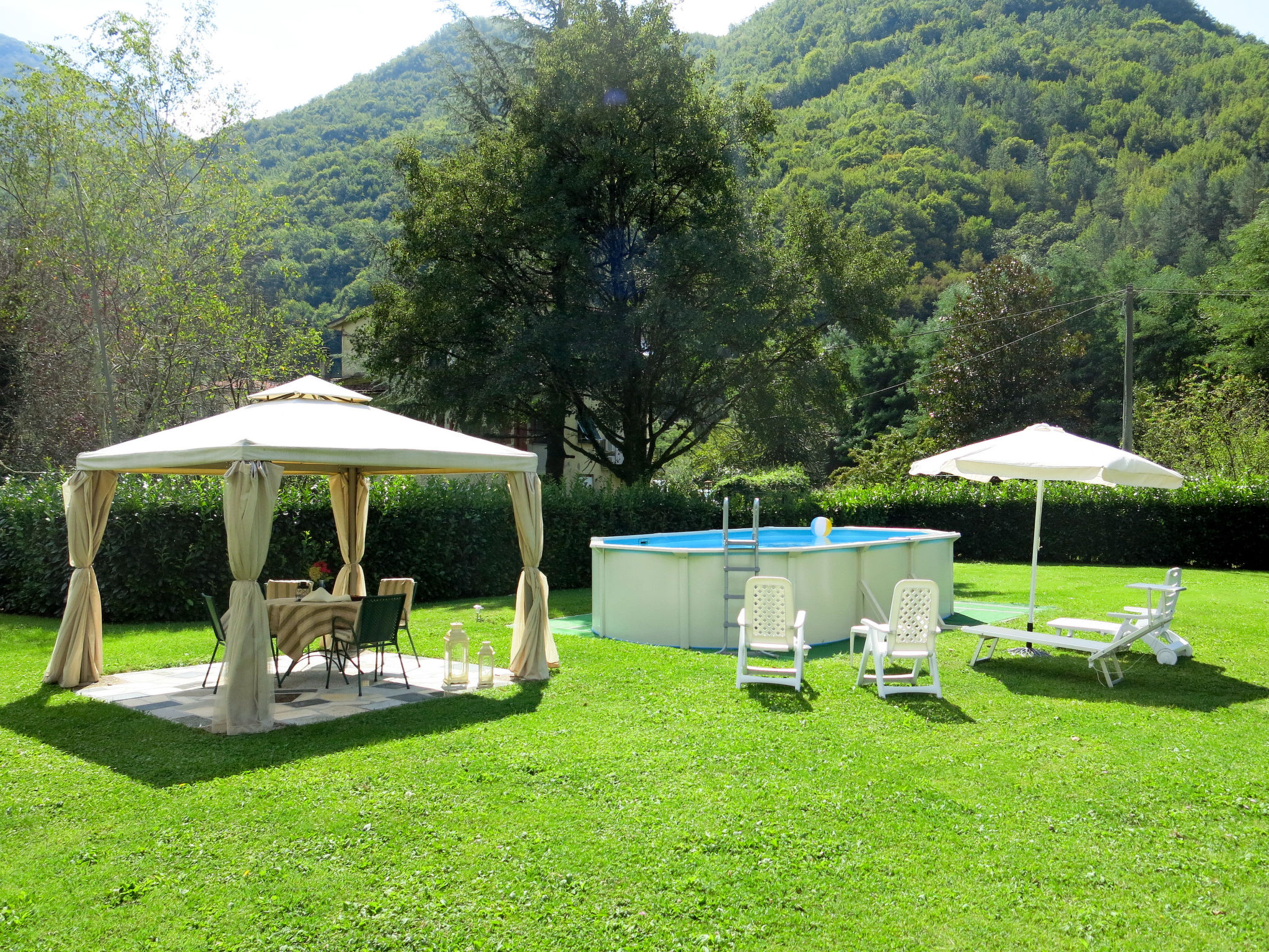 Haus NATALIE steht ländlich, auf ca. 250 m Höhe, in den Hügeln nordöstlich von Bagni di Lucca (10 km). Nächste Einkaufsmöglichkeit in Ponte Coccia, 1,5 km. Elektrisches Einfahrtstor, pro Wohnung 2 PKW-Stellplätze auf dem Grundstück. Zugang zum Haus über ca. 20 Stufen. Ca. 1 ha großes, umzäuntes Wiesengrundstück mit Sträuchern und Bäumen. Aufgestellter Pool (6 x 3,5 m, 1,20 tief, ca. 15.05. -20.09.) mit Liegewiese, möbliertem Freisitz unter Sonnenpavillon, 4 Sonnenliegen 5 Liegestühle und 2 Sonnenschirme zur gemeinsamen Nutzung der Feriengäste. Gemauerter Grill und Pizzaofen zur Mitbenutzung mit dem Besitzer, der das Erdgeschoss bewohnt. Er kümmert sich regelmäßig um die Pool- und Grundstückspflege, hält ein Pferd und einige gut erzogene Jagdhunde (Zwinger). Beide Wohnungen haben einen schmalen, überdachten Balkon mit jeweils 2 Stühlen und einem kleinen Tisch. BLU 170 mit guter, gepflegter Einrichtung im modernen Stil. Fliesen- und Parkettboden. Sat-TV (2 deutsche Programme). Internetzugang (WLAN, € 5 pro Woche). Waschmaschine. Bügeleisen/-brett. BLU 171 mit feriengerechter, älterer Einrichtung. Fliesenboden. Sat-TV. Internetzugang (WLAN, € 5 pro Woche). Jeweils Gas-Zentralheizung. Hinweis: Rauchen ist in den Wohnungen nicht gestattet.