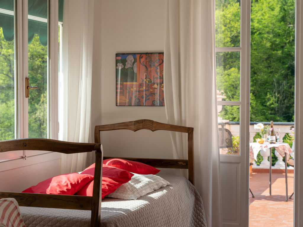 Der Agriturismo 'Val Prino' mit den beiden nebeneinanderliegenden Wohnungen COSTANZA (PRE 130) und VALERIA (PRE 131), steht an der kleinen Dorfstraße in der Ortsmitte von Molini di Prelà. Einkaufsmöglichkeit ca. 100 m. Fluss mit Bademöglichkeit ca. 700 m. Zu den Sand- und Kiesstränden von Imperia 9 km. Parkplätze an der Straße beim Haus sowie unter schattenspendenden Bäumen an der Piazza mit ligurischem Spezialitäten-Restaurant (ca. 100 m). Zur Ferienwohnung PRE 130 gehören 2 Sonnenterrassen, 1 Sonnenschirm und 1 Freisitz unter Sonnenpavillon. PRE 131 ebenfalls mit sonniger Terrasse sowie Terrasse unter Pergola. Jede Wohnung hat einen schön angelegten umzäunten Garten mit Blumen, Kräutern, Palmen und Obstbäumen. Jeweils Gartenmobiliar, 2 Liegestühle, Sonnenschirm und transportabler Grill. Die Besitzerin verleiht 2 Mountainbikes (ohne Berechnung, je nach Verfügbarkeit). Ein Teil der 1. Etage sowie das Erdgeschoss stehen leer. Die sorgfältige Renovierung aller Innenräume bewahrte die original Genueser Fliesenböden. Deckengemälde (PRE 130), Stuckverzierungen, Antiquitäten und stilvolle Accessoires. Sat-TV (deutsche Programme). Waschmaschine. PRE 130 mit CD, Radio, Bügeleisen/-brett. Gas-Zentralheizung.