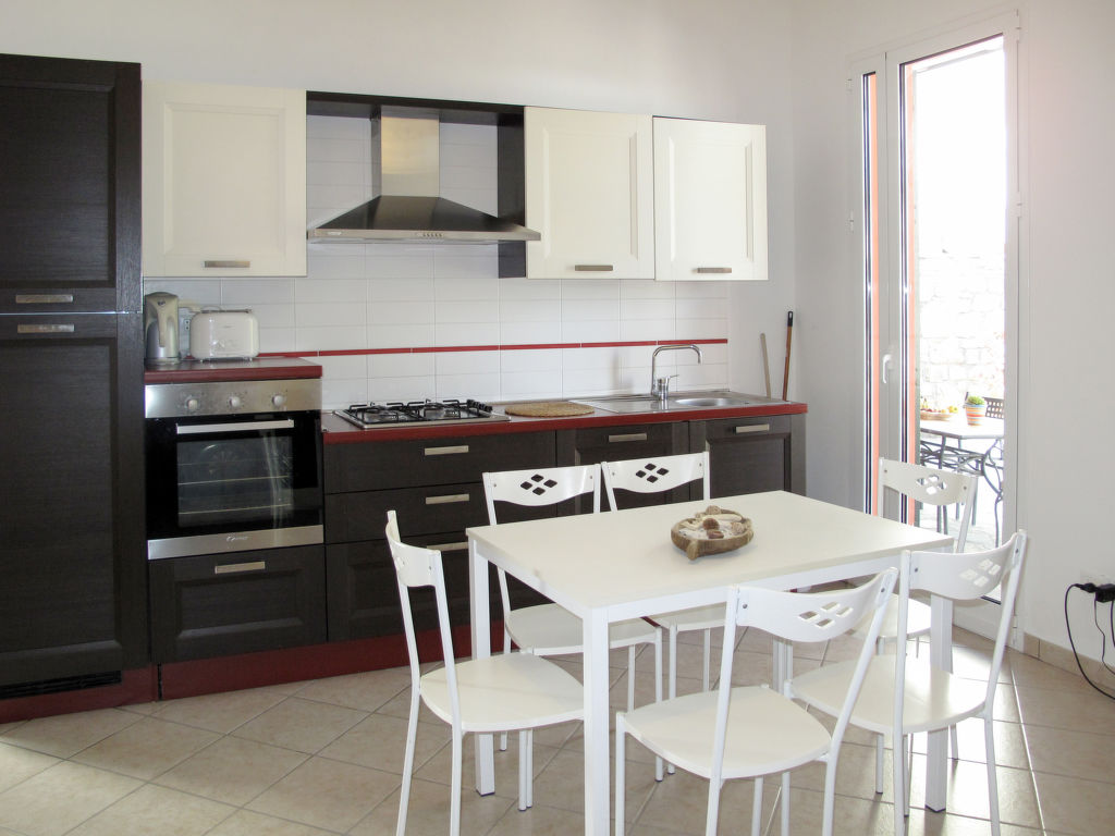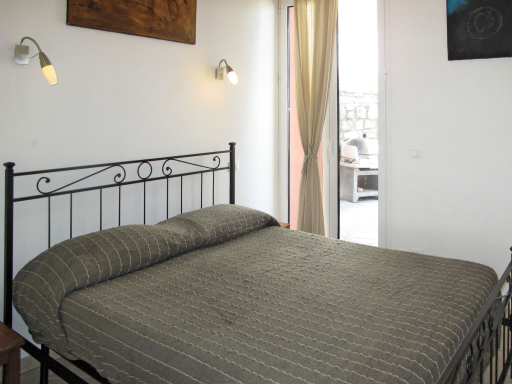 3-Zimmer-Wohnung 'Ciliegi', Erdgeschoss, ca. 65 m². Separater Zugang über Fußweg (ca. 10 m) und 2 Stufen. Wohn-/Schlafraum mit Doppelbettcouch, Essplatz und Küchenzeile (4 Flammen, Backofen, Kühl-/Gefrierkombination, Kaffeemaschine, Wasserkocher, Toaster), Terrassenausgang. Schlafzimmer mit franz. Bett (1,60 m breit) und Terrassenausgang. Zweibettzimmer (Betten 0,80 m breit). Dusche/Bidet/WC. CITR: 008031-AGR-0015