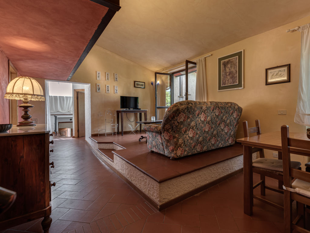 "Le Sodole - Papavero e Pervinca", 6-Zimmer-Haus 160 m2 auf 2 Stockwerken, im Erdgeschoss. Objekt geeignet für 8 Erwachsene. Zweckmässig und rustikal eingerichtet: Wohnzimmer mit Sat-TV. Ausgang zur Terrasse. 1 Doppelzimmer. Ausgang zur Terrasse. 1 Doppelzimmer. Ausgang zum Garten. Küche (Backofen, 4 Flammen, Tiefkühler, elektrische Kaffeemaschine) mit Esstisch. Ausgang zum Garten. 2 Duschen/Bidet/WC. Obergeschoss: Wohn-/Esszimmer mit Esstisch und Sat-TV. Ausgang zur Terrasse. 1 Doppelzimmer mit Dusche/Bidet/WC. Ausgang zur Terrasse. 1 Doppelzimmer. Küche (1 Kochplatte, Mini-Backofen, Backofen, 3 Flammen, Tiefkühler, elektrische Kaffeemaschine) mit Esstisch. Ausgang zum Garten. Bad/Bidet/WC. G-Heizung. Natursteinböden. 3 Terrassen, Gartensitzplatz, Laube. Terrassenmöbel, Gartengrill, Liegestühle, Abstellkammer. Schöne Sicht auf die Landschaft. Zur Verfügung: Waschmaschine, Kinderhochstuhl, Babybett bis 2 Jahre. Internet (Wireless LAN, gratis). Parkplatz Nr. 2. Bitte beachten: geeignet für Familien. Nichtraucher-Unterkunft. 1 Haustier/Hund erlaubt. Eigener Eingang. Vom Wohnraum führt eine Treppe zur Galerie (bleibt verschlossen).