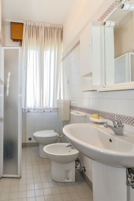Die fünfgeschossige Residence RANIERI, direkt an ein Hotel angebaut (selber Besitzer), liegt im Ortsteil Bibione-Lido del Sole, ca. 100 m vom Strand entfernt. Nächster Supermarkt schräg gegenüber (ca. 30 m). Weitere Geschäfte, Restaurants und Eisdiele jeweils ca. 20-150 m. Im Erdgeschoss des Hauses Bäckerei und Agenturbüro. Aufzug bis zur 3. Etage. Pro Wohnung jeweils 1 überdachter Parkplatz auf dem Grundstück. Alle Wohnungen haben Balkon (teils überdacht) mit Mobiliar. Feriengerechte Einrichtung. Fliesenböden. Sat-TV (deutsche Programme), Internetzugang (WLAN, inklusive), Safe, Waschmaschine, Klimaanlage mit Kühl-/Heizfunktion (im Wohnraum). Strandservice: Bis ca. Ende Mai/ab ca. Anfang September sind 1 Sonnenliege, 1 Liegestuhl und 1 Sonnenschirm pro Wohnung inklusive (ansonsten € 11,50/Tag). Fahrradverleih: Citybike, € 14/Person/Woche (auch mit Helm und/oder Kindersitz, jeweils gratis), auf Anfrage und gegen Bezahlung am Ort auch E-Bike (Kaution).