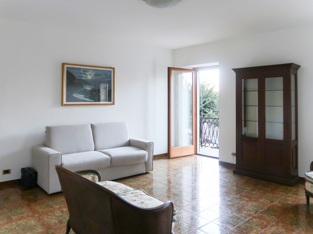 "Charlie", 3-Zimmer-Wohnung 100 m2 im 1. Stock. Geräumig, renoviert im Jahre 2018, zweckmässig eingerichtet: Wohn-/Schlafzimmer mit 1 Doppeldiwanbett, offenem Kamin und Sat-TV. Ausgang zum Balkon. 1 Zimmer mit 1 Doppelbett (160 cm). 1 Zimmer mit 2 Betten. Küche (Backofen, Geschirrspüler, 4 Flammen, Toaster, Wasserkocher, Tiefkühler, elektrische Kaffeemaschine) mit Esstisch. Ausgang zum Balkon. Dusche/Bidet/WC. G-Heizung. Heizung nur verfügbar von 01.10. bis 30.04. Balkon. Balkonmöbel, Abstellkammer. Eingeschränkte Sicht auf den See. Zur Verfügung: Kinderhochstuhl, Babybett bis 2 Jahre. Internet (Wireless LAN, gratis). Bitte beachten: Wohnung auf Strassenseite. Nichtraucher-Unterkunft. Maximal 1 kleines Haustier/Hund erlaubt. CIR:013090-CNI-00048