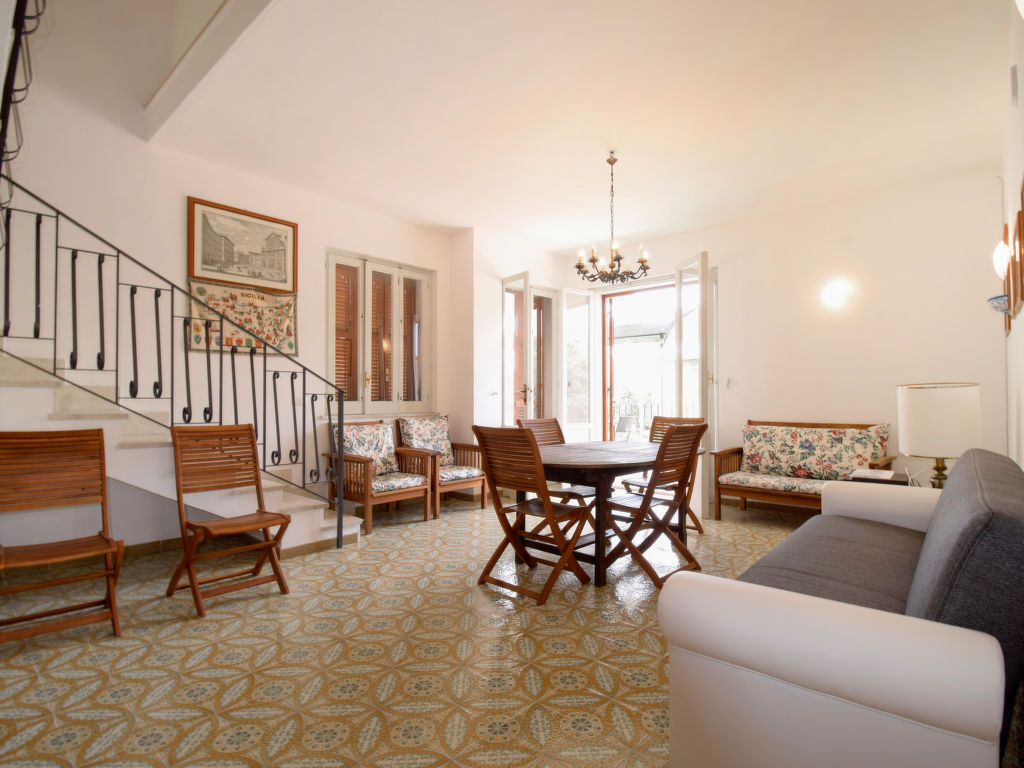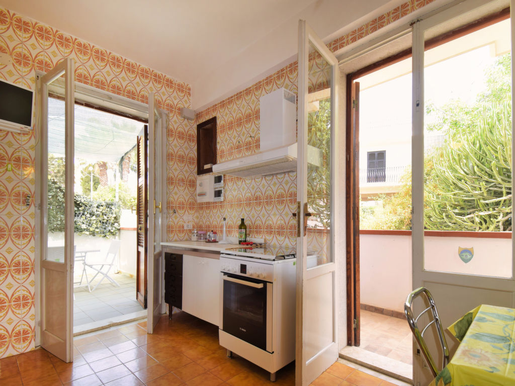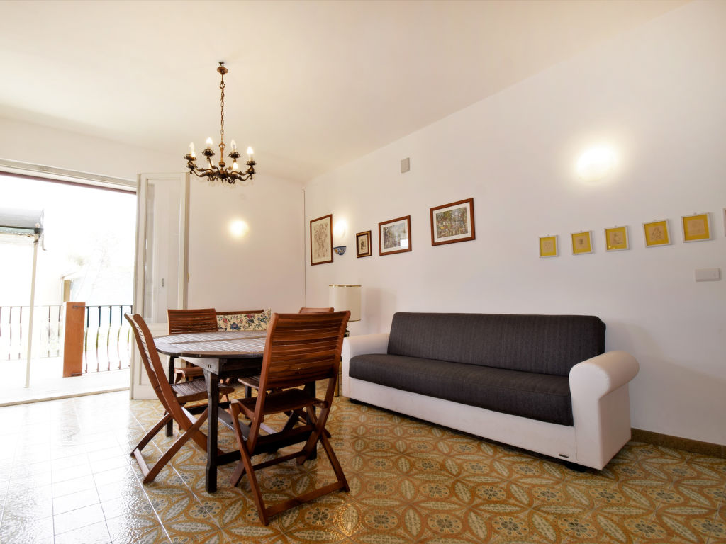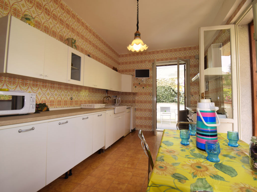 "Ulisse", 4-Zimmer-Wohnung 140 m2 auf 2 Stockwerken, im Erdgeschoss. Einfach und zweckmässig eingerichtet: grosse, offene Küche 90 m2 (6 Kochplatten, Backofen, Tiefkühler) mit Esstisch, TV (Flachbildschirm). Dusche/WC. Klimaanlage, Warmluftheizung (extra). Obergeschoss: (Aussentreppe) Wohn-/Esszimmer mit 1 Doppeldiwanbett und TV (Flachbildschirm), Klimaanlage und Warmluftheizung. Ausgang zur Terrasse. Eingang mit Klimaanlage und Warmluftheizung. 1 Doppelzimmer mit Dusche/Bidet/WC und TV (Flachbildschirm). Ausgang zur Veranda. 1 Doppelzimmer mit TV (Flachbildschirm). Ausgang zur Terrasse. 1 Zimmer mit 2 Betten. Ausgang zum Balkon. Küche (4 Kochplatten, Backofen, Geschirrspüler, Toaster, Wasserkocher, Mikrowelle, Tiefkühler, elektrische Kaffeemaschine) mit Esstisch. Ausgang zur Terrasse. Dusche/Bidet/WC. Klimaanlage, Warmluftheizung (extra). Grosse Terrasse 20 m2 teilweise überdacht. Terrassenmöbel. Eingeschränkte Sicht auf das Meer und die Ortschaft. Zur Verfügung: Waschmaschine, Bügeleisen, Kinderhochstuhl, Babybett bis 2 Jahre, Haartrockner. Internet (Wireless LAN, gratis). Parkplatz (1 Auto). Bitte beachten: Nichtraucher-Unterkunft. Maximal 1 Haustier/Hund erlaubt. Eigener Eingang, kein Fahrstuhl. Keine interne Verbindung zwischen den separaten Wohneinheiten.