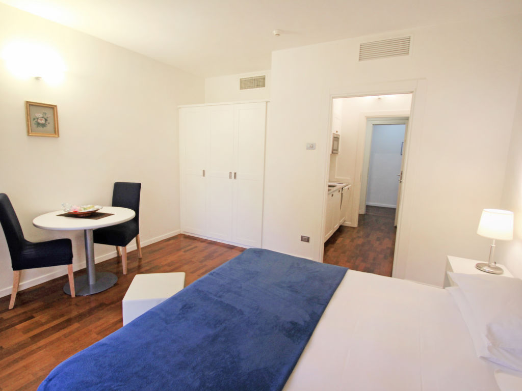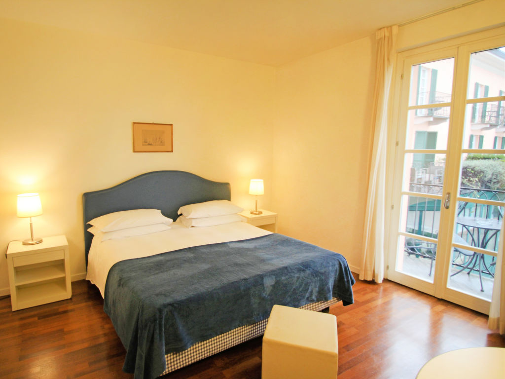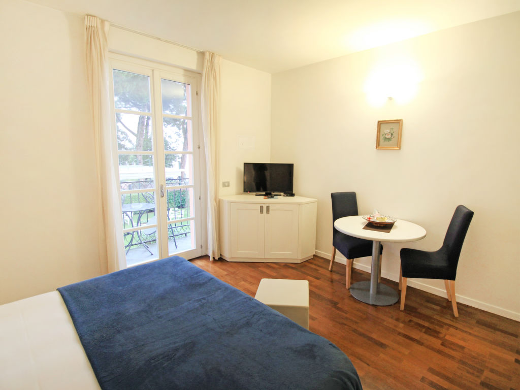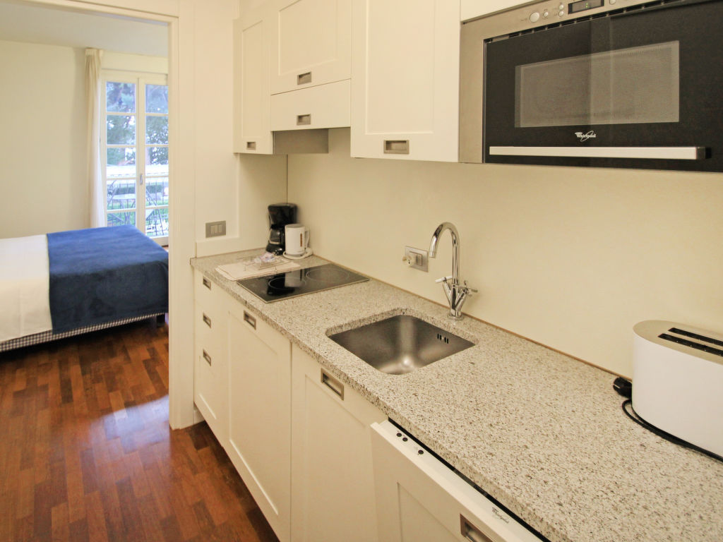 1-Zimmer-Studio 30 m2 im 1. Stock. Komfortabel eingerichtet: Wohn-/Esszimmer mit 1 Doppelbett und Sat-TV. Kochnische (Geschirrspüler, 2 Induktionskochplatten, Mikrowelle, elektrische Kaffeemaschine). Dusche/Bidet/WC. G-Heizung (extra), Klimaanlage. Heizung nur verfügbar von 15.10. bis 15.04. Kleiner Balkon. Sicht auf den See. Zur Verfügung: Safe, Haartrockner. Internet (Wireless LAN, gratis). Bitte beachten: Nichtraucher-Unterkunft. 1 Haustier/Hund erlaubt.
