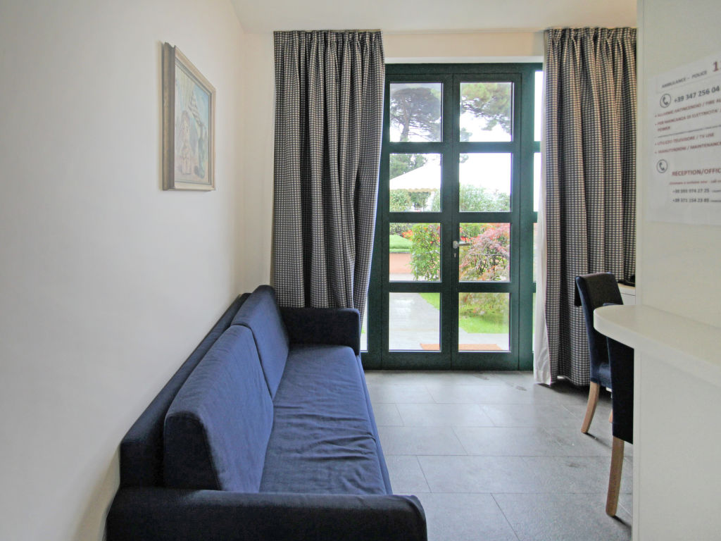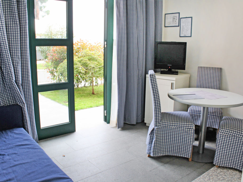 2-Zimmer-Wohnung 35 m2, im Erdgeschoss. Komfortabel eingerichtet: Wohn-/Esszimmer mit 1 Diwanbett und Sat-TV. 1 Doppelzimmer. Kochnische (Geschirrspüler, 2 Induktionskochplatten, Mikrowelle, elektrische Kaffeemaschine). Dusche/Bidet/WC. G-Heizung (extra), Klimaanlage. Heizung nur verfügbar von 15.10. bis 15.04. Kleiner Gartensitzplatz. Balkonmöbel. Eingeschränkte Sicht auf den See. Zur Verfügung: Safe, Haartrockner. Internet (Wireless LAN, gratis). Bitte beachten: Nichtraucher-Unterkunft. 1 Haustier/Hund erlaubt.