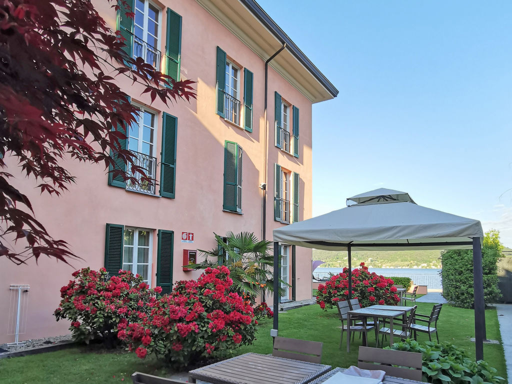 Komfortable Residenz "Antico Verbano". 28 Wohnungen in der Residenz. Im Ortszentrum von Meina, direkt am See. Zur Mitbenutzung: Garten mit Rasen und Bäumen, Schwimmbad (12 x 6 m, 120 cm tief, saisonale Verfügbarkeit: 01.Jun.-30.Sep.). Aussendusche. Im Hause: Empfang, Bar, Fahrstuhl, Sonnenterrasse, Waschmaschine (zur Mitbenutzung, extra), Fahrradverleih. Wohnungsreinigung möglich (extra). Parkplatz (beschränkte Anzahl, extra) in 200 m. Supermarkt 3 km, Restaurant, Bar 200 m, Bahnstation "Meina" 1 km. Nahe gelegene Sehenswürdigkeiten: Arona 3 km, Stresa 15 km, Orta San Giulio 17 km. Bitte beachten: Das Foto ist nur ein Hausbeispiel.