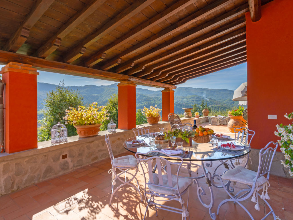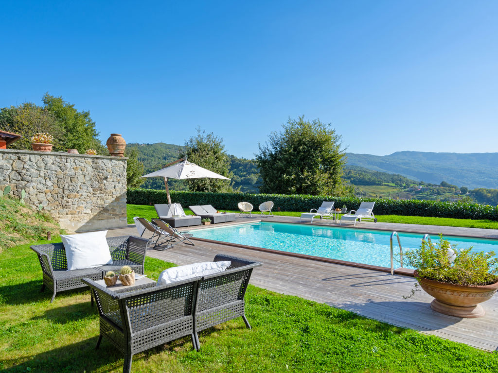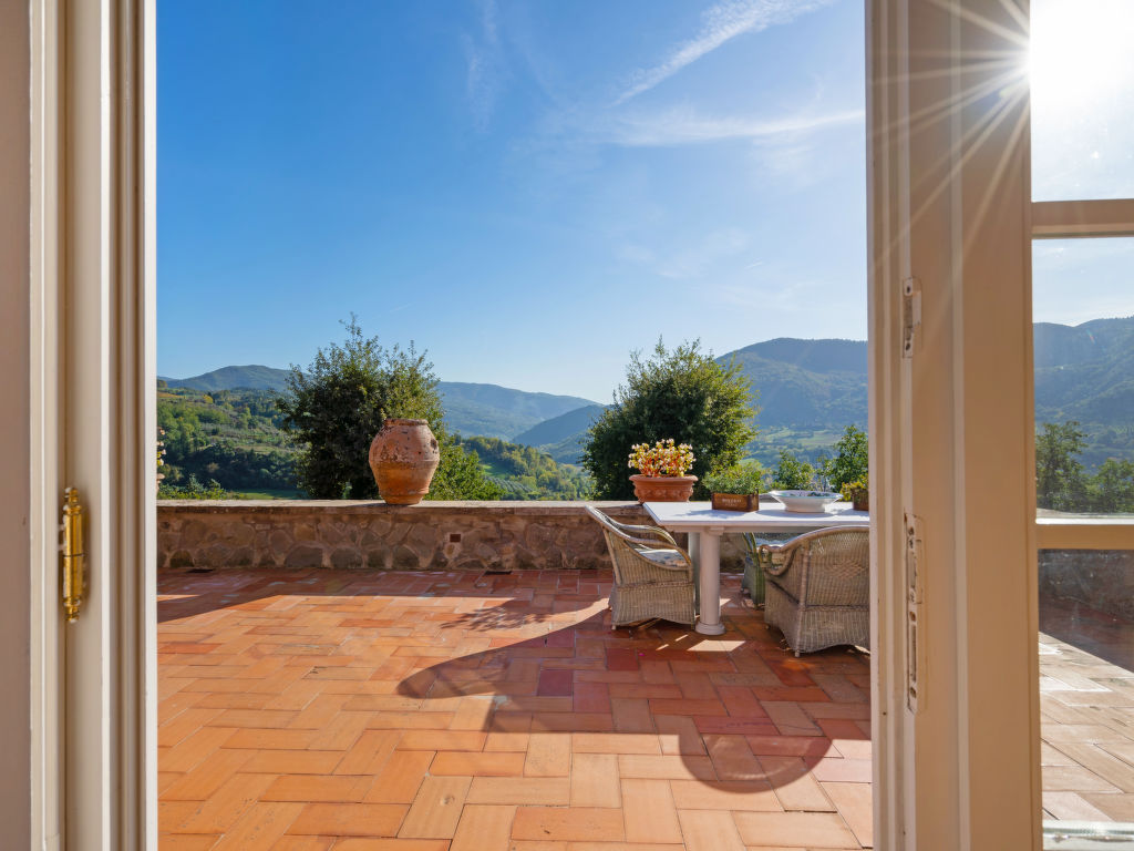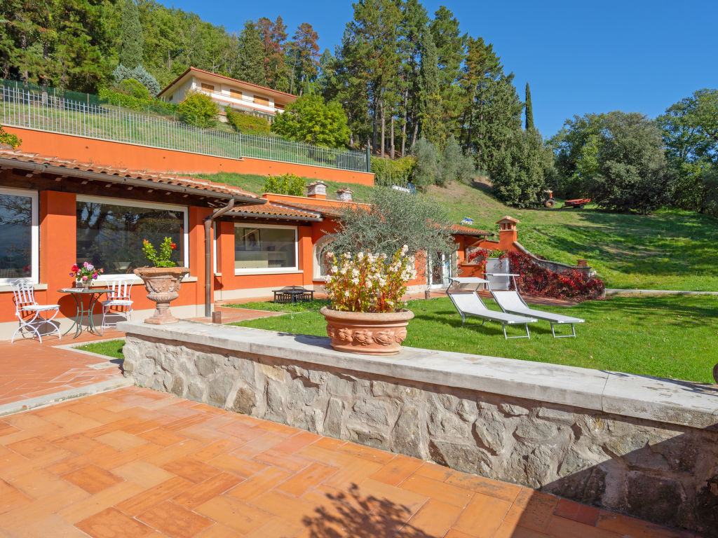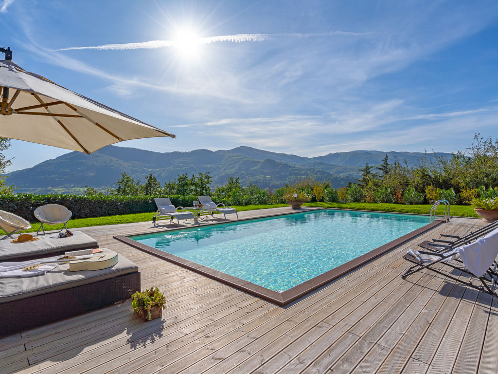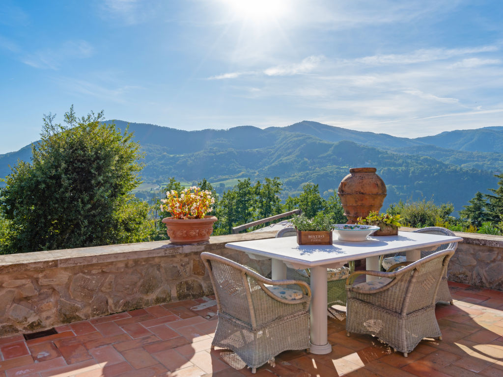Die Villa La Veduta befindet sich in einer panoramischen und hügeligen Lage mit Blick auf das umliegende Tal und die Stadt Dicomano. Alleinstehende Villa "La Veduta", 250 m.ü.M.. 1.5 km vom Zentrum von Dicomano, 8 km vom Zentrum von Vicchio, 30 km vom Zentrum von Firenze, alleinstehende, sonnige, erhöhte Lage auf einem Hügel, 31 km vom See, im Grünen. Zur Alleinbenutzung: Garten 2'500 m2 (eingezäunt), Schwimmbad (10 x 5 m, 125 cm tief, 01.05.-30.09.). Aussendusche, Gartenmöbel, Grill. Heizung vor Ort zu zahlen, Heizung nur verfügbar von 01.11. bis 15.04.. Koch möglich (extra). Parkplatz auf dem Grundstück. Einkaufsgeschäft 1.2 km, Supermarkt 1.2 km, Sandstrand "Viareggio" 140 km, Badesee "Bilancino" 31 km. Golfplatz 20 km, Reitstall 5 km. Nahe gelegene Sehenswürdigkeiten: Outlet The Mall 29 km, Scarperia 30 km, Barberino del Mugello 37 km, Vallombrosa 38 km. Das Grundstück ist komplett eingezäunt mit internem Parkplatz und Videoüberwachung am Eingang.
