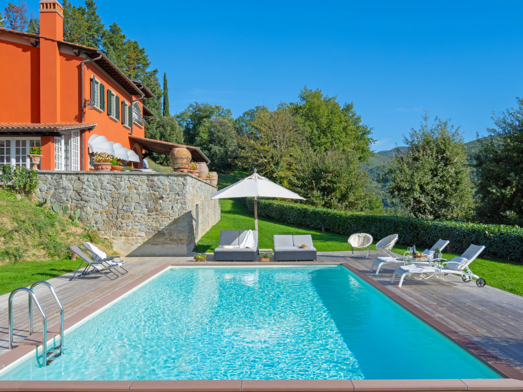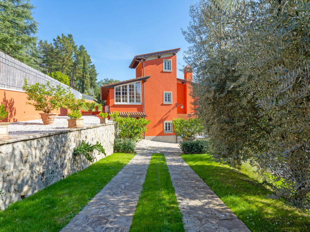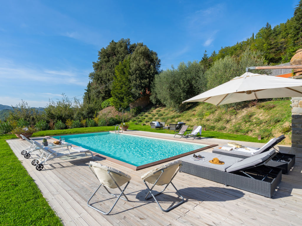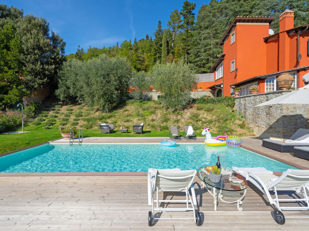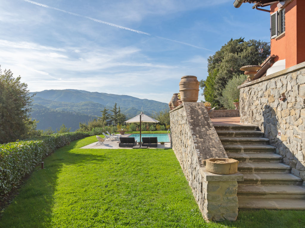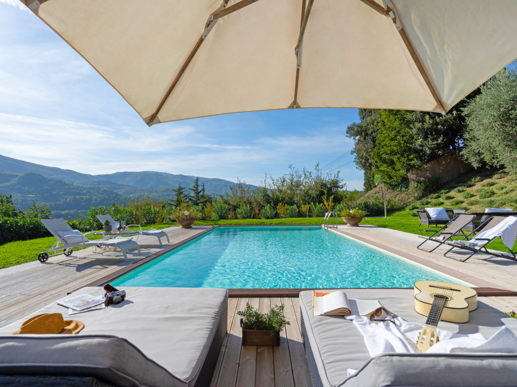 Die Villa La Veduta befindet sich in einer panoramischen und hügeligen Lage mit Blick auf das umliegende Tal und die Stadt Dicomano. Alleinstehende Villa "La Veduta", 250 m.ü.M.. 1.5 km vom Zentrum von Dicomano, 8 km vom Zentrum von Vicchio, 30 km vom Zentrum von Firenze, alleinstehende, sonnige, erhöhte Lage auf einem Hügel, 31 km vom See, im Grünen. Zur Alleinbenutzung: Garten 2'500 m2 (eingezäunt), Schwimmbad (10 x 5 m, 125 cm tief, 01.05.-30.09.). Aussendusche, Gartenmöbel, Grill. Heizung vor Ort zu zahlen, Heizung nur verfügbar von 01.11. bis 15.04.. Koch möglich (extra). Parkplatz auf dem Grundstück. Einkaufsgeschäft 1.2 km, Supermarkt 1.2 km, Sandstrand "Viareggio" 140 km, Badesee "Bilancino" 31 km. Golfplatz 20 km, Reitstall 5 km. Nahe gelegene Sehenswürdigkeiten: Outlet The Mall 29 km, Scarperia 30 km, Barberino del Mugello 37 km, Vallombrosa 38 km. Das Grundstück ist komplett eingezäunt mit internem Parkplatz und Videoüberwachung am Eingang.