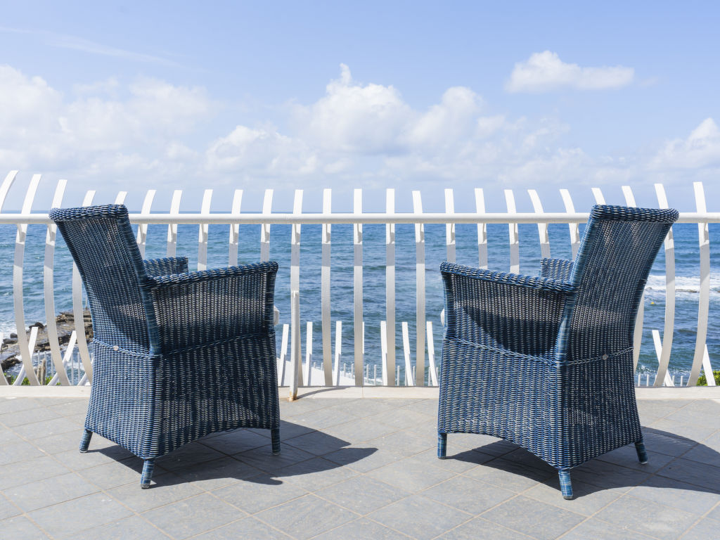 "La Califfa", 6-Zimmer-Haus 300 m2 auf 2 Stockwerken. Hell: Wohn-/Esszimmer mit Esstisch, TV und Stereoanlage. Ausgang zur Terrasse. 1 Zimmer mit 1 franz. Bett (120 cm). Küche (Geschirrspüler, 4 Flammen, Toaster, Wasserkocher, Kombinationsmikrowelle). Dusche/WC. Obergeschoss: 1 Zimmer mit 1 Doppelbett und Dusche/Bidet/WC. Ausgang zum Balkon. 1 Zimmer mit 1 Doppelbett. 1 Zimmer mit 1 x 2 Etagenbetten. Bad/WC. E-Heizung, Klimaanlage. Balkon, Terrasse teilweise überdacht. Terrassenmöbel, Gartengrill (mobil), Liegestühle. Sehr schöne Sicht auf das Meer. Zur Verfügung: Waschmaschine, Fliegengitter, Babybett. Internet (Wireless LAN, gratis). Bitte beachten: Nichtraucher-Haus. Maximal 1 Haustier/Hund erlaubt.