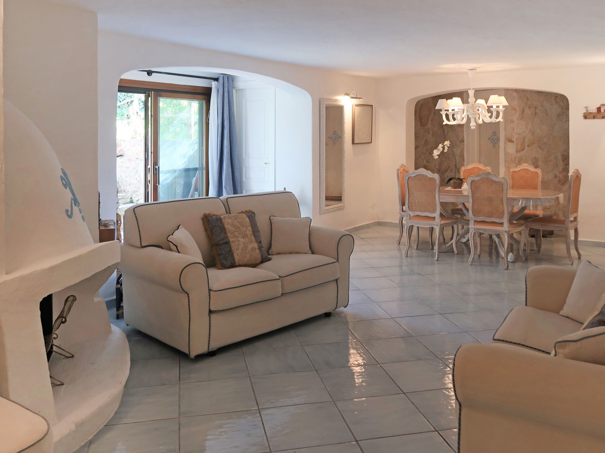 6-Zimmer-Haus 190 m2 auf 2 Stockwerken. Komfortabel und gemütlich eingerichtet: grosses Wohn-/Esszimmer mit Sat-TV, Flachbildschirm und Klimaanlage. Ausgang zum Garten. 1 Doppelzimmer mit Dusche/Bidet/WC. 1 Doppelzimmer mit Dusche/WC. Kochnische (4 Kochplatten, Backofen, Geschirrspüler, Mikrowelle, Tiefkühler). Sep. WC. Obergeschoss: 1 grosses Doppelzimmer mit Bad/Dusche/Bidet/WC und Klimaanlage. Ausgang zur Veranda. 1 Doppelzimmer mit Klimaanlage. 1 Doppelzimmer, ohne Schrank. Dusche/Bidet/WC. Klimaanlage (extra). Terrasse überdacht, grosser Gartensitzplatz überdacht, Garten. Terrassenmöbel, Gartengrill, Sitzplatz. Zur Verfügung: Waschmaschine, Bügeleisen, Haartrockner.