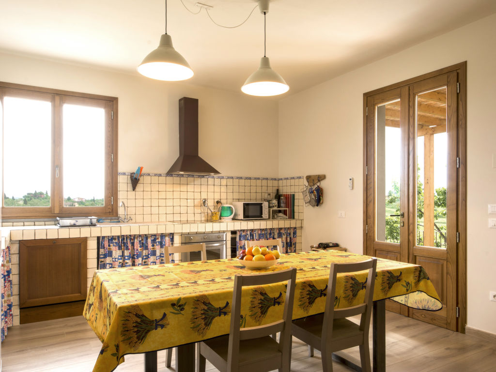 6-Zimmer-Haus 200 m2 auf 2 Stockwerken, im Erdgeschoss. Renoviert im Jahre 2015, zweckmässig und geschmackvoll eingerichtet: Wohn-/Esszimmer mit Klimaanlage. Ausgang zum Garten. Wohn-/Esszimmer mit Klimaanlage. Ausgang zum Garten. 1 Doppelzimmer mit Dusche/WC. Kochnische (Mini-Backofen, Geschirrspüler, 4 Induktionskochplatten, Tiefkühler). Obergeschoss: 1 Doppelzimmer mit Dusche/WC und Klimaanlage. Wohn-/Esszimmer mit Klimaanlage. 1 Doppelzimmer mit Dusche/WC. Kochnische (Mini-Backofen, Geschirrspüler, 4 Induktionskochplatten, Tiefkühler). Warmluftheizung. Terrassenmöbel, Gartengrill. Panoramasicht auf die Landschaft. Zur Verfügung: Waschmaschine, Fliegengitter, Kinderhochstuhl, Babybett bis 2 Jahre. Internet (Wireless LAN, gratis). 1 Haustier/Hund erlaubt.