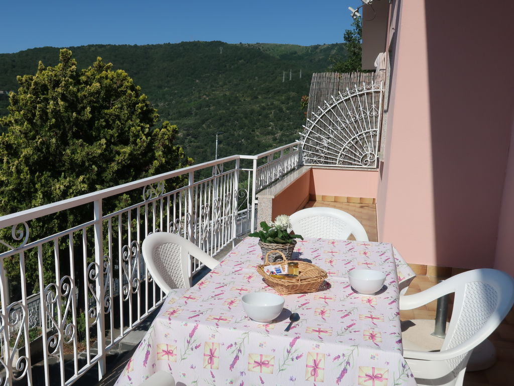 "Simone", 3-Zimmer-Wohnung 60 m2, im Obergeschoss. Zweckmässig eingerichtet: Wohn-/Esszimmer mit Esstisch und TV. Ausgang zum Balkon. 1 Zimmer mit 1 Doppelbett (160 cm), Ventilator. Ausgang zum Balkon. 1 Zimmer mit 1 Doppelbett (160 cm). Offene Küche (4 Kochplatten, Backofen, Geschirrspüler, Tiefkühler). Dusche/Bidet/WC. Heizung. Kleiner Balkon 4 m2, grosser Balkon 15 m2, Terrasse 50 m2. Balkonmöbel. Schöne Fernsicht auf die Landschaft, die Ortschaft und das Meer. Zur Verfügung: Waschmaschine, Kinderhochstuhl, Babybett. Internet (Wireless LAN). 1 Haustier/Hund erlaubt. CITR: 008067-AGR-0001