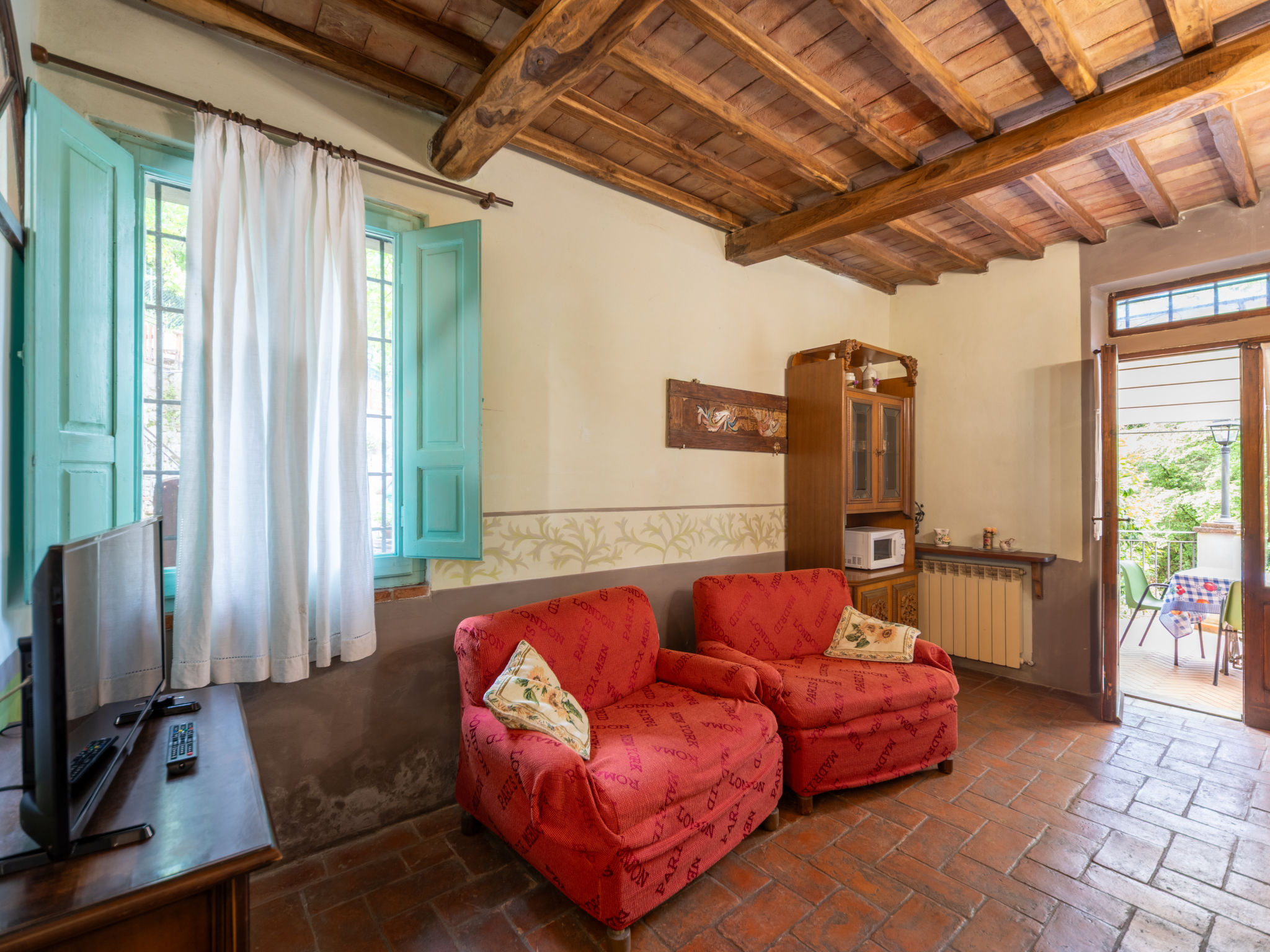 9-Zimmer-Haus 230 m2 auf 2 Stockwerken. Antik und geschmackvoll eingerichtet: Wohn-/Esszimmer. Ausgang zur Terrasse. Wohn-/Esszimmer mit Sat-TV. 1 Doppelzimmer. Wohn-/Esszimmer mit Sat-TV. 1 Doppelzimmer. Kochnische (2 Kochplatten, Mikrowelle). 2 Duschen/Bidet/WC. Obergeschoss: 3 Doppelzimmer, jedes Zimmer mit Dusche/Bidet/WC. Durchgangszimmer mit 2 Schlafmöglichkeiten und Sat-TV. Bitte beachten: Kühlschrank ohne Gefrierfach. 1 Haustier/Hund erlaubt. Keine interne Verbindung zwischen den separaten Wohneinheiten. Das Haus Il Mulinaccio, das wir als unabhängiges Haus vorschlagen, ist in drei Wohnungen aufgeteilt, die von außen miteinander kommunizieren.