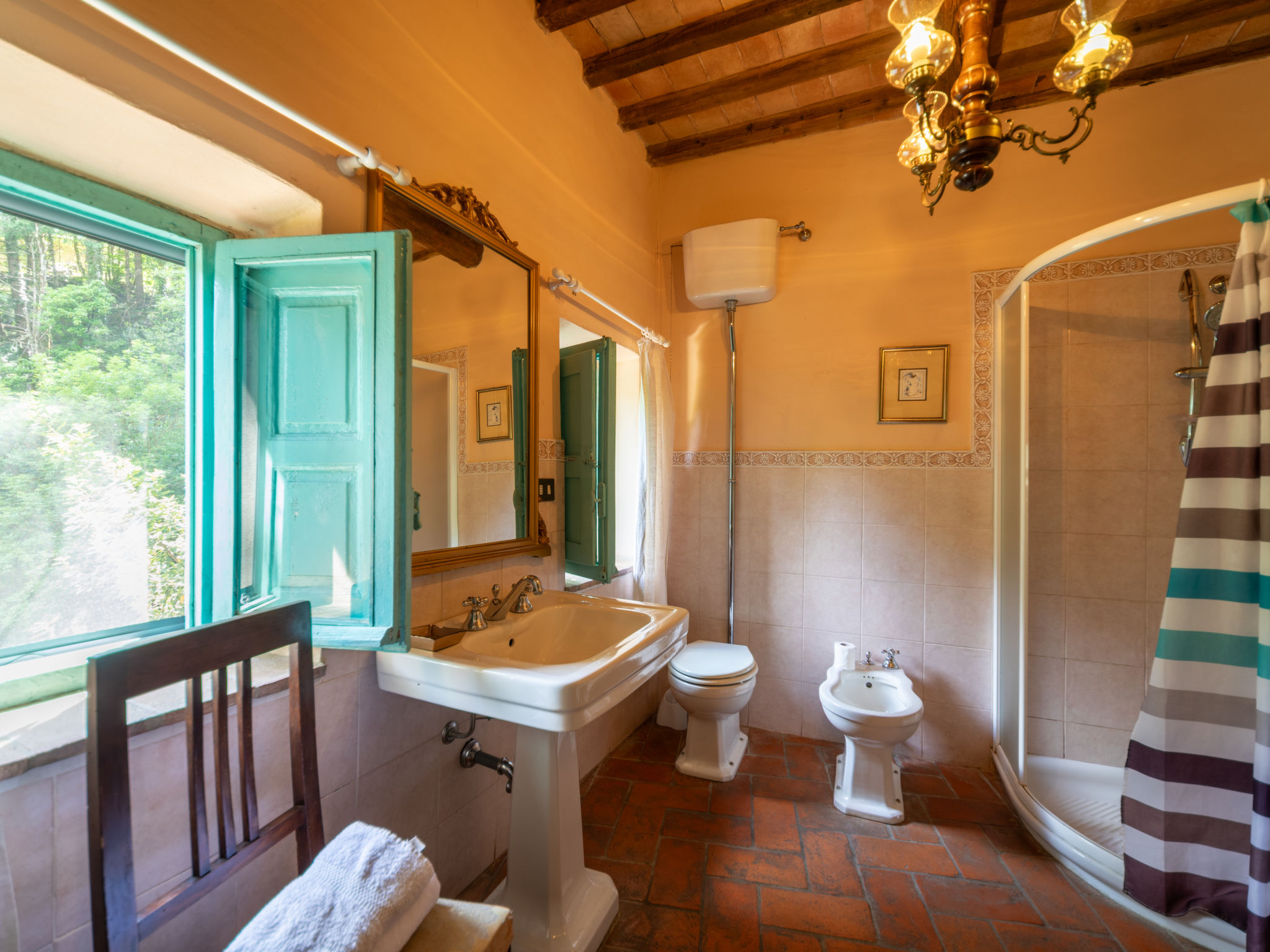 Ehemalige Mühle aus dem 17. Jh., vollständig restauriert, in aussichtsreicher Lage. Mitten im Grünen und mit Blick auf einen Wasserfall und den Fluss, wo man sich abkühlen kann. Im beheizten und gedeckten Schwimmbad (30 m2, ganzjährig geöffnet) mit Sicht auf das alte Mühlrad, ist es möglich, bereits in sehr kühler Jahreszeit zu baden. Nach einer Wanderung durch den Wald (1 km) erreicht man Loro Ciuffenna, mit sämtlichen Dienstleistungen. Ideale Ausgangslage für Trekking und Mountain-Bike-Touren. Alle 3 Wohnungen sind in unserem Angebot. Auf Wunsch werden die Gäste ins Bogenschiessen und in Entspannungstechniken eingeführt. Ruhiger Ort abgesehen vom Wasserfall, den man je nach Wetterlage gut hört. Windmühle "Il Mulinaccio". 1 km vom Zentrum von Loro Ciuffenna, 28 km vom Zentrum von Arezzo, 30 km vom Zentrum von Siena. Zur Alleinbenutzung: Grundstück (eingezäunt), Garten, Hallenbad beheizt (50 - 135 cm tief, 01.01.-31.12.) mit Innentreppe. Ungleichmässige Schwimmbadform, Gartenmöbel, Grill. Im Hause: Wireless LAN, Zentralheizung, Waschmaschine, Heizung vor Ort zu zahlen, Heizung nur verfügbar von 01.11. bis 15.04.. Wäschewechsel 1 mal wöchentlich. Wohnungsreinigung möglich (extra). Koch möglich (extra). Parkplatz beim Haus. Lebensmittelgeschäft 1.5 km, Restaurant 2 km, Bahnstation "Montevarchi" 12 km. Tennis 12 km. Nahe gelegene Sehenswürdigkeiten: Castelfranco di Sopra 19 km, Reggello 24 km, Arezzo 31 km, Abbazia di Vallombrosa 35 km, Bibbiena, Greve in Chianti 41 km, Monte San Savino 50 km.