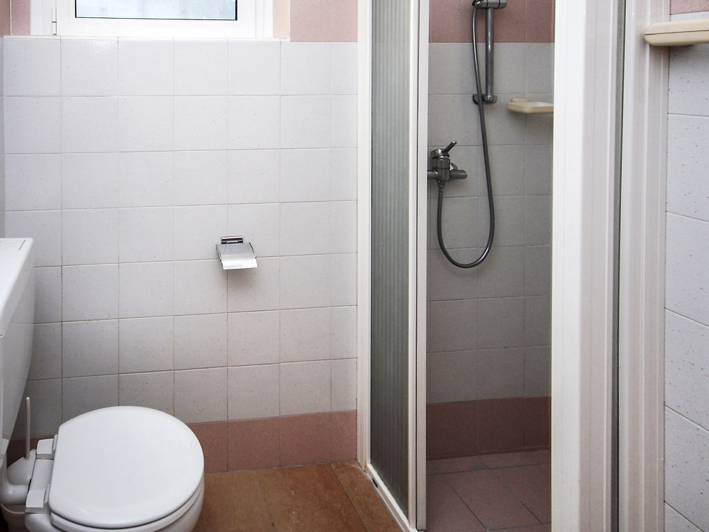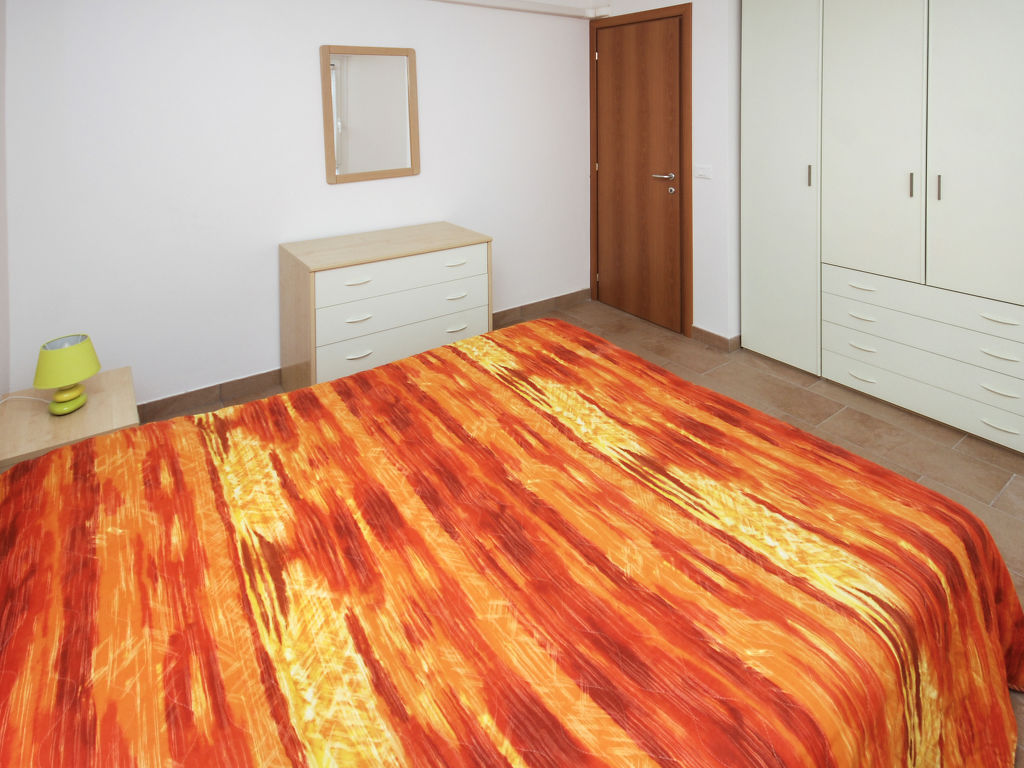 4-Zimmer-Haus, ca. 60 m². Großer Wohn-/Schlafraum mit Doppelbettcouch, Essplatz, Kamin. Kleine Küche (3 Flammen, Mikrowelle, Kühl-/Gefrierkombination, Kaffeemaschine). Doppelzimmer. Zweibettzimmer. Schlafzimmer mit Etagenbett. Dusche/WC.