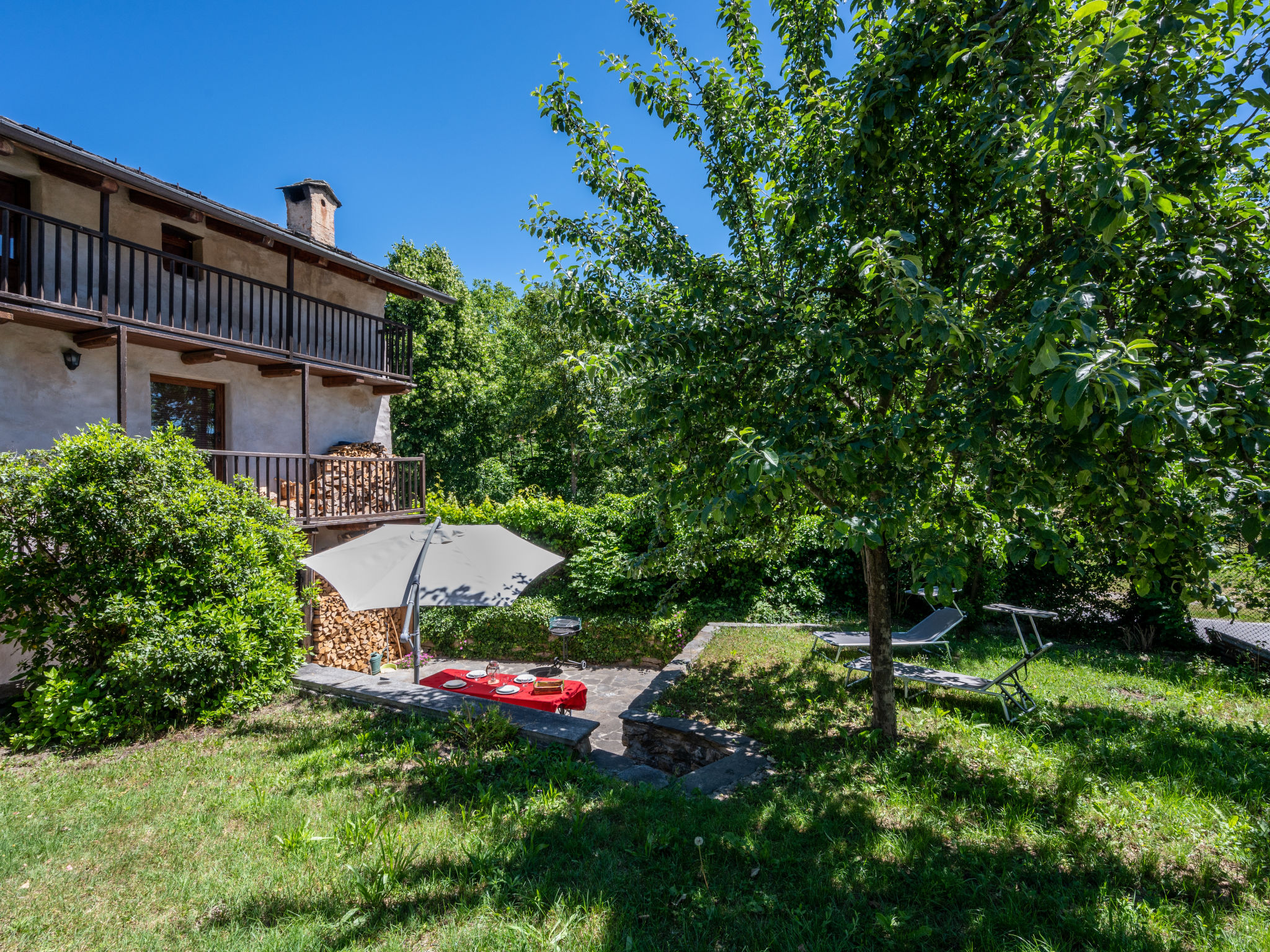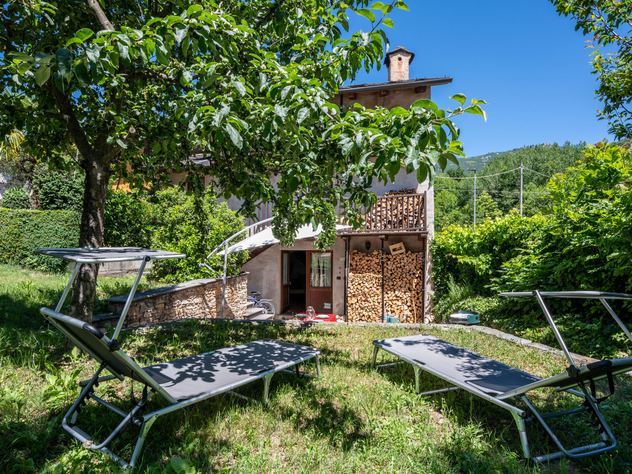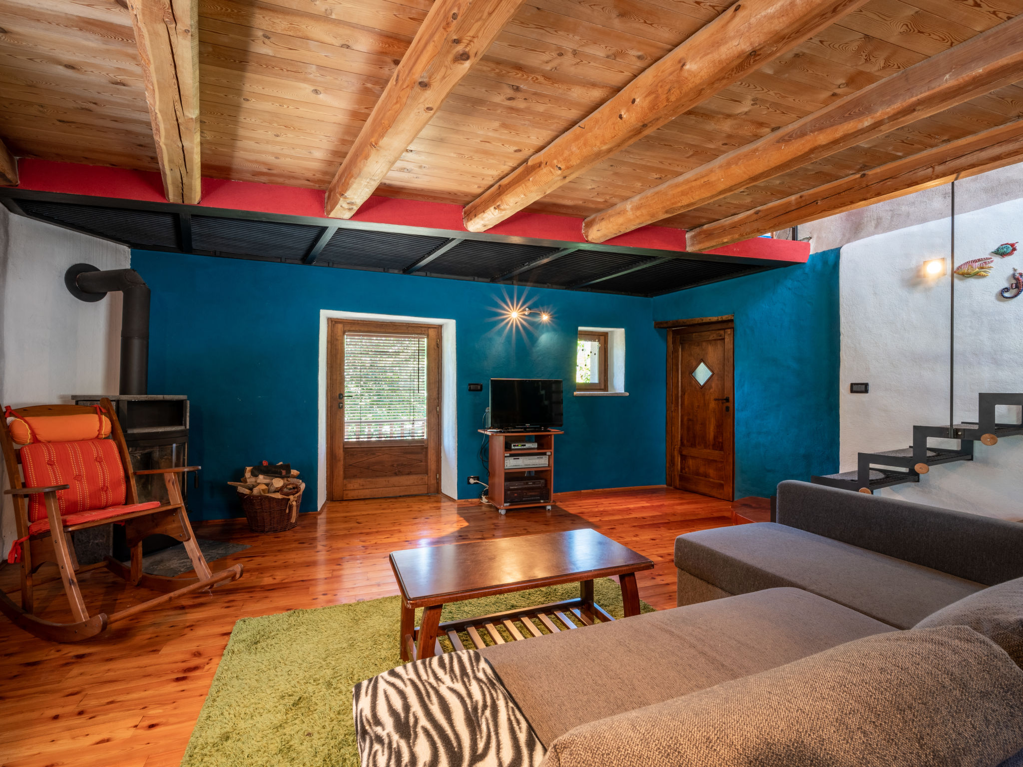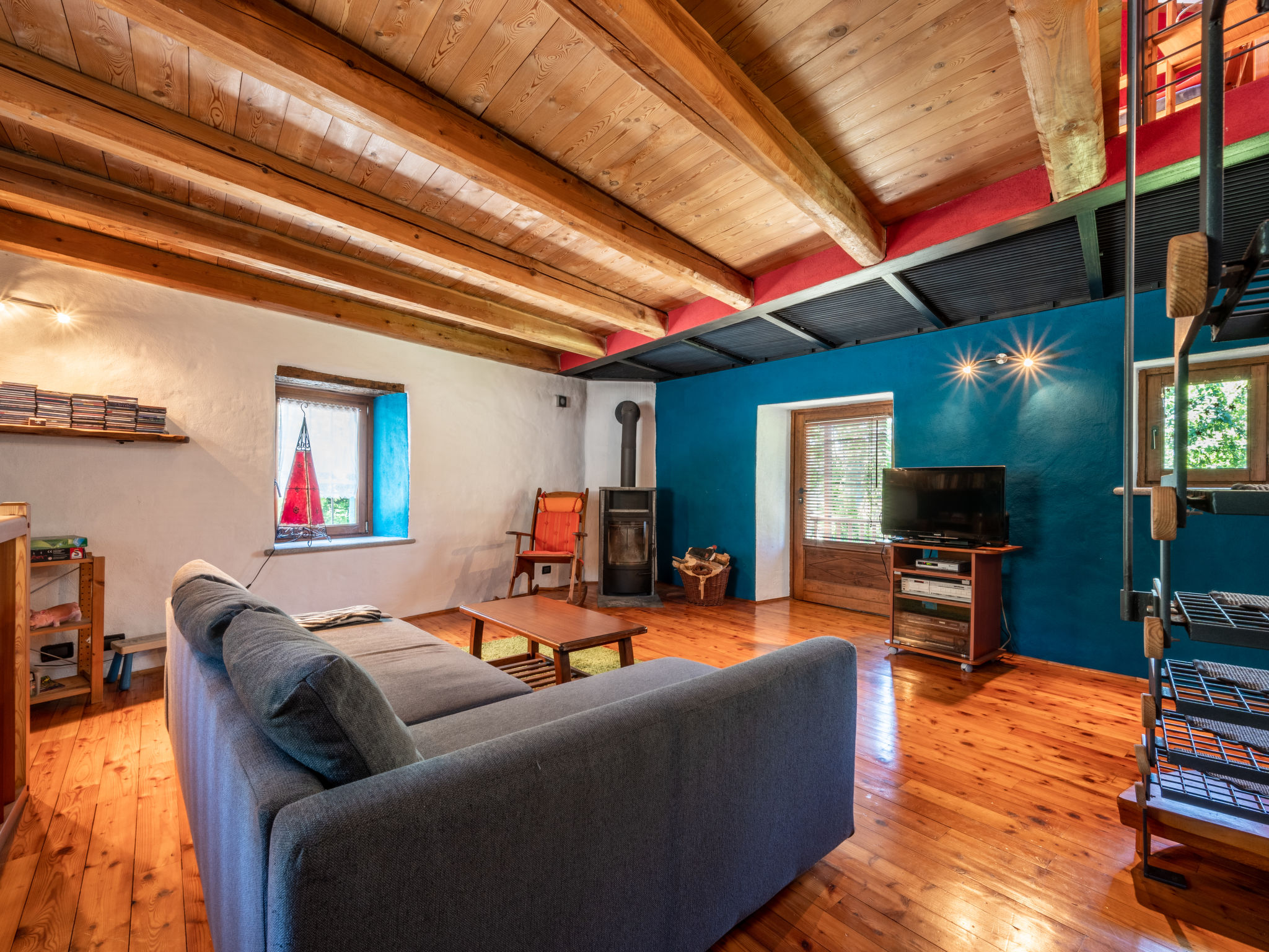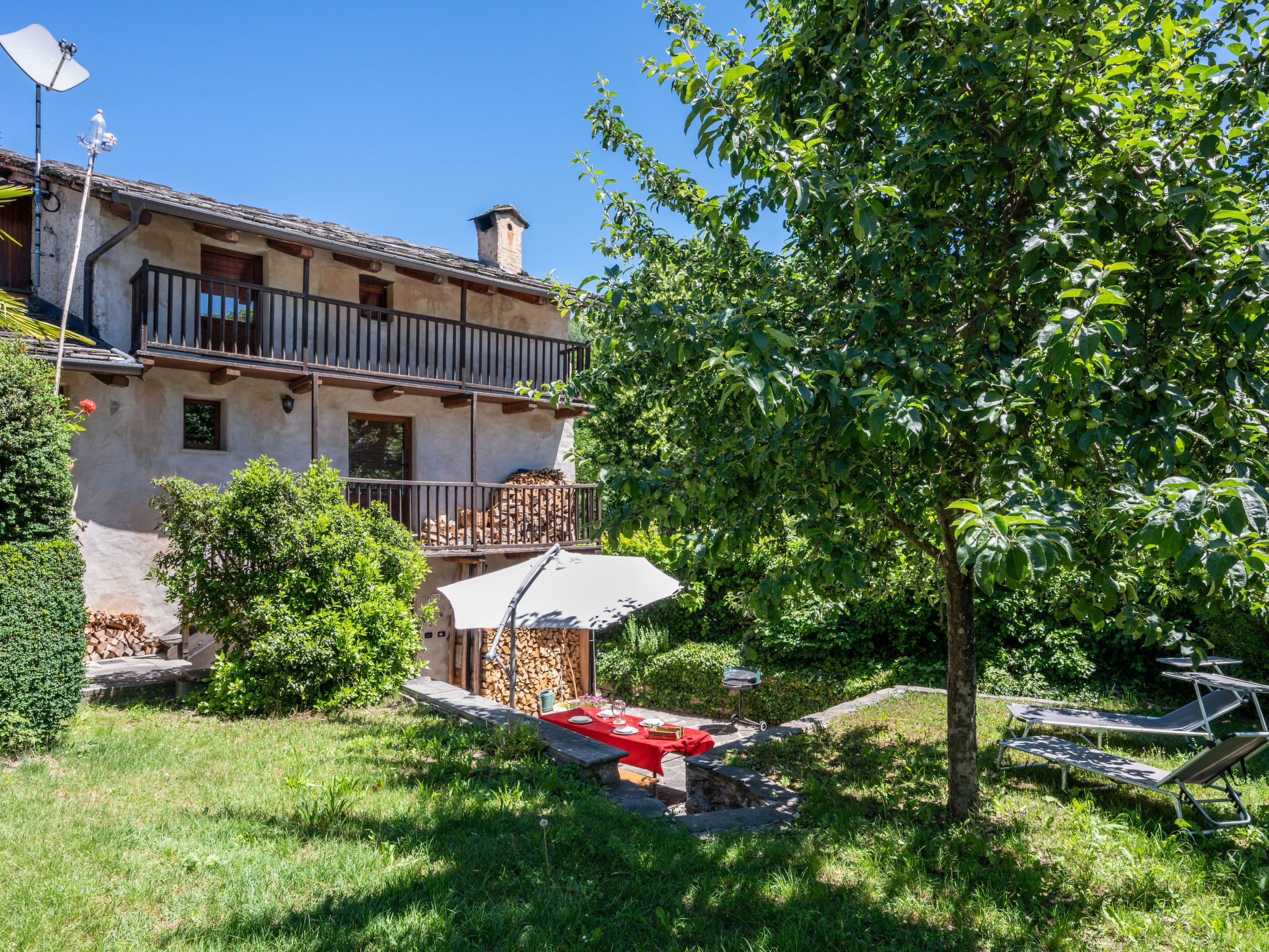 "Alexandra (VMI200)", 2-Zimmer-Haus 85 m2 auf 3 Stockwerken. Zweckmässig und gemütlich eingerichtet: Wohnküche (4 Kochplatten, Geschirrspüler, elektrische Kaffeemaschine) mit Esstisch. Ausgang zum Garten. Obergeschoss: Wohn-/Schlafzimmer mit 1 Doppeldiwanbett, Sat-TV und Heizofen. Ausgang zum Balkon. Bad/WC. Heizung nicht in allen Räumen. 2. Obergeschoss: (geländerlose Treppe) 1 abgeschrägtes Zimmer mit 1 Doppelbett. Ausgang zum Balkon. 2 Balkone, Terrasse, Garten. Terrassenmöbel, Balkonmöbel, Gartengrill, Liegestühle (2), Sitzplatz. Zur Verfügung: Waschmaschine, Babybett, Holz (extra). Internet (Wireless LAN). Bitte beachten: Nichtraucher-Haus. CIR00418700003