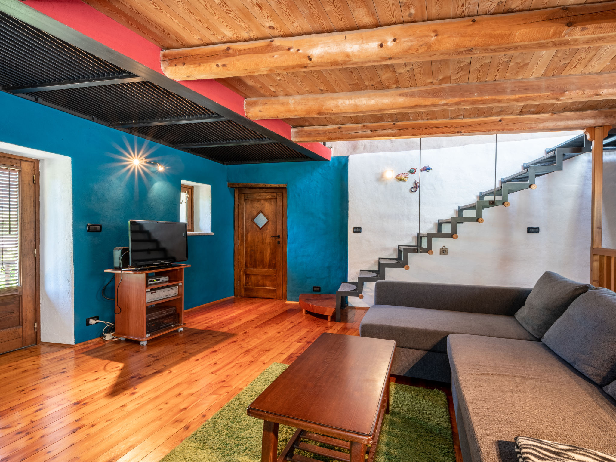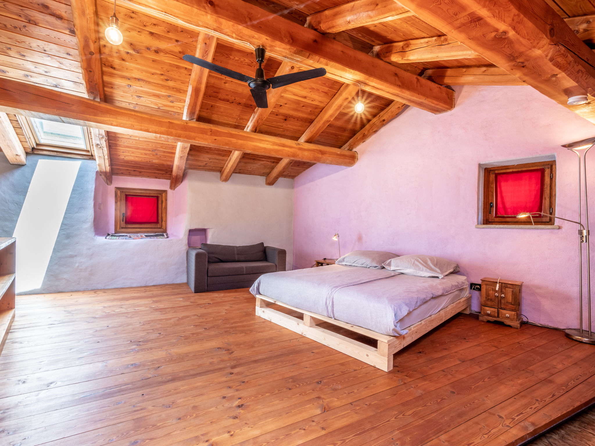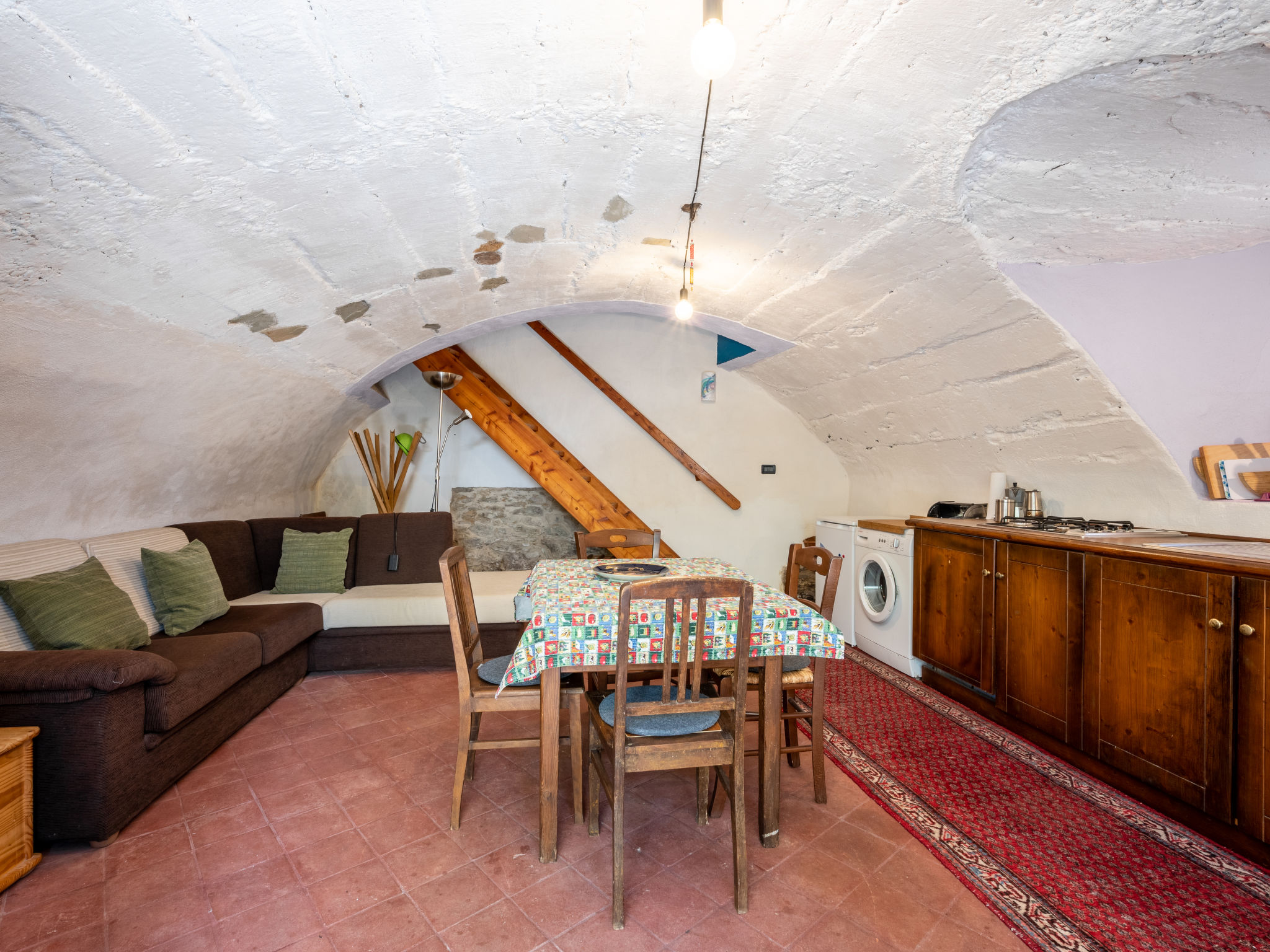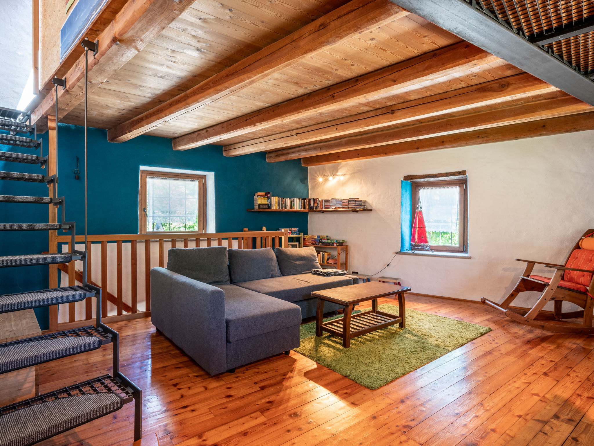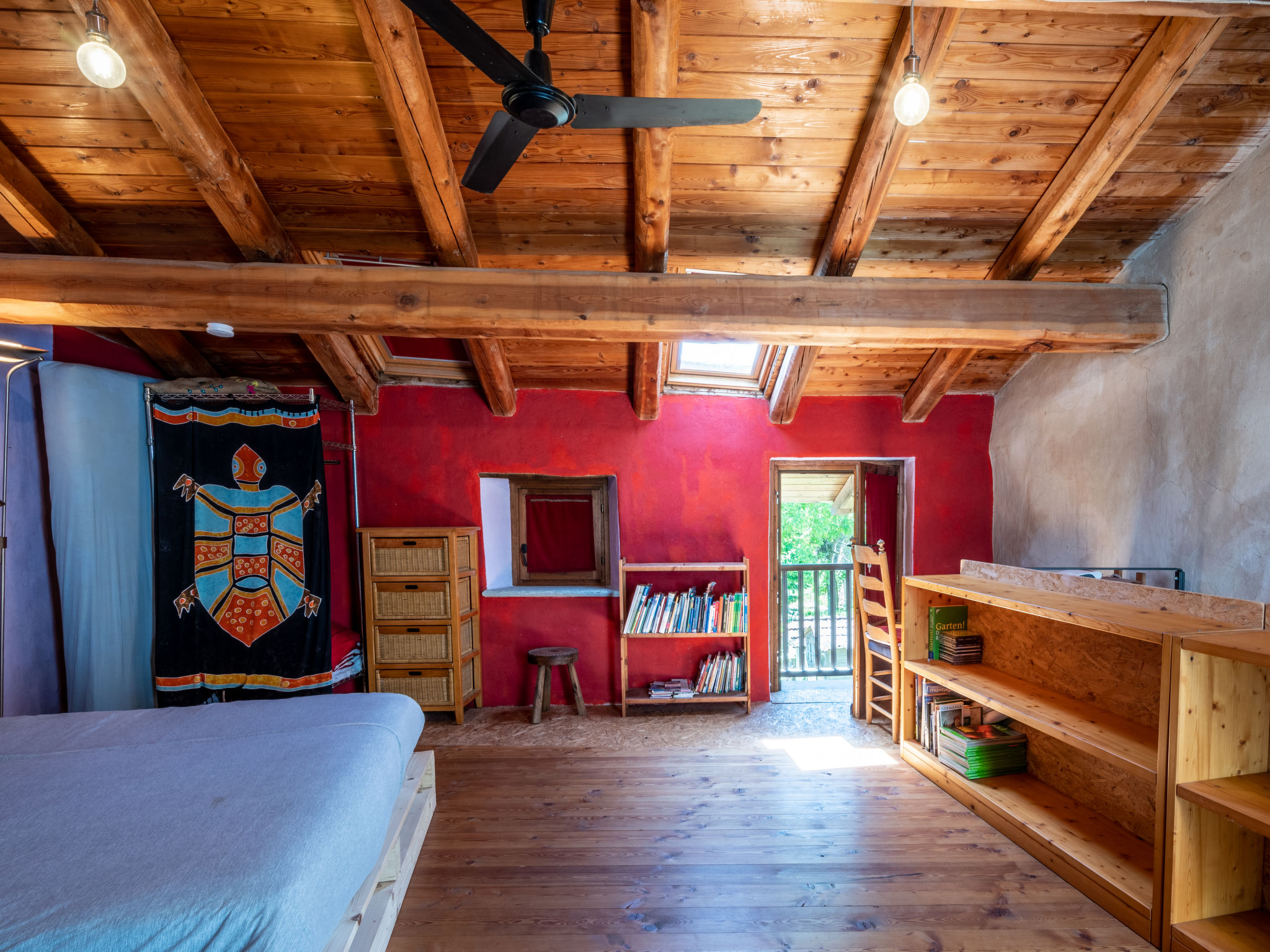 "Alexandra (VMI200)", 2-Zimmer-Haus 85 m2 auf 3 Stockwerken. Zweckmässig und gemütlich eingerichtet: Wohnküche (4 Kochplatten, Geschirrspüler, elektrische Kaffeemaschine) mit Esstisch. Ausgang zum Garten. Obergeschoss: Wohn-/Schlafzimmer mit 1 Doppeldiwanbett, Sat-TV und Heizofen. Ausgang zum Balkon. Bad/WC. Heizung nicht in allen Räumen. 2. Obergeschoss: (geländerlose Treppe) 1 abgeschrägtes Zimmer mit 1 Doppelbett. Ausgang zum Balkon. 2 Balkone, Terrasse, Garten. Terrassenmöbel, Balkonmöbel, Gartengrill, Liegestühle (2), Sitzplatz. Zur Verfügung: Waschmaschine, Babybett, Holz (extra). Internet (Wireless LAN). Bitte beachten: Nichtraucher-Haus. CIR00418700003