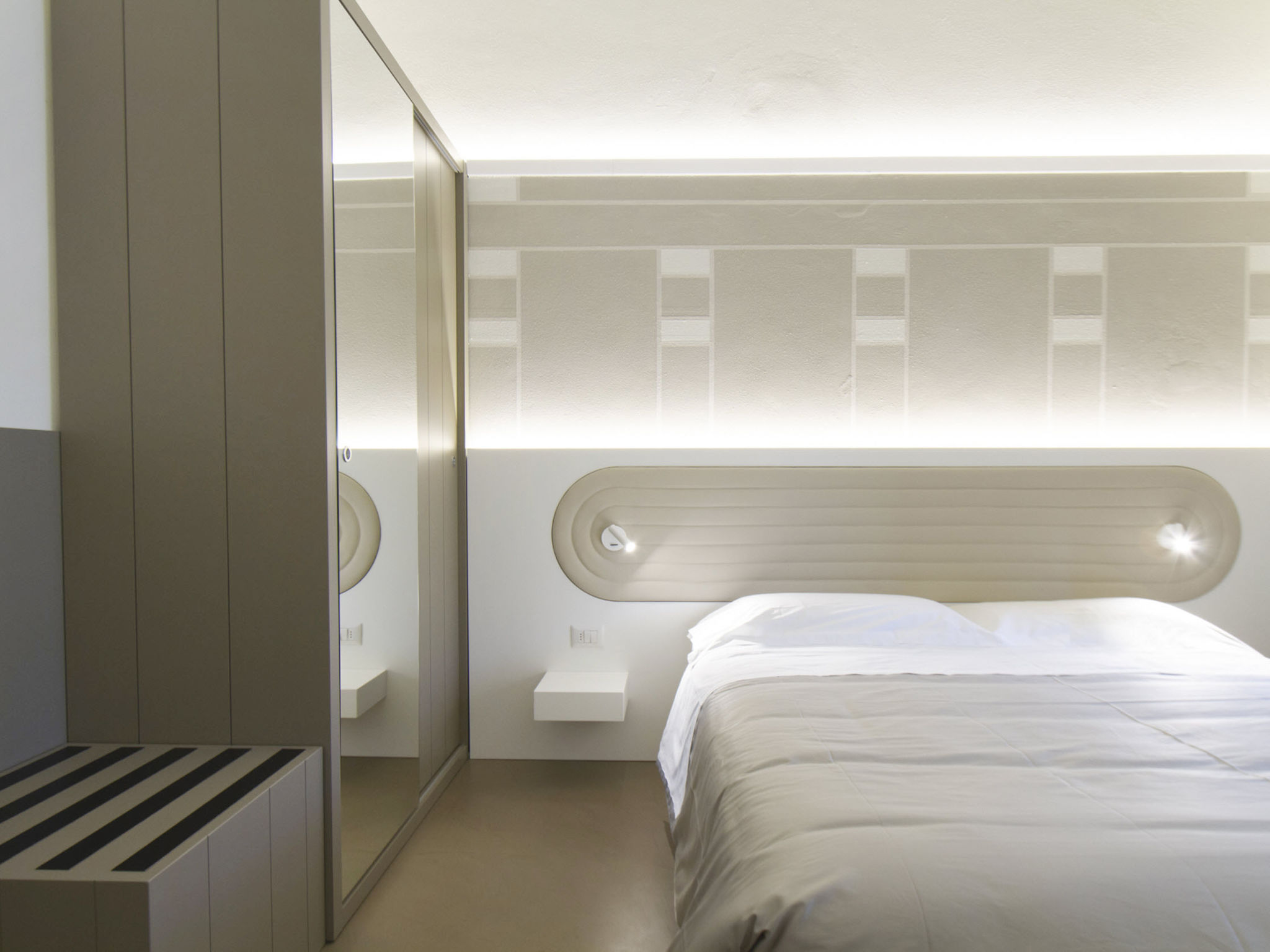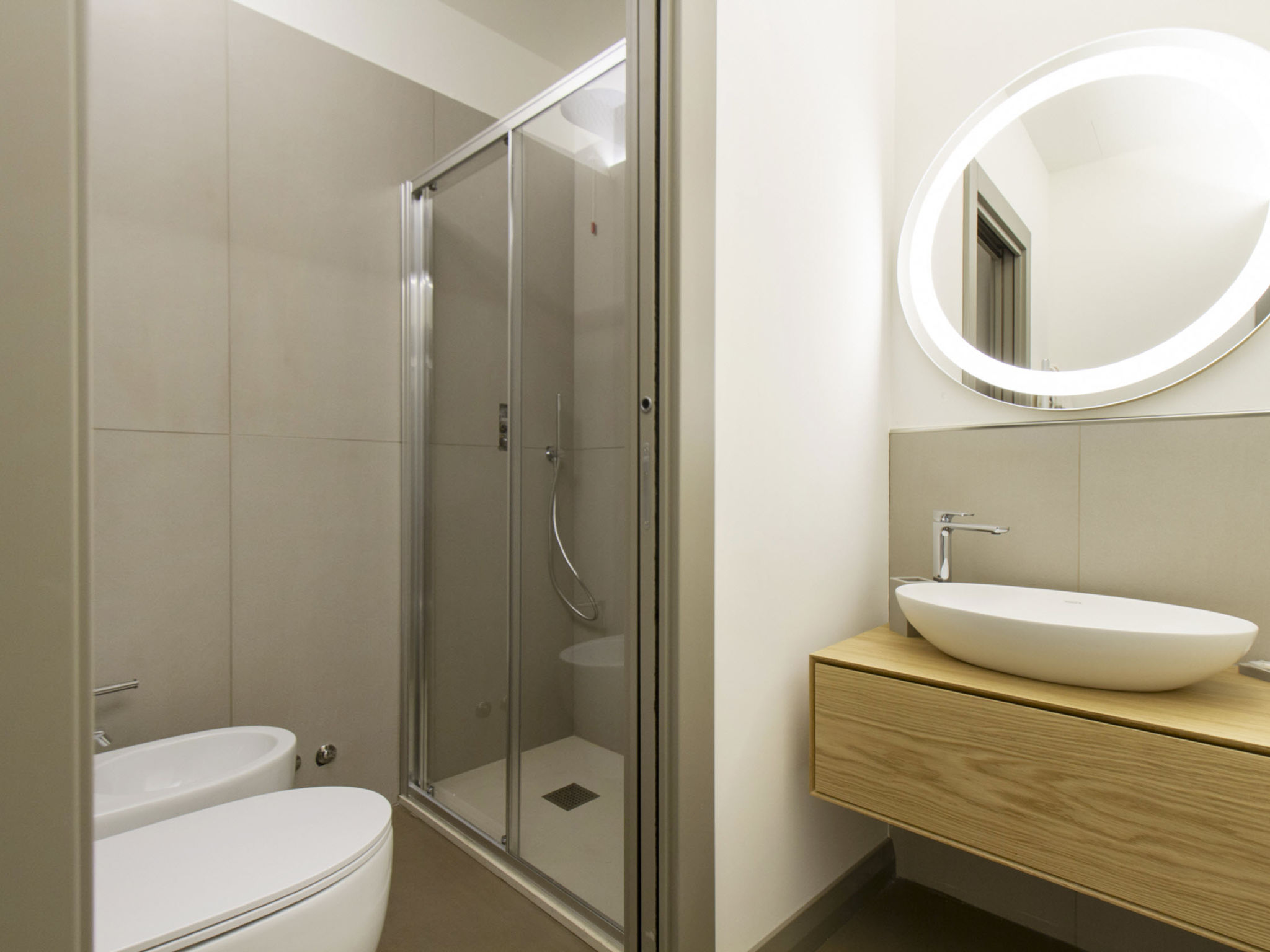 "Tipologia Trilo 05 pax", 3-Zimmer-Wohnung 70 bis 85 m2. Komfortabel und modern eingerichtet: Wohnzimmer mit 1 Diwanbett, Digital-TV und Klimaanlage. 1 Doppelzimmer mit Digital-TV und Klimaanlage. 1 Doppelzimmer mit Digital-TV und Klimaanlage. Kochnische (Geschirrspüler, 4 Induktionskochplatten, Mikrowelle). 2 Duschen/Bidet/WC. Zur Verfügung: Internet (Wireless LAN, gratis).