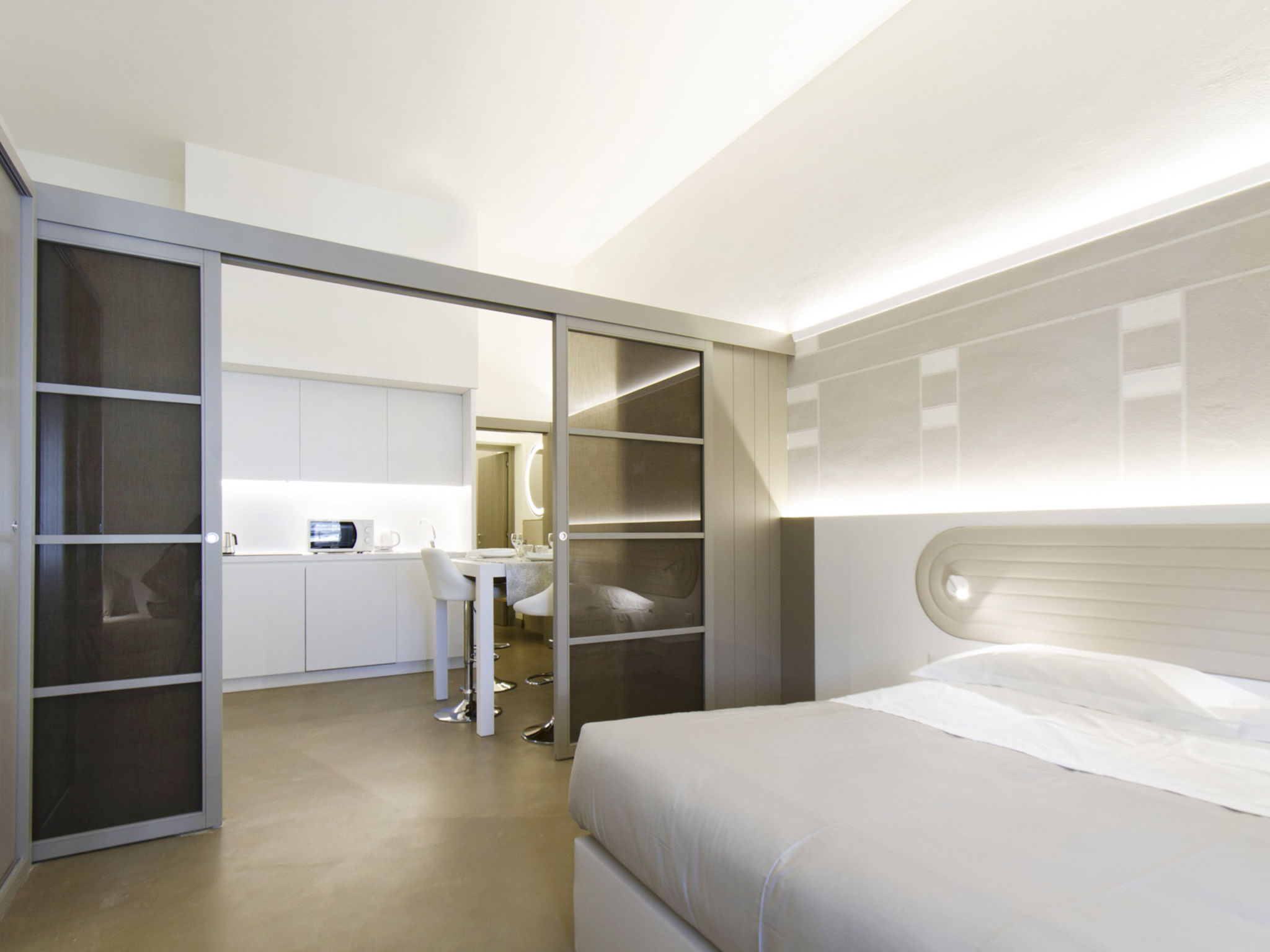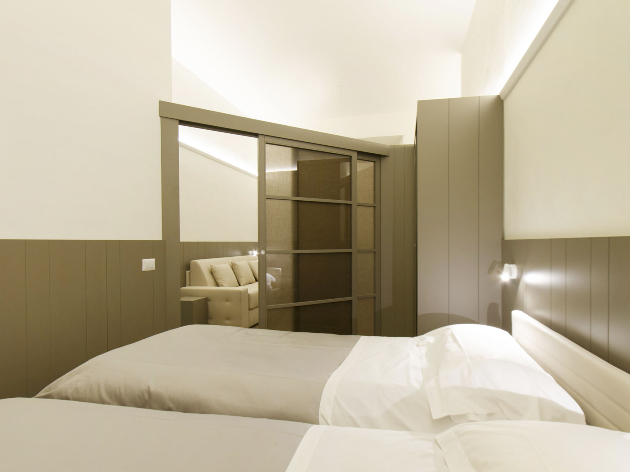 "Tipologia Trilo 06 pax", 3-Zimmer-Wohnung 70 bis 85 m2. Komfortabel und modern eingerichtet: Wohnzimmer mit 1 Doppeldiwanbett, Digital-TV und Klimaanlage. 1 Doppelzimmer mit Digital-TV und Klimaanlage. 1 Doppelzimmer mit Digital-TV und Klimaanlage. Kochnische (Geschirrspüler, 4 Induktionskochplatten, Mikrowelle). 2 Duschen/Bidet/WC. Zur Verfügung: Internet (Wireless LAN, gratis).
