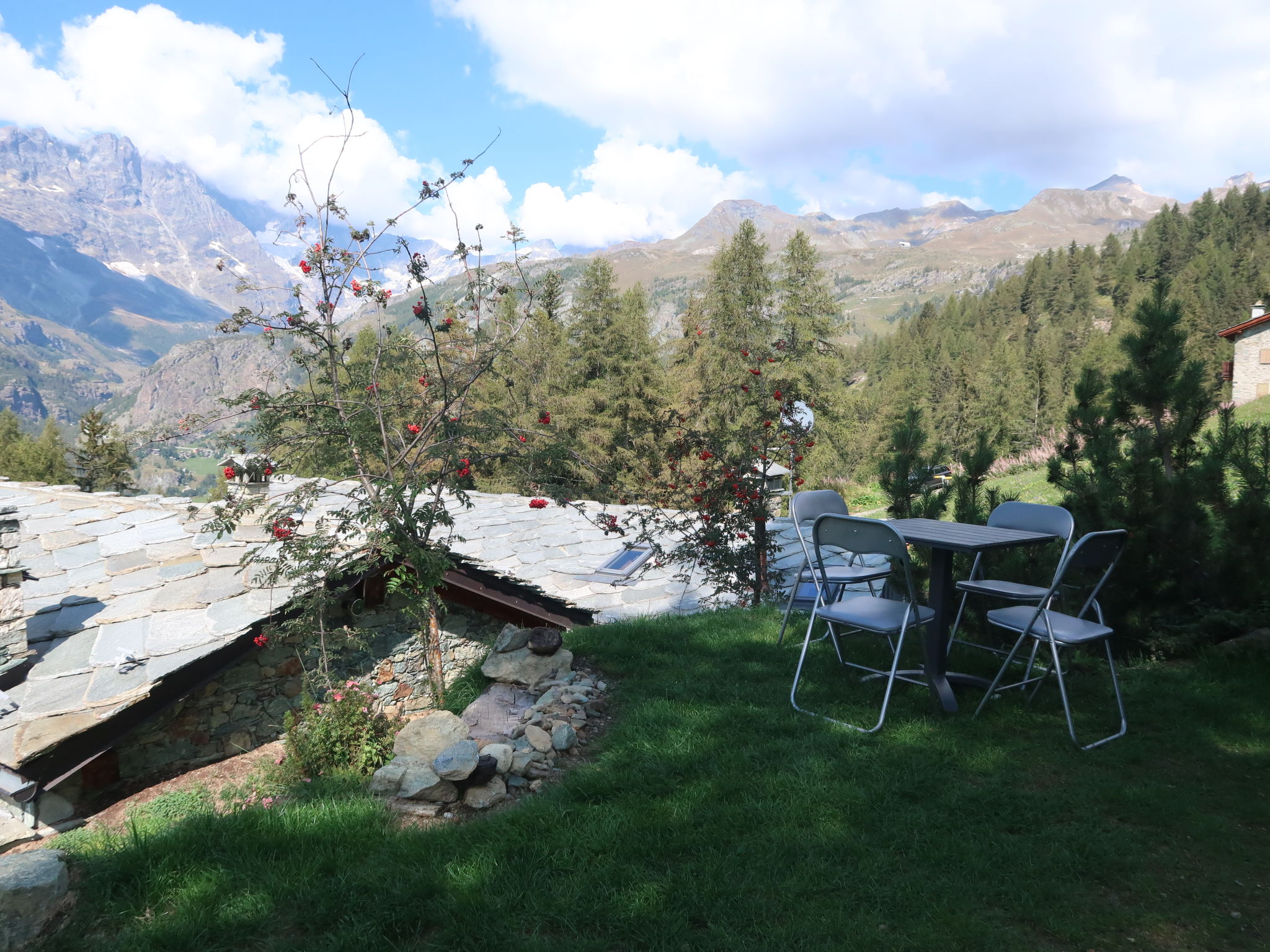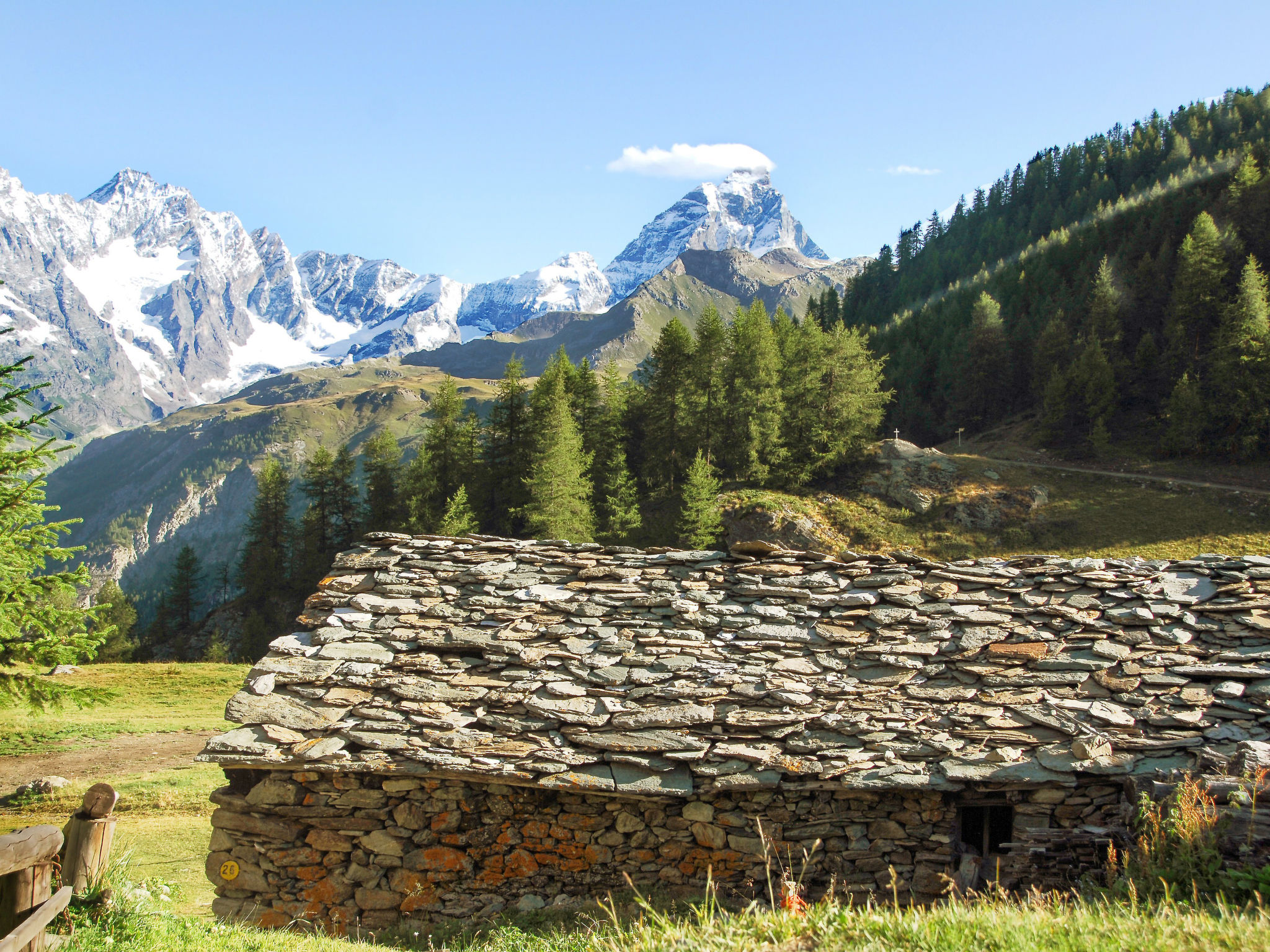 Alphütte "Ancienne Bergerie", 1'900 m.ü.M., aus dem 17. Jahrhundert, renoviert im Jahre 2015. 5 km vom Zentrum von Valtournenche, 15 km vom Zentrum von Breuil Cervinia, 25 km vom Zentrum von Chatillon/Saint Vincent, alleinstehende Lage am Hang. Zur Mitbenutzung: Grundstück, Terrassengarten (nicht eingezäunt), Wiese. Zufahrt (150 m Naturweg). Parkplatz beim Haus in 25 m im Winter 200 m. Supermarkt 5 km, Restaurant 3.2 km, Bar 1.6 km, Bahnstation "Chatillon" 25 km, Hallenbad 8 km. Golfplatz (18 Loch) 15 km, Gondelbahn 7 km, Skipisten 3.5 km. Wandergebiete: Alta Via n°1 della Valle d´Aosta 50 m.