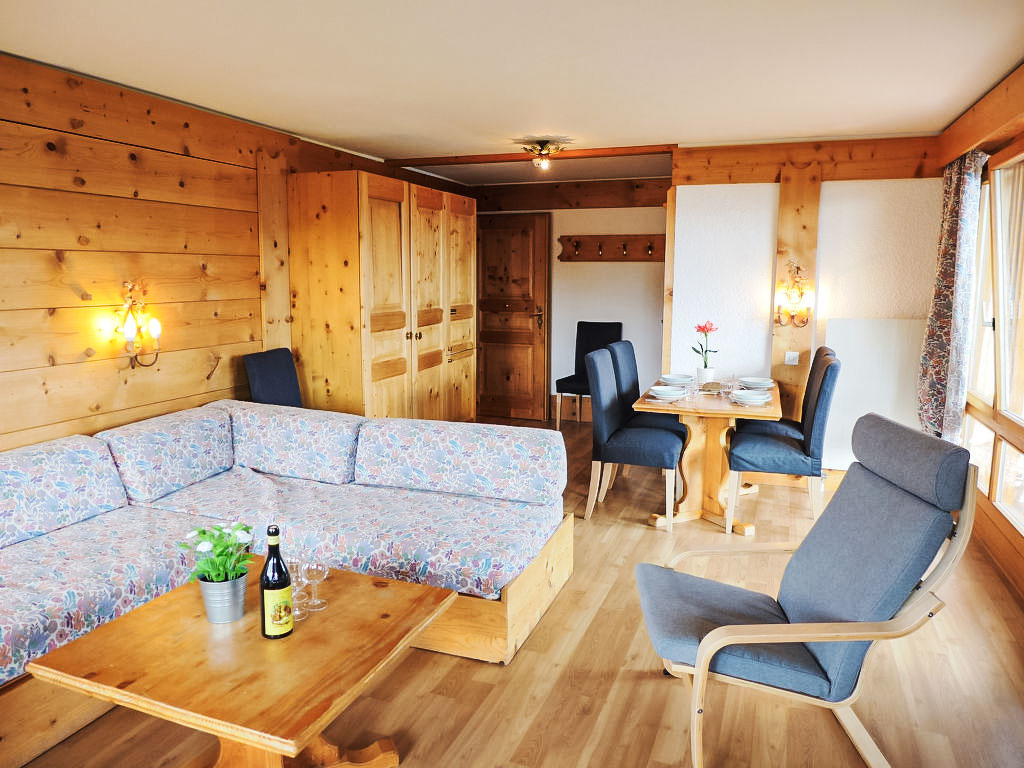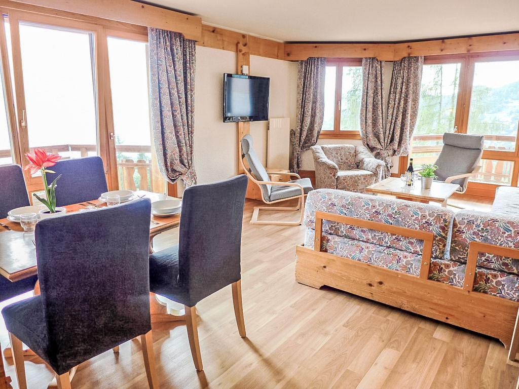 "Le Bristol A20", 3-Zimmer-Wohnung 77 m2 im 2. Stock. Geräumig, komfortabel und schön eingerichtet: Wohn-/Esszimmer mit 2 Diwanbetten (90 cm), Esstisch, Bad/WC und TV (Flachbildschirm). Ausgang zum Balkon, Richtung Süden und Richtung Westen. 1 Doppelzimmer mit 1 Doppelbett (140 cm), Dusche/WC. Ausgang zum Balkon, Richtung Süden. 1 Zimmer mit 2 Betten (90 cm), Bad/WC. Ausgang zum Balkon, Richtung Westen. Kochnische im Eingang (2 Kochplatten, Backofen, Geschirrspüler, Mikrowelle). Parkettböden. Grosser Balkon 20 m2, Südlage und Westlage. Balkonmöbel. Sehr schöne Panoramasicht auf die Berge und das Tal. Zur Verfügung: Internet (Wireless LAN, gratis). Bitte beachten: Nichtraucher-Unterkunft. Rauchmelder.