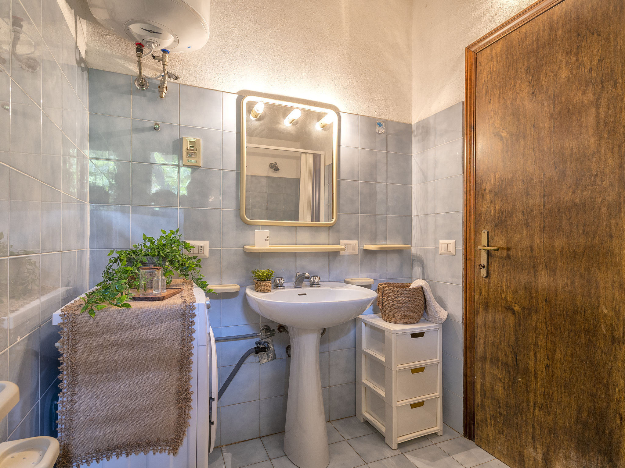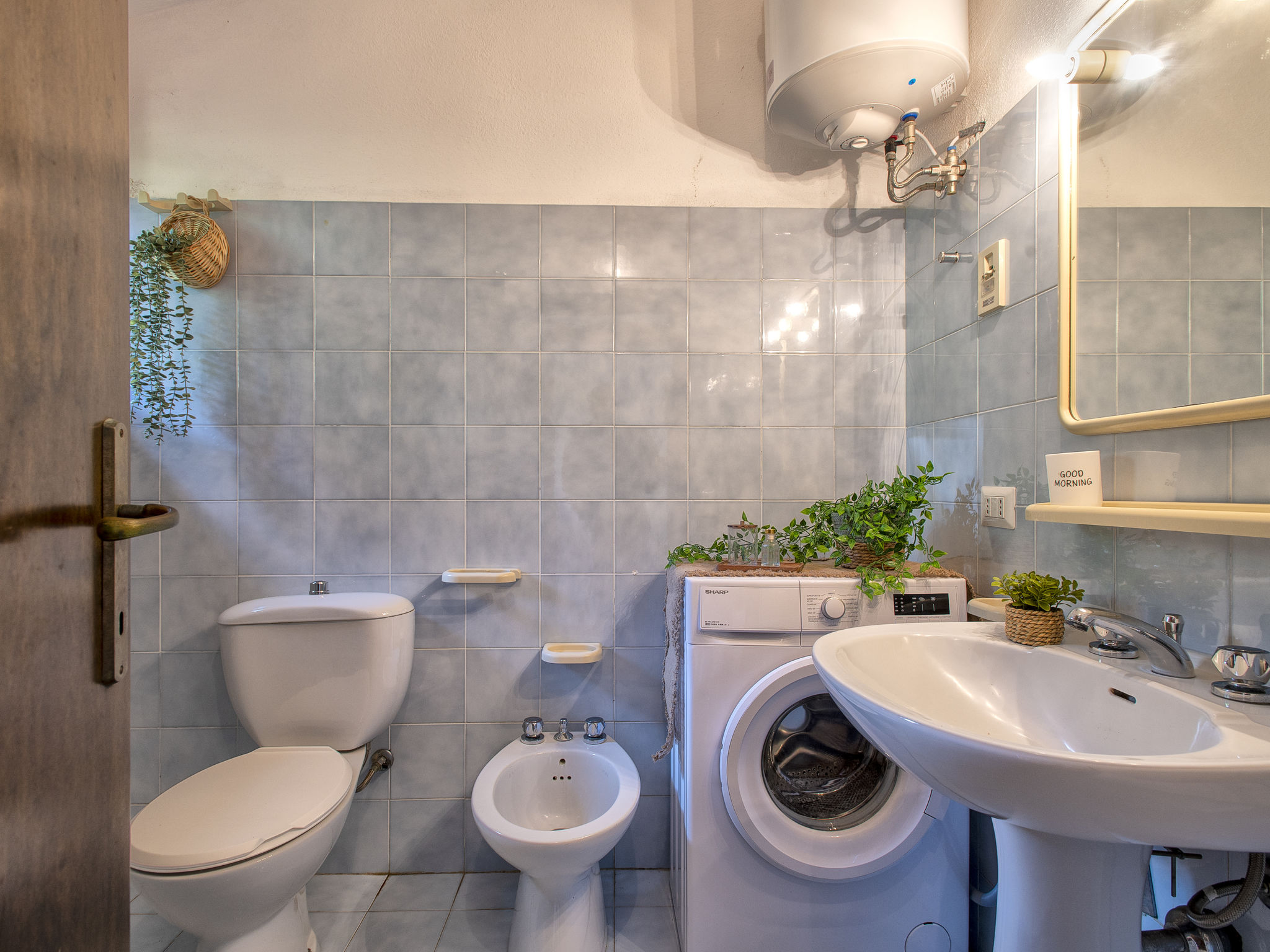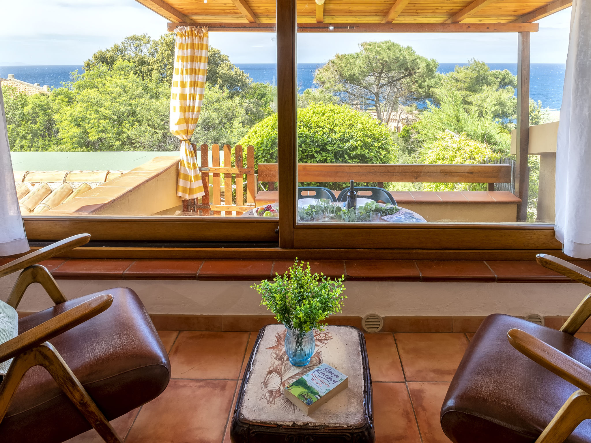 3-Zimmer-Wohnung 60 m2, im Erdgeschoss. Einfach und komfortabel eingerichtet: Wohn-/Esszimmer mit Panoramafenster. Ausgang zur Veranda. 1 Doppelzimmer. 1 kleines Zimmer mit 1 Bett und 1 Ausziehbett. Kochnische (4 Kochplatten, Mini-Backofen, Toaster, Wasserkocher). Dusche/Bidet/WC. Terrasse überdacht, kleiner Garten. Terrassenmöbel. Eingeschränkte Sicht auf das Meer und den Garten. Zur Verfügung: Waschmaschine, Haartrockner. Bitte beachten: eigener Eingang. IUN:Q2264