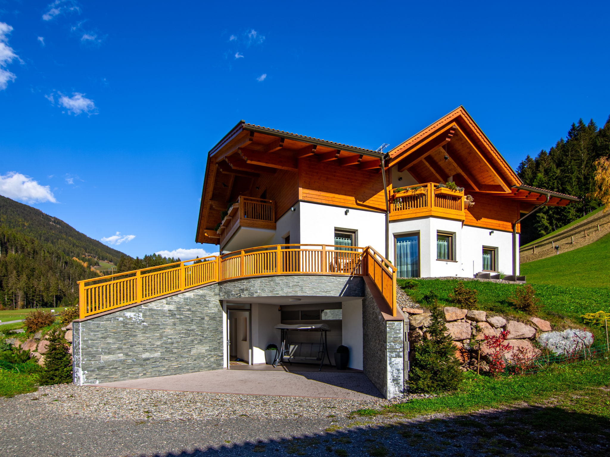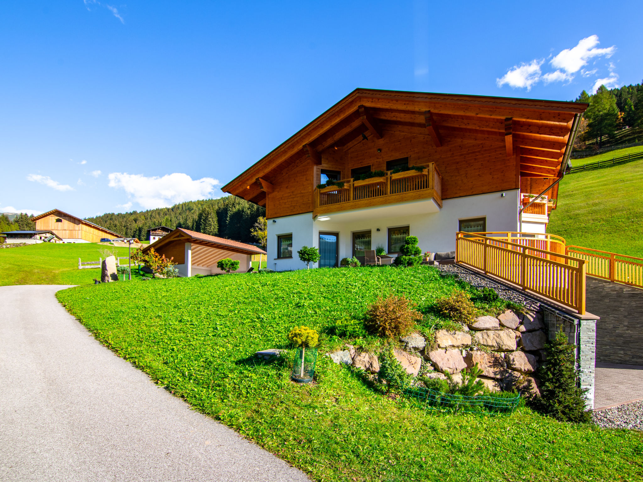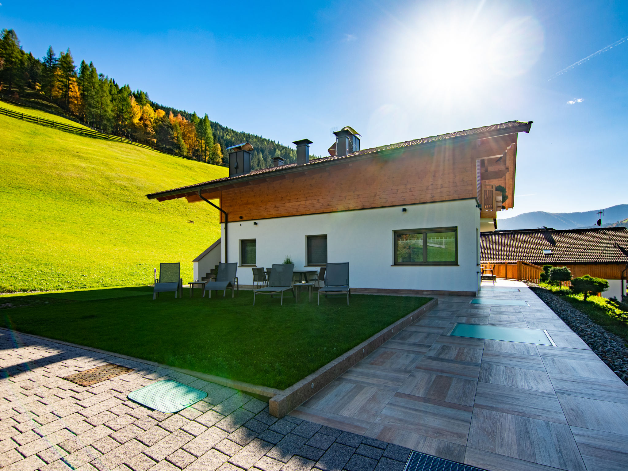 Der SPIEGLHOF, ein sogenanntes Klimahaus mit 3 Ferienwohnungen, steht in sonniger Lage, mit Blick auf Meran 2000, im Ortsteil Trienbachberg im unteren Durnholzertal, einem Seitental des Sarntal. Nächste Einkaufsmöglichkeit in Astfeld 2 km. Supermarkt und Freibad in Sarnthein 6 km. Bushaltestelle (Linie 152 Sarnthein-Reinswald-Durnholz) ca. 400 m. Bergbahn Reinswald 7 km. Reiterhof 1 km. Zum Durnholzer See mit schönem Spazierweg und Angelmöglichkeit 12 km. 9-Loch-Golfplatz in Eppan 32 km. Offenes, ca. 3 ha großes Rasengrundstück in leichter Hanglage. Die Besitzer wohnen im Nachbarhaus und betreiben eine Biolandwirtschaft. 1 überdachter Parkplatz/Wohnung (Carport) beim Haus. Abstellraum für Fahrräder. Brötchenservice. IT3958.602.1 und IT3958.602.2 haben jeweils eine teilüberdachte Terrasse mit Mobiliar, 2 Liegestühle und Sonnenschirm. Zu IT3958.602.3 gehören 2 überdachte Balkone, einer davon mit Mobiliar, 2 Liegestühlen und Sonnenschirm. Transportabler Grill zur gemeinsamen Nutzung. Im Untergeschoss jeweils zur gemeinsamen Nutzung aller Gäste ein Wellnessbereich mit Biosauna, finnische Sauna, Infrarotkabine (für 2 Personen), Dampfbad, Erlebnisdusche, Ruheraum, Umkleidekabine, Fitnessraum, Tischtennis, Tischfußball und WC (€ 30 pro Wohnung und Nutzung. Absprache und Bezahlung am Ort). Die Wohnungen sind ansprechend eingerichtet und sehr gut ausgestattet. Fliesenböden. Sat-TV. Radio. Internetzugang (WLAN, inklusive). Fliegengitter. Safe. Fußbodenheizung. In IT3958.602.3 Waschmaschine, für IT3958.602.1 und IT3958.602.2 Gemeinschaftswaschmaschine/-trockner (gegen Bezahlung) und Bügeleisen/-brett im Untergeschoss. Hinweise: Rauchen ist in den Wohnungen nicht gestattet. Extra: Im Preis enthalten ist die 'Bozen Card Plus', die unseren Gästen die kostenlose Nutzung aller öffentlichen Verkehrsmittel in Südtirol, einen kostenlosen Eintritt in eines der über 90 Museen und Ausstellungen sowie die kostenlose Teilnahme am Wochenprogramm des örtlichen Tourismusvereins ermöglicht.