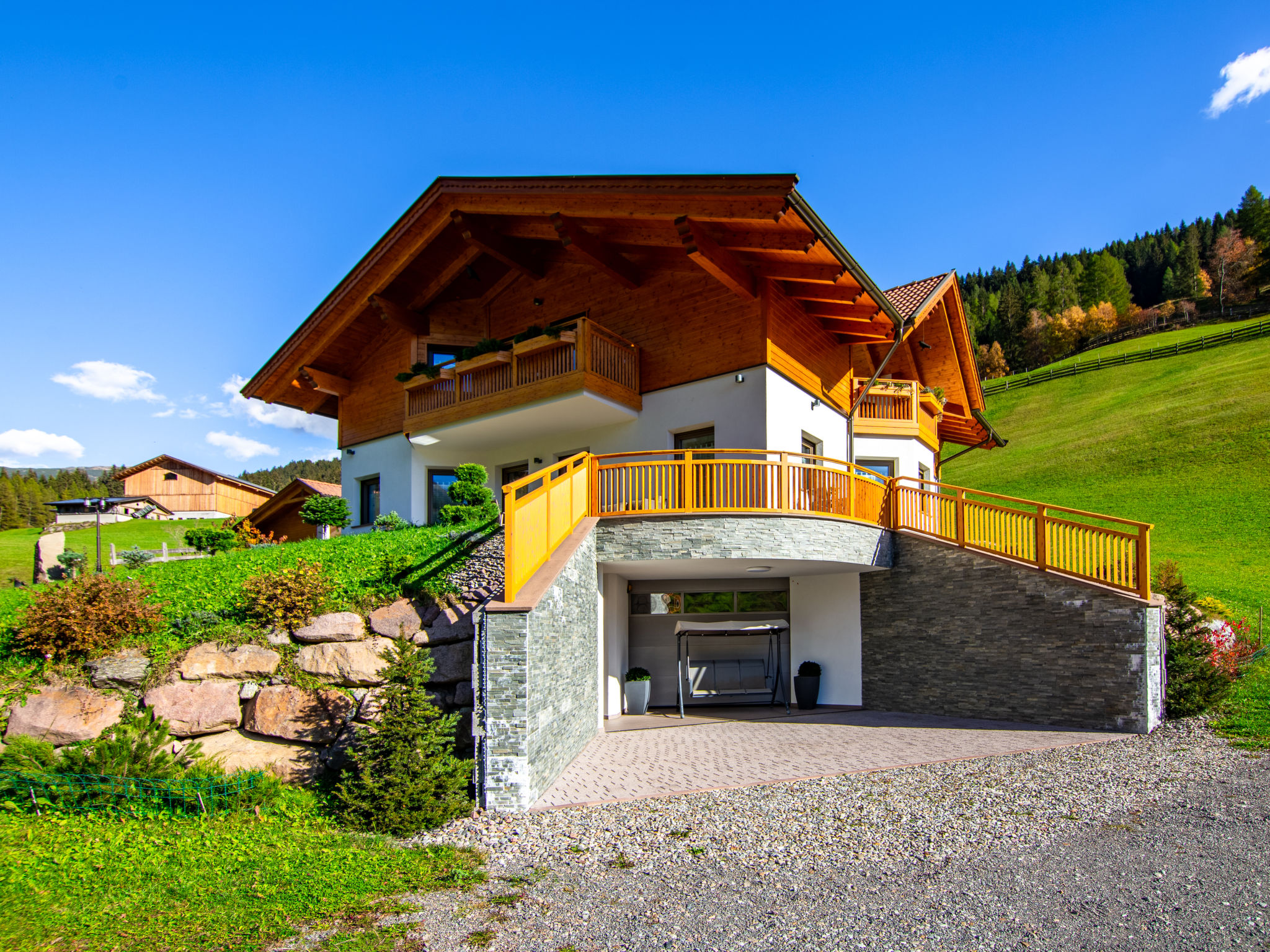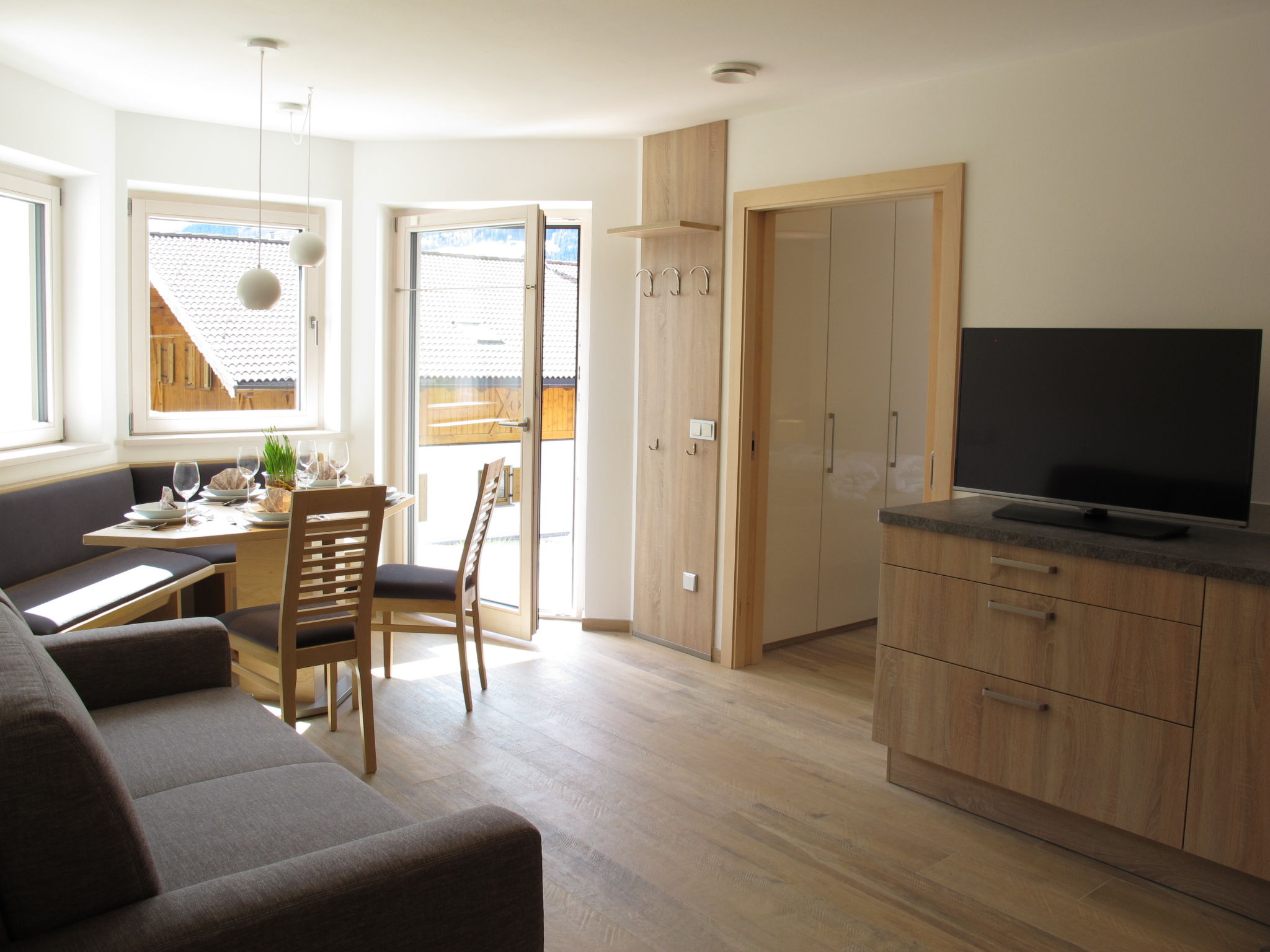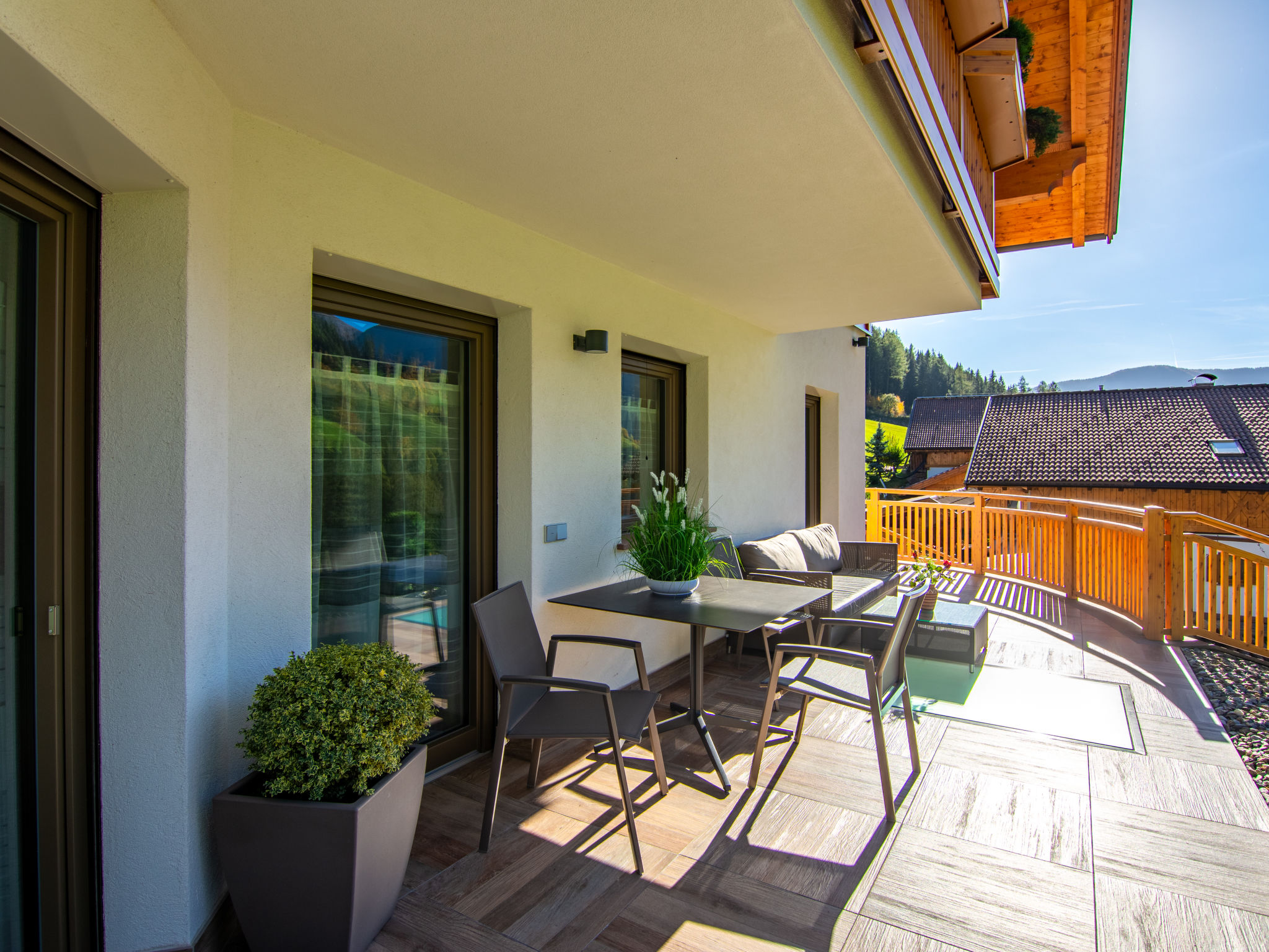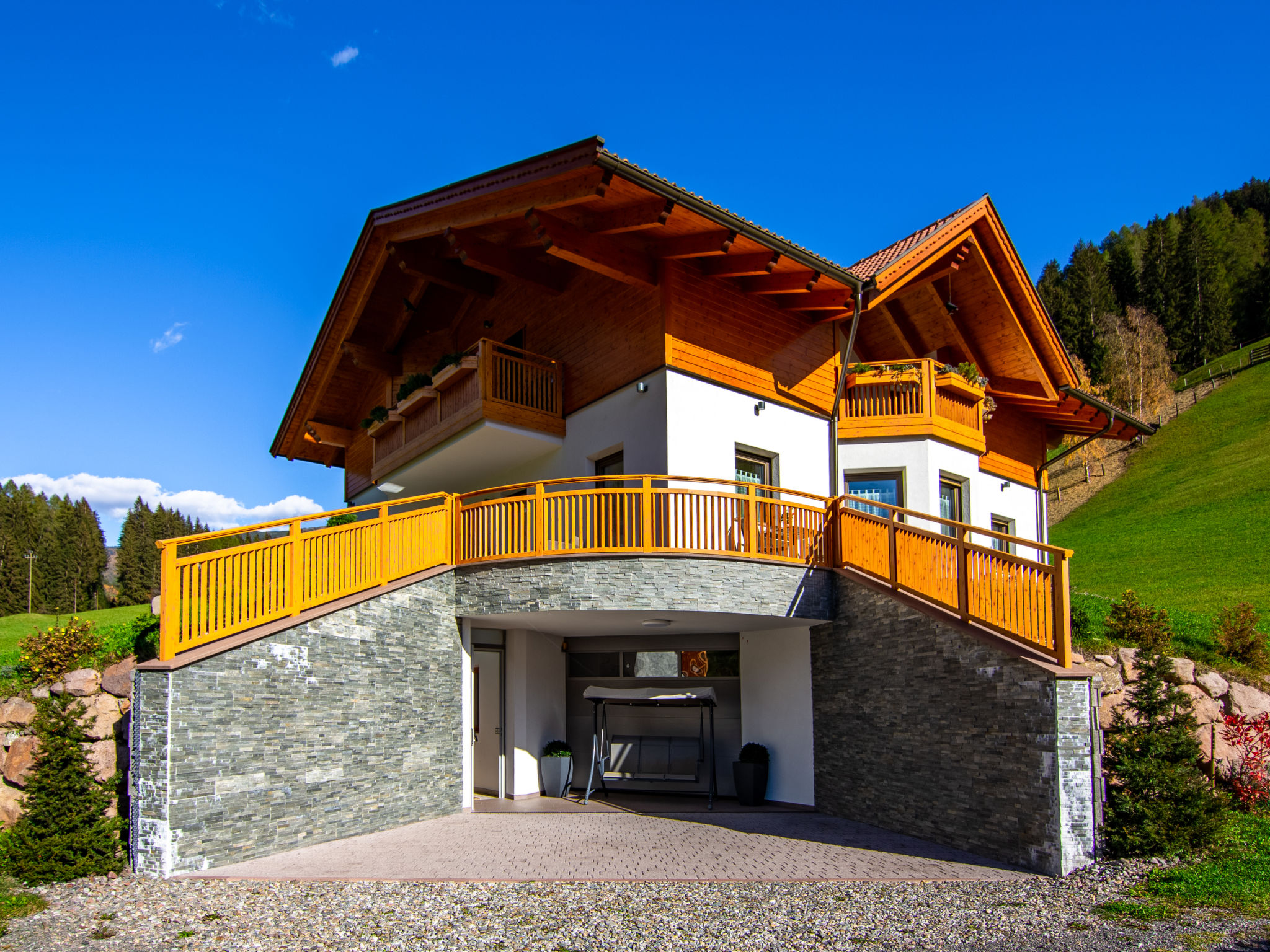 Der SPIEGLHOF, ein sogenanntes Klimahaus mit 3 Ferienwohnungen, steht in sonniger Lage, mit Blick auf Meran 2000, im Ortsteil Trienbachberg im unteren Durnholzertal, einem Seitental des Sarntal. Nächste Einkaufsmöglichkeit in Astfeld 2 km. Supermarkt und Freibad in Sarnthein 6 km. Bushaltestelle (Linie 152 Sarnthein-Reinswald-Durnholz) ca. 400 m. Bergbahn Reinswald 7 km. Reiterhof 1 km. Zum Durnholzer See mit schönem Spazierweg und Angelmöglichkeit 12 km. 9-Loch-Golfplatz in Eppan 32 km. Offenes, ca. 3 ha großes Rasengrundstück in leichter Hanglage. Die Besitzer wohnen im Nachbarhaus und betreiben eine Biolandwirtschaft. 1 überdachter Parkplatz/Wohnung (Carport) beim Haus. Abstellraum für Fahrräder. Brötchenservice. IT3958.602.1 und IT3958.602.2 haben jeweils eine teilüberdachte Terrasse mit Mobiliar, 2 Liegestühle und Sonnenschirm. Zu IT3958.602.3 gehören 2 überdachte Balkone, einer davon mit Mobiliar, 2 Liegestühlen und Sonnenschirm. Transportabler Grill zur gemeinsamen Nutzung. Im Untergeschoss jeweils zur gemeinsamen Nutzung aller Gäste ein Wellnessbereich mit Biosauna, finnische Sauna, Infrarotkabine (für 2 Personen), Dampfbad, Erlebnisdusche, Ruheraum, Umkleidekabine, Fitnessraum, Tischtennis, Tischfußball und WC (€ 30 pro Wohnung und Nutzung. Absprache und Bezahlung am Ort). Die Wohnungen sind ansprechend eingerichtet und sehr gut ausgestattet. Fliesenböden. Sat-TV. Radio. Internetzugang (WLAN, inklusive). Fliegengitter. Safe. Fußbodenheizung. In IT3958.602.3 Waschmaschine, für IT3958.602.1 und IT3958.602.2 Gemeinschaftswaschmaschine/-trockner (gegen Bezahlung) und Bügeleisen/-brett im Untergeschoss. Hinweise: Rauchen ist in den Wohnungen nicht gestattet. Extra: Im Preis enthalten ist die 'Bozen Card Plus', die unseren Gästen die kostenlose Nutzung aller öffentlichen Verkehrsmittel in Südtirol, einen kostenlosen Eintritt in eines der über 90 Museen und Ausstellungen sowie die kostenlose Teilnahme am Wochenprogramm des örtlichen Tourismusvereins ermöglicht.