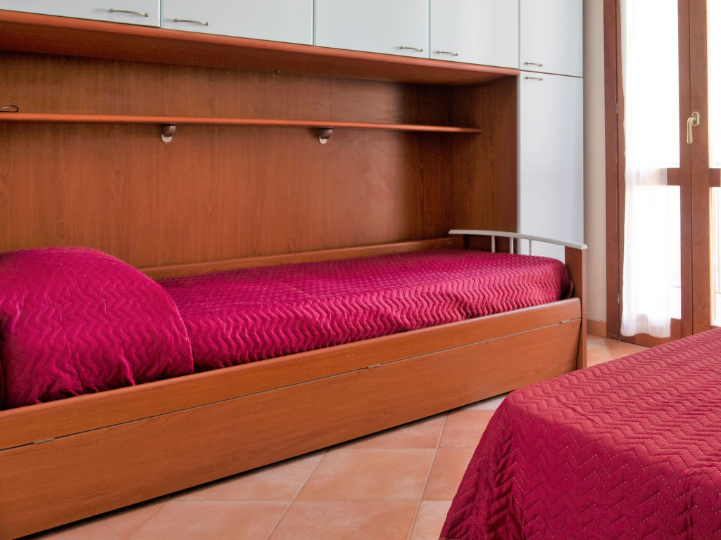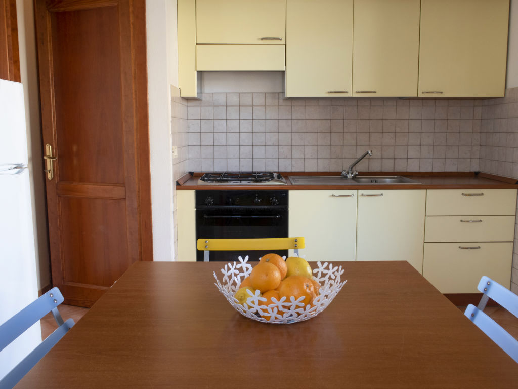 "Comfort", 3-Zimmer-Wohnung. Zweckmässig und komfortabel eingerichtet: Wohn-/Esszimmer mit 1 Doppeldiwanbett und TV. Ausgang zum Balkon. 1 Doppelzimmer. 1 Zimmer mit 2 Betten. Kochnische (4 Kochplatten, Mikrowelle, Tiefkühler). Dusche/Bidet/WC. Zur Verfügung: Waschmaschine (extra).