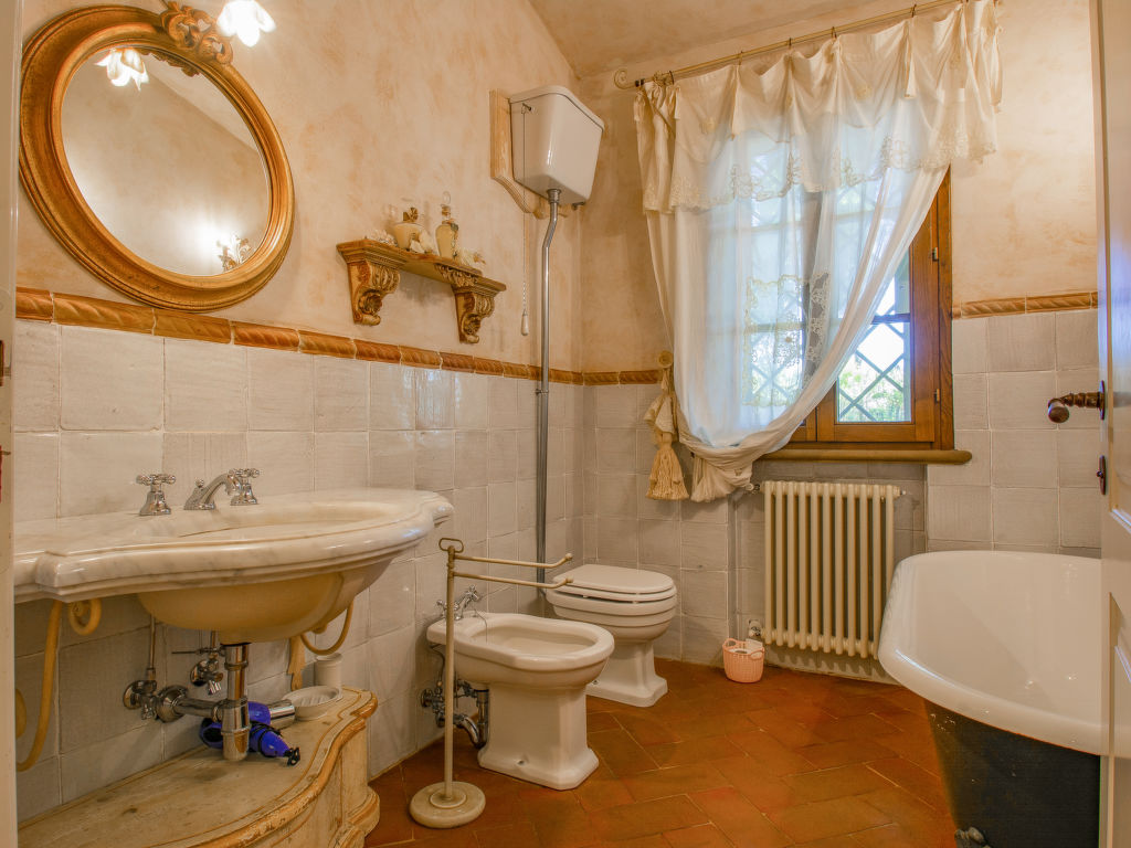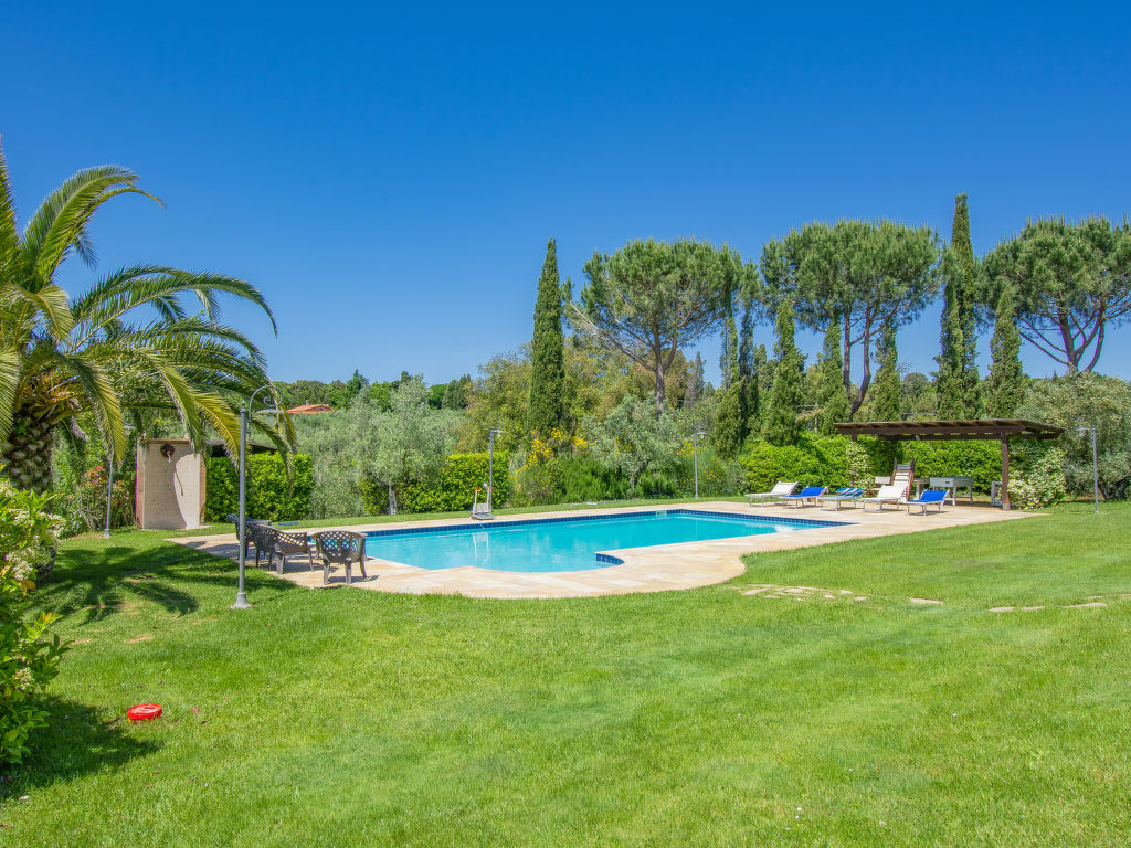 Das Ferienhaus "Villa Rosa" liegt in der Ebene zwischen Cecina (6km) und Bolgheri (11km), umgeben von Wiesen und Olivenhainen, in einem grosszügigen Garten mit Palmen, Olivenbäumen, Zypressen und Lavendelbüschen, nur wenige Kilometer vom Meer entfernt. Zum Besitz gehört ein ca. 1600 m² umzäuntes Grundstück, von dem der Blick bis hin zum Meer reicht. Schönes, alleinstehendes Haus "Villa Rosa", auf 2 Stockwerken, umgeben von Bäumen und Feldern. Ruhige, sonnige Lage, 6 km vom Meer. Zur Alleinbenutzung: wunderschöner Garten zum Entspannen, Schwimmbad (8 x 12 m, 22.05.-24.09.) mit Salzelektrolyse-Reinigungssystem. WC im Poolbereich, Aussendusche, Sprudelbad, Pergola, Poolpflege durch den Besitzer/Gärtner. Im Hause: Wireless LAN, Zentralheizung, Waschmaschine. Zufahrt (200 m Naturweg). Parkplatz (für 3 Autos, überdacht). Einkaufsgeschäft 5 km, Supermarkt 5 km, Restaurant 4 km, Bahnstation "Cecina" 7 km, Thermalbad "Donoratico" 18 km. Jacht-Hafen 22 km. Nahe gelegene Sehenswürdigkeiten: Pisa 70 km, Lucca 90 km, Firenze 120 km.