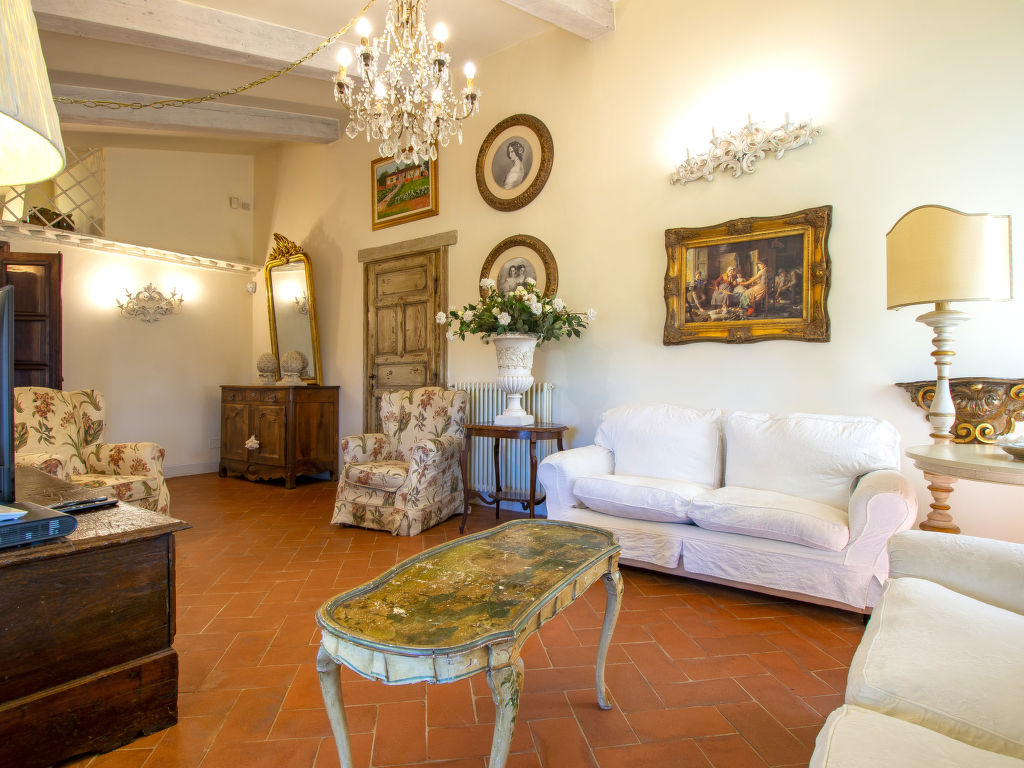 9-Zimmer-Haus 200 m2 auf 2 Stockwerken, im Erdgeschoss. Geräumig und hell, schön und geschmackvoll eingerichtet: grosses Wohnzimmer mit Panoramafenster mit Kabel-TV und Flachbildschirm. Esszimmer mit Panoramafenster mit Esstisch. Esszimmer mit Wintergarten mit Schwedenofen. 1 Zimmer mit 1 Doppelbett, sep. WC und Kabel-TV. 1 Zimmer mit 2 Betten (80 cm, Länge 195 cm). 1 Zimmer mit 1 Bett (140 cm, Länge 195 cm). Grosse Küche (Backofen, Geschirrspüler, 4 Flammen, Toaster, Wasserkocher, Tiefkühler, elektrische Kaffeemaschine). Bad/Dusche/Bidet/WC. Unteres Geschoss: grosses Wohn-/Esszimmer mit offenem Kamin und Kabel-TV (Flachbildschirm). 2 Zimmer, jedes Zimmer mit 1 Doppelbett. Offene Küche (Backofen, Geschirrspüler, 4 Glaskeramikherd Platten, Mikrowelle). Bad/Dusche/Bidet/WC. Natursteinböden. Komfortable Einrichtung im Landhausstil. Grosse Terrasse 120 m2. Terrassenmöbel, Gartengrill. Zur Verfügung: Bügeleisen, Kinderhochstuhl, Haartrockner. Bitte beachten: geeignet für Familien. Nichtraucher-Haus. Maximal 1 Haustier/Hund erlaubt. Im Untergeschoss gibt es höherliegende Fenster in allen Räumen.