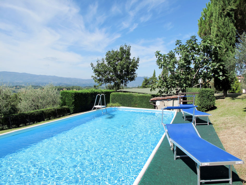 Landsitz "Le Masse". Mietobjekt bestehend aus Haupt- und Nebengebäude, 1.3 km vom Zentrum von Castelfranco di Sopra, 40 km vom Zentrum von Firenze, 40 km vom Zentrum von Arezzo, sonnige Lage. Zur Mitbenutzung: naturbelassenes Grundstück 20'000 m2, Garten (nicht eingezäunt), Wiese, Obstgarten, Aufstellpool (9 x 4 m, saisonale Verfügbarkeit: 10.Mai.-30.Sep. Öffnungszeiten Schwimmbad: 08:30-19:30). Im Hause: Waschmaschine (zur Mitbenutzung, extra). Supermarkt 1.3 km, Bar 1.3 km. Bitte beachten: Der Besitzer wohnt auf dem gleichen Grundstück.