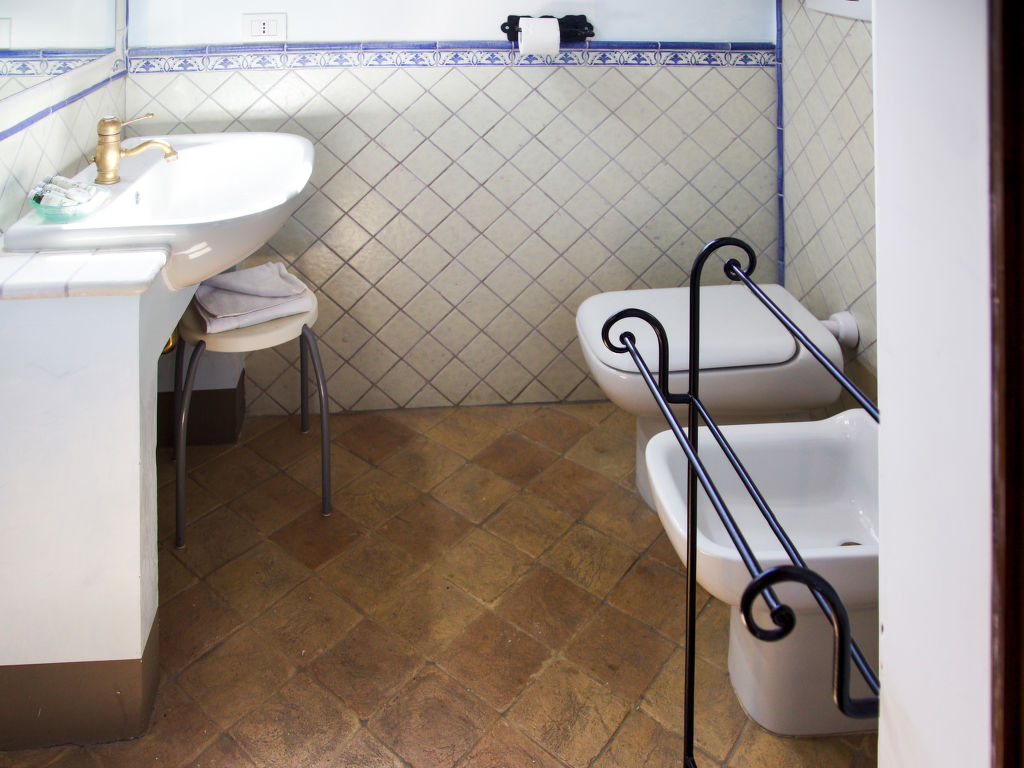 "Roseto", 5-Zimmer-Haus 560 m2 auf 2 Stockwerken. Rustikal und geschmackvoll eingerichtet: Wohnzimmer mit offenem Kamin, TV, Flachbildschirm, CD und Stereoanlage. 1 Doppelzimmer mit Dusche/WC. 1 Doppelzimmer mit Dusche/Bidet/WC und TV (Flachbildschirm). Offene Küche (Backofen, Geschirrspüler, 5 Flammen, Toaster, Wasserkocher, Mikrowelle, Tiefkühler, elektrische Kaffeemaschine) mit Esstisch, offenem Kamin. Ausgang zum Garten, zur Loggia. Sep. WC. Obergeschoss: 1 Doppelzimmer mit offenem Kamin und Dusche/WC. 2 Doppelzimmer, jedes Zimmer mit Dusche/WC. 2. Obergeschoss: (steile Treppe). Wohnküche (2 Kochplatten, Backofen, Toaster, Wasserkocher, Tiefkühler, elektrische Kaffeemaschine) mit Esstisch, 1 Diwanbett (120 cm), TV, CD und Stereoanlage. G-Heizung, Klimaanlage. 2 Terrassen überdacht. Terrassenmöbel, Gartengrill. Zur Verfügung: Waschmaschine, Bügeleisen, Fliegengitter. Internet (Wireless LAN, gratis). Bitte beachten: Nichtraucher-Haus.