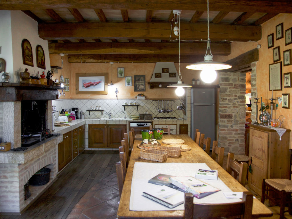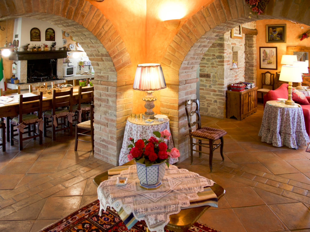 Schöner, alleinstehender, komfortabler Landsitz "Roseto", umgeben von Bäumen, Wiesen und Feldern. 3 Häuser im Ferienresort. 4 km vom Zentrum von Collazzone, 14 km vom Zentrum von Todi, 40 km vom See, im Grünen. Zur Alleinbenutzung: Grundstück 2'000 m2 mit Rasen und Bäumen, Liegewiese, Schwimmbad (12 x 6 m, 150 cm tief, 02.05.-26.09.). Aussendusche. In der Anlage: Sauna, Fitnessraum (extra). Massage (extra). Dampfbad (extra). Sprudelbad (extra). Fahrradverleih. Koch möglich (extra). Parkplatz (für 2 Autos). Supermarkt 2.5 km. Bekannte Seen in der Umgebung sind gut erreichbar: Lago Trasimeno 40 km. Bitte beachten: Fahrzeug empfohlen. Geeignet für Events. Der Besitzer akzeptiert keine Jugendgruppen. Ab Hof Verkauf von bäuerlichen Produkten. Ferienwohnung Ref. 120.1,130.1 befindet sich auf dem gleichen Grundstück.