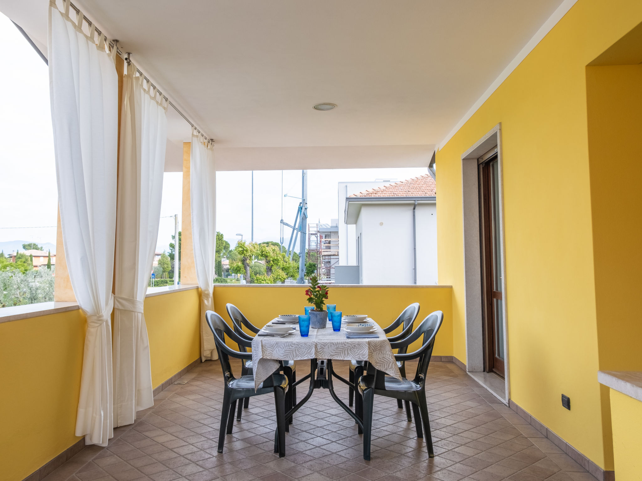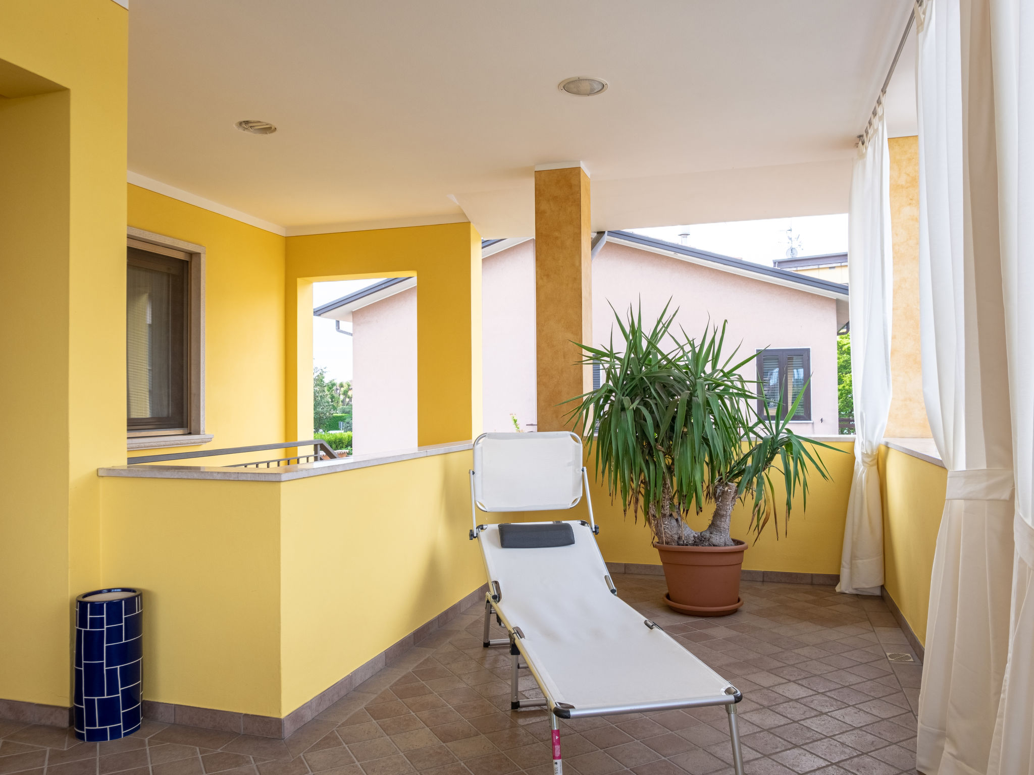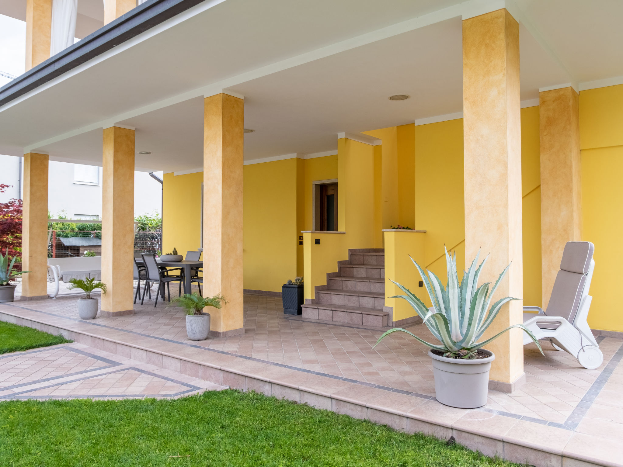 2-Zimmer-Wohnung 55 m2, im Obergeschoss. Komfortabel eingerichtet: 1 Doppelzimmer mit TV. Grosse Küche (4 Kochplatten, Backofen, Toaster, Wasserkocher, Mikrowelle, Tiefkühler, elektrische Kaffeemaschine) mit 1 Diwanbett und Sat-TV. Ausgang zur Loggia. Dusche/Bidet/WC. G-Heizung, Klimaanlage (extra). Grosse Terrasse 20 m2, überdacht. Terrassenmöbel. Zur Verfügung: Internet (Wireless LAN). Bitte beachten: eigener Eingang. Es werden keine zusätzlichen Gebühren vor Ort fällig, ausgenommen der örtlichen Kurtaxe. 017179-CNI-00357