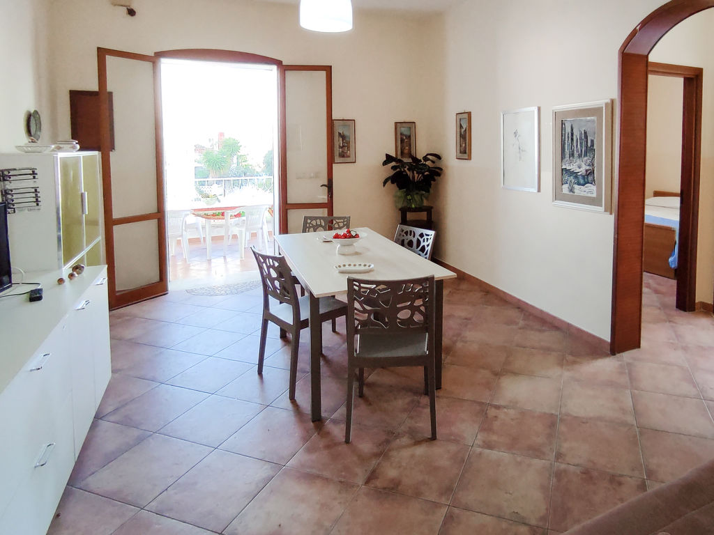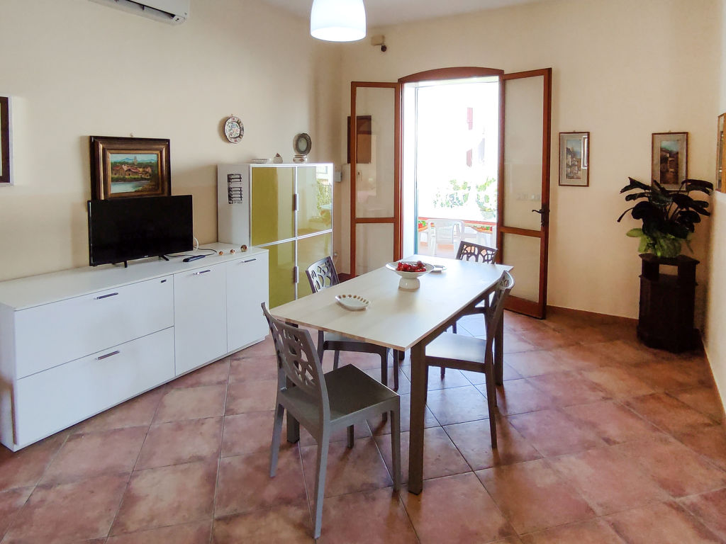 3-Zimmer-Wohnung 75 m2 im 1. Stock. Einfach und zweckmässig eingerichtet: Wohn-/Esszimmer mit 1 Diwanbett, Esstisch und Klimaanlage. 1 Doppelzimmer. 1 Zimmer mit 3 Betten. Kleine Küche (4 Kochplatten, Backofen) mit kleinem Esstisch. Dusche/Bidet/WC. Balkonmöbel, Gartengrill. Zur Verfügung: Haartrockner. Parkplatz beim Haus. Geeignet für Familien. 1 Haustier/Hund erlaubt. LE0703191000003399