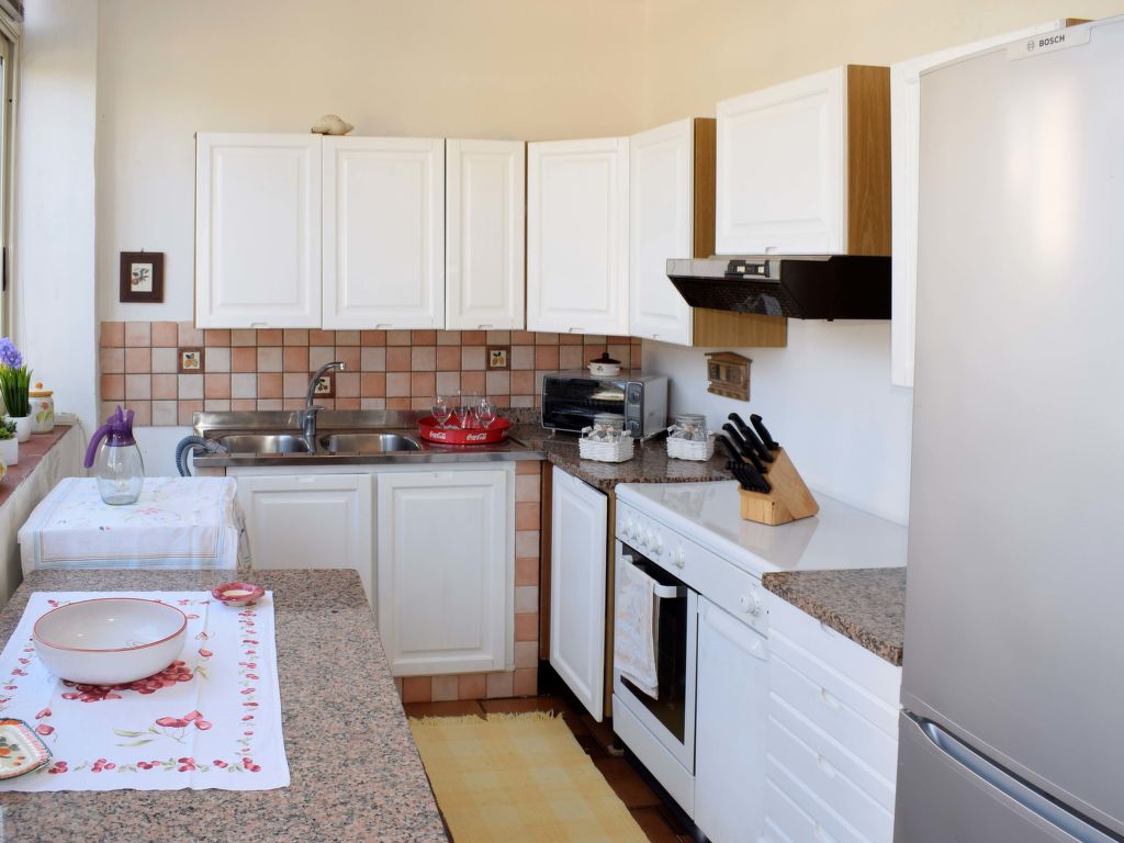"Daniela", 3-Zimmer-Wohnung 90 m2, im Erdgeschoss, Südlage. Einfach und zweckmässig eingerichtet: Wohn-/Esszimmer mit TV (Flachbildschirm). Ausgang zum Gartensitzplatz. 1 Doppelzimmer mit Klimaanlage. 1 Zimmer mit 2 Betten. Kleine Küche (4 Kochplatten, Toaster, Wasserkocher, Tiefkühler). Ausgang zum Garten. Dusche/Bidet/WC. Gartensitzplatz 20 m2, überdacht. Terrassenmöbel. Zur Verfügung: Bügeleisen, Fliegengitter, Babybett bis 2 Jahre. Internet (Wireless LAN, gratis). Parkplatz (1 Auto). Maximal 1 Haustier/Hund erlaubt.